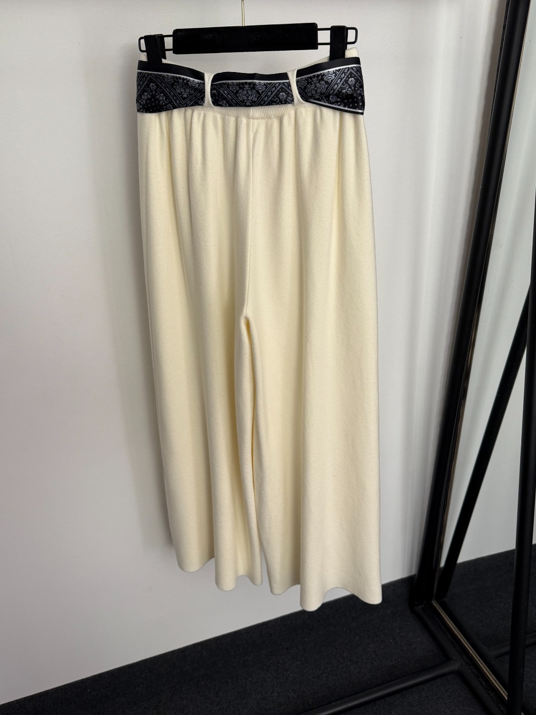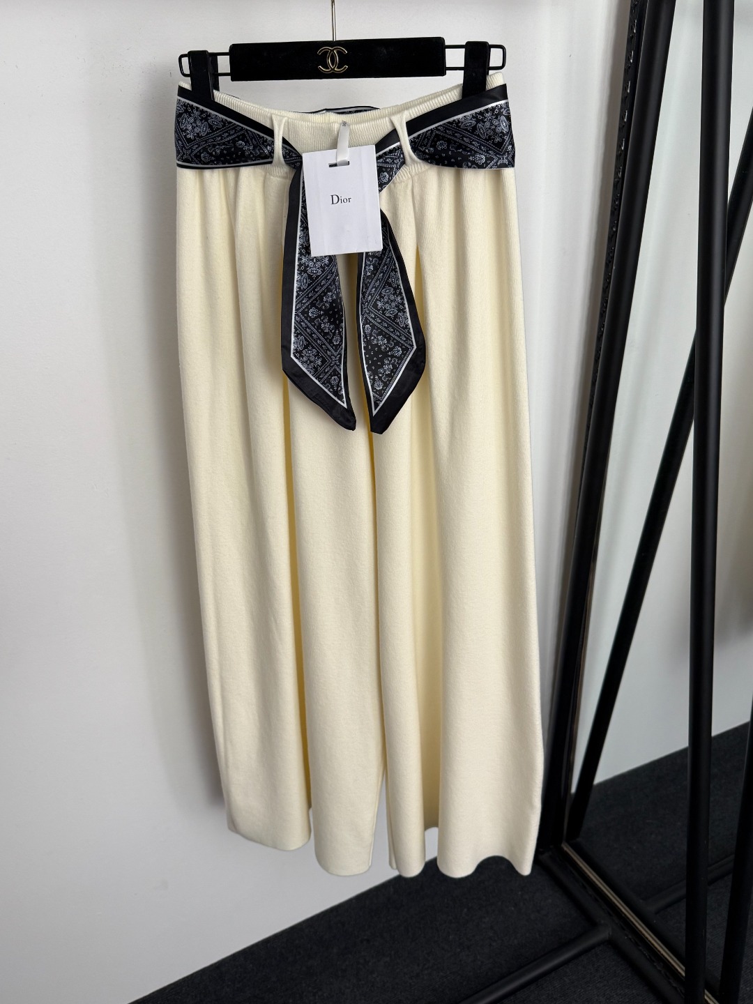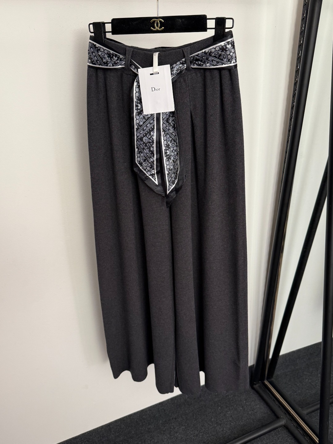 Details: New high-waisted knitted wide-leg pants with a vintage belt, in apricot, dark gray & black, one-size-fits-all. High-end customization, fine workmanship