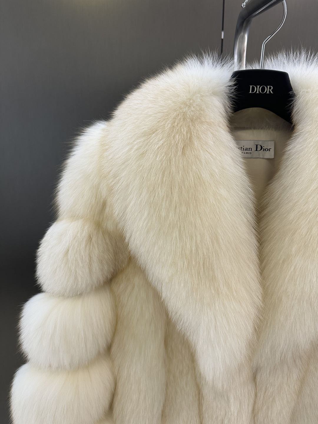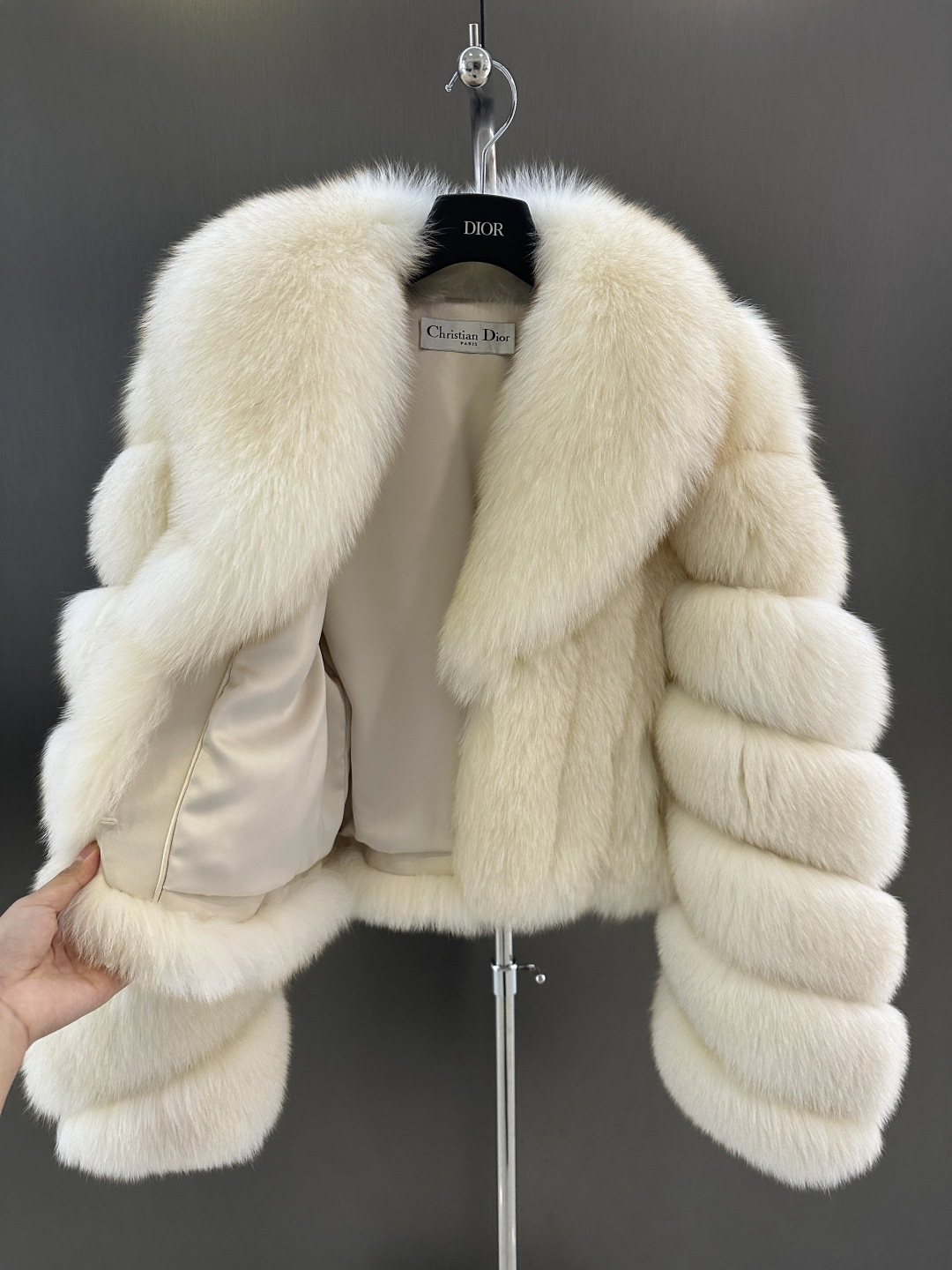 Details: Autumn - winter fox fur coat made of imported Finnish white fox, with custom silk lining, available in sizes S - L. High - end customization, fine workmanship