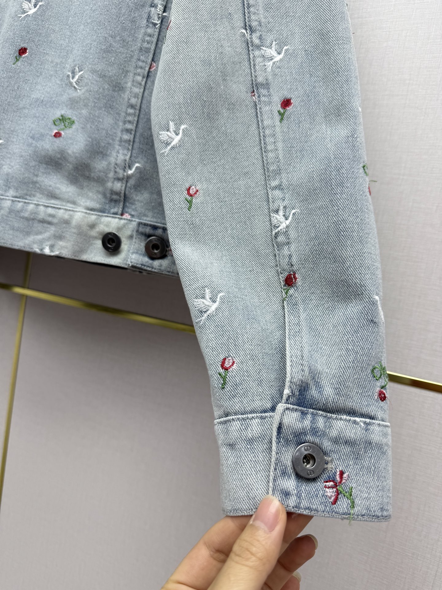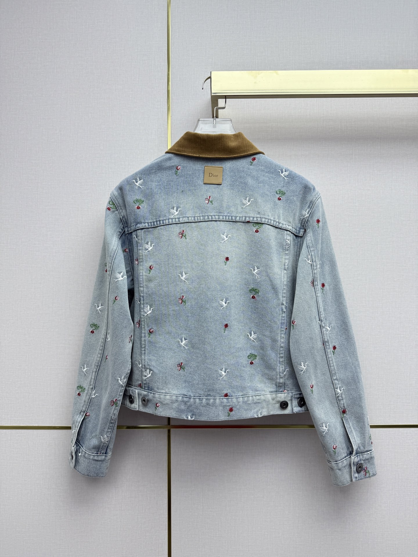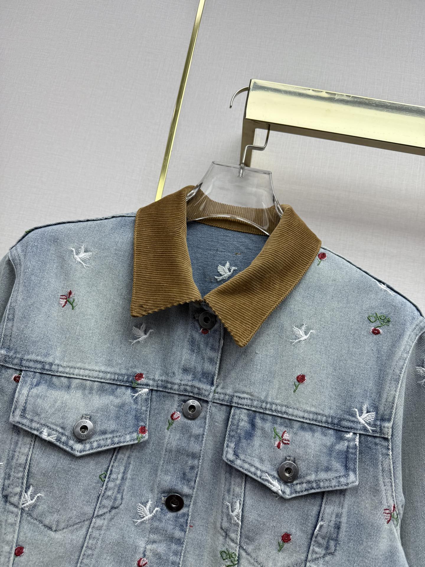 Details: Early spring velvet collar denim jacket with seagull embroidery, three sizes, high-end custom, fine workmanship