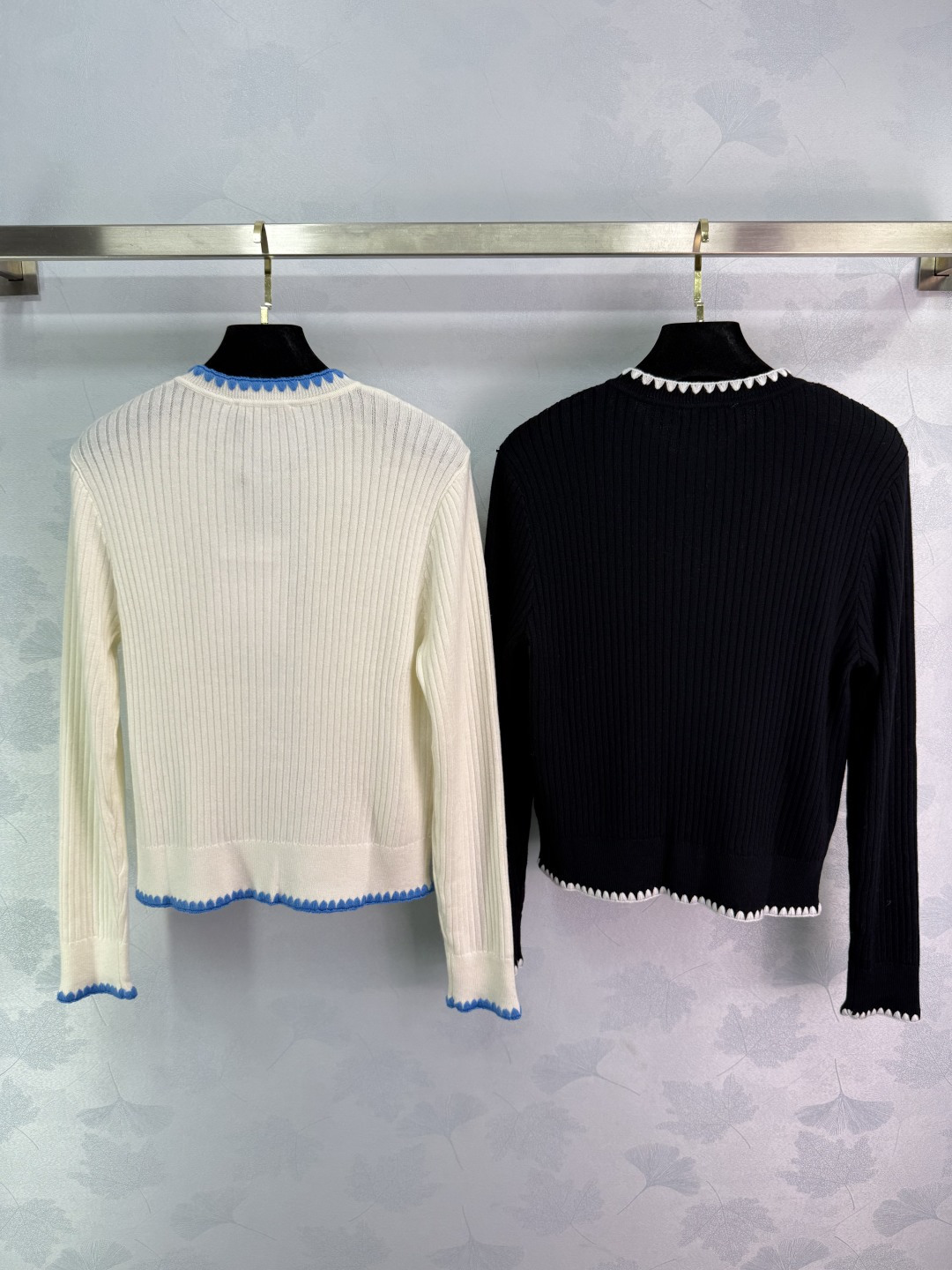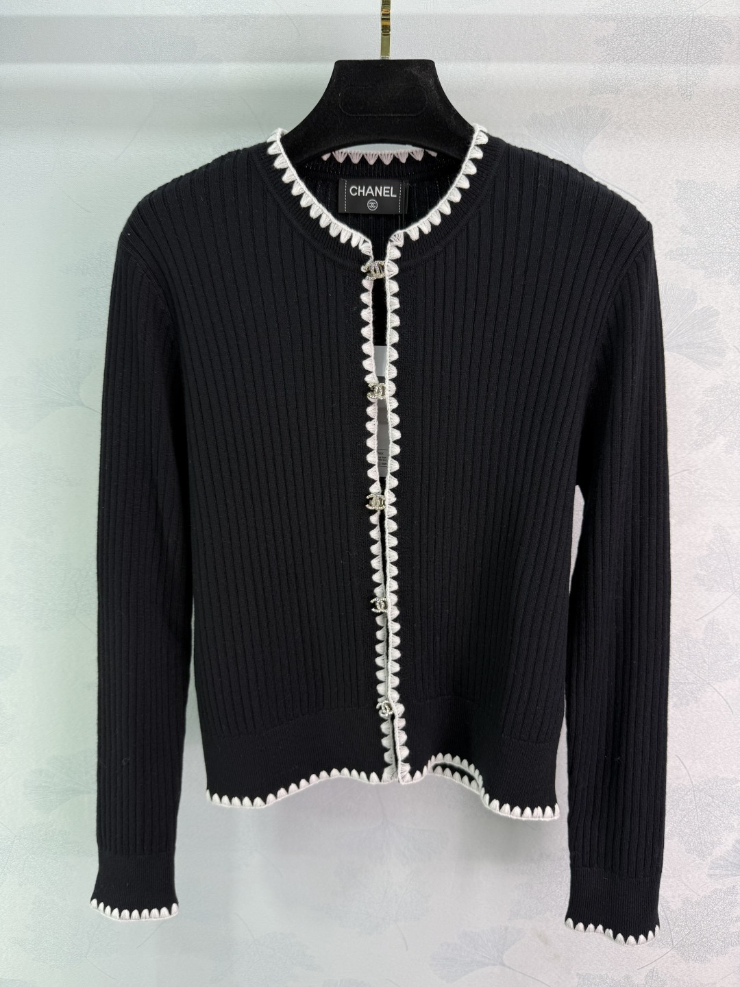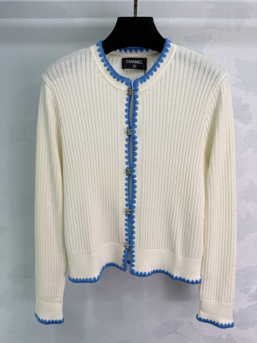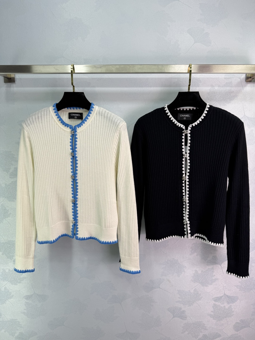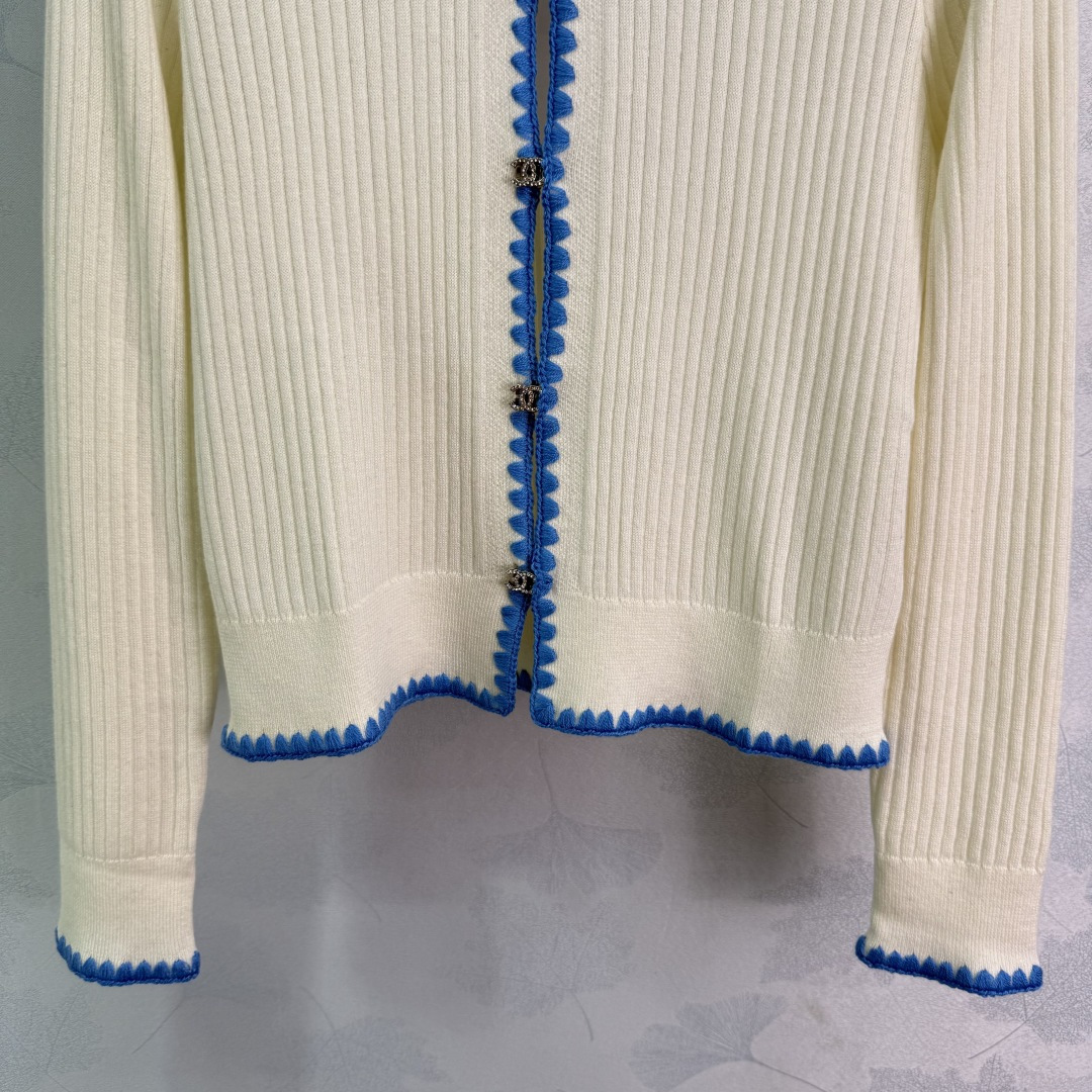 Details: Contrasting knit cardigan with double rhinestone buttons. Slim fit, suitable for all seasons, available in two colors.