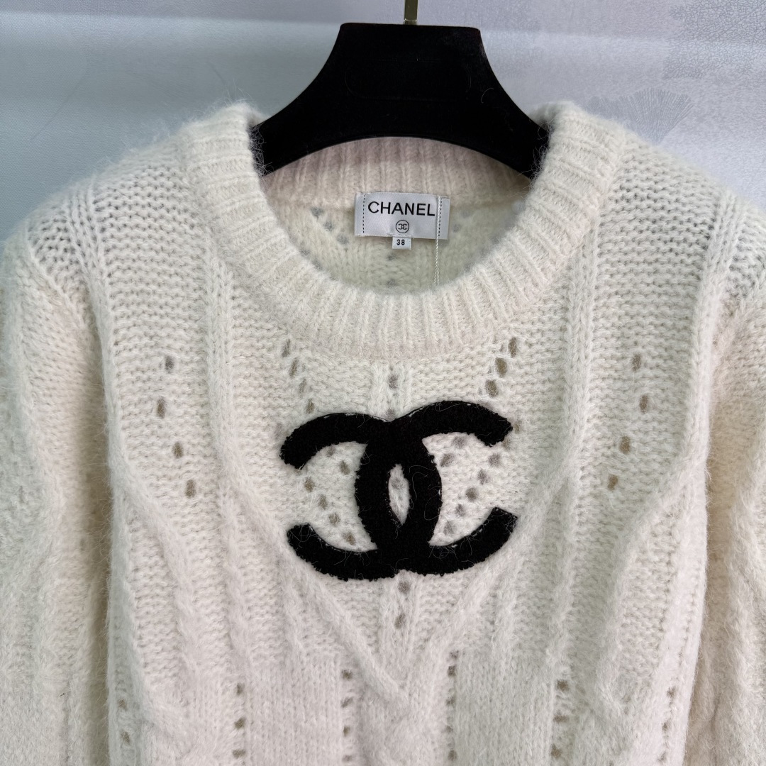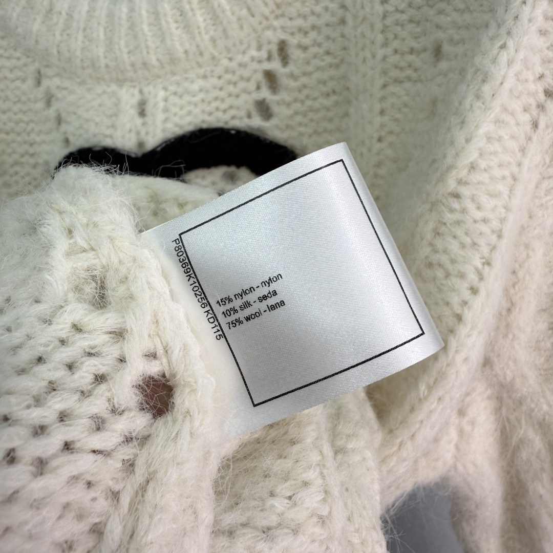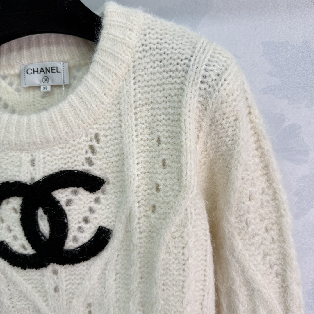 Details: Early autumn round neck lace knit sweater, high-quality texture, distinctive double C logo, elegant and chic.