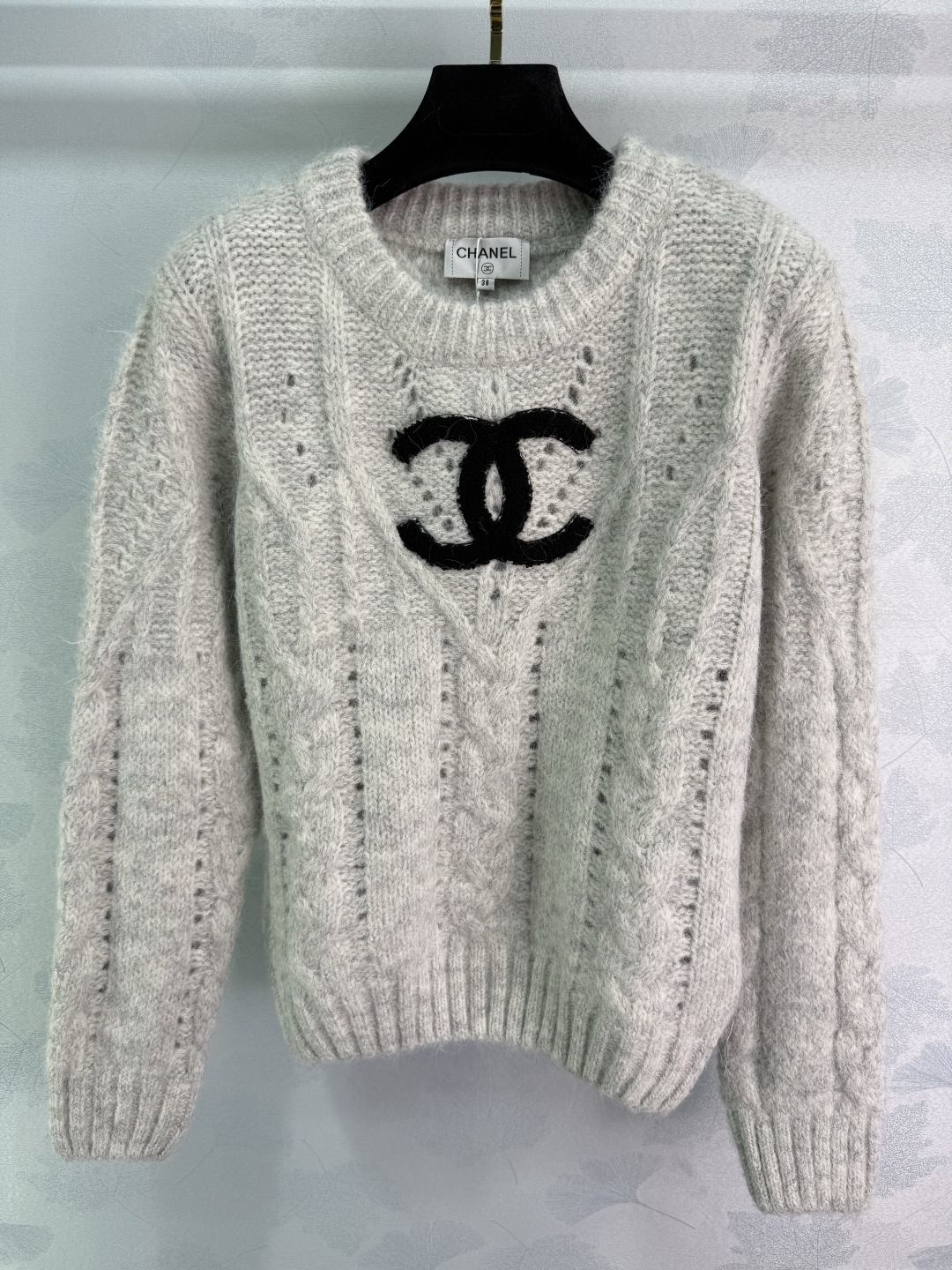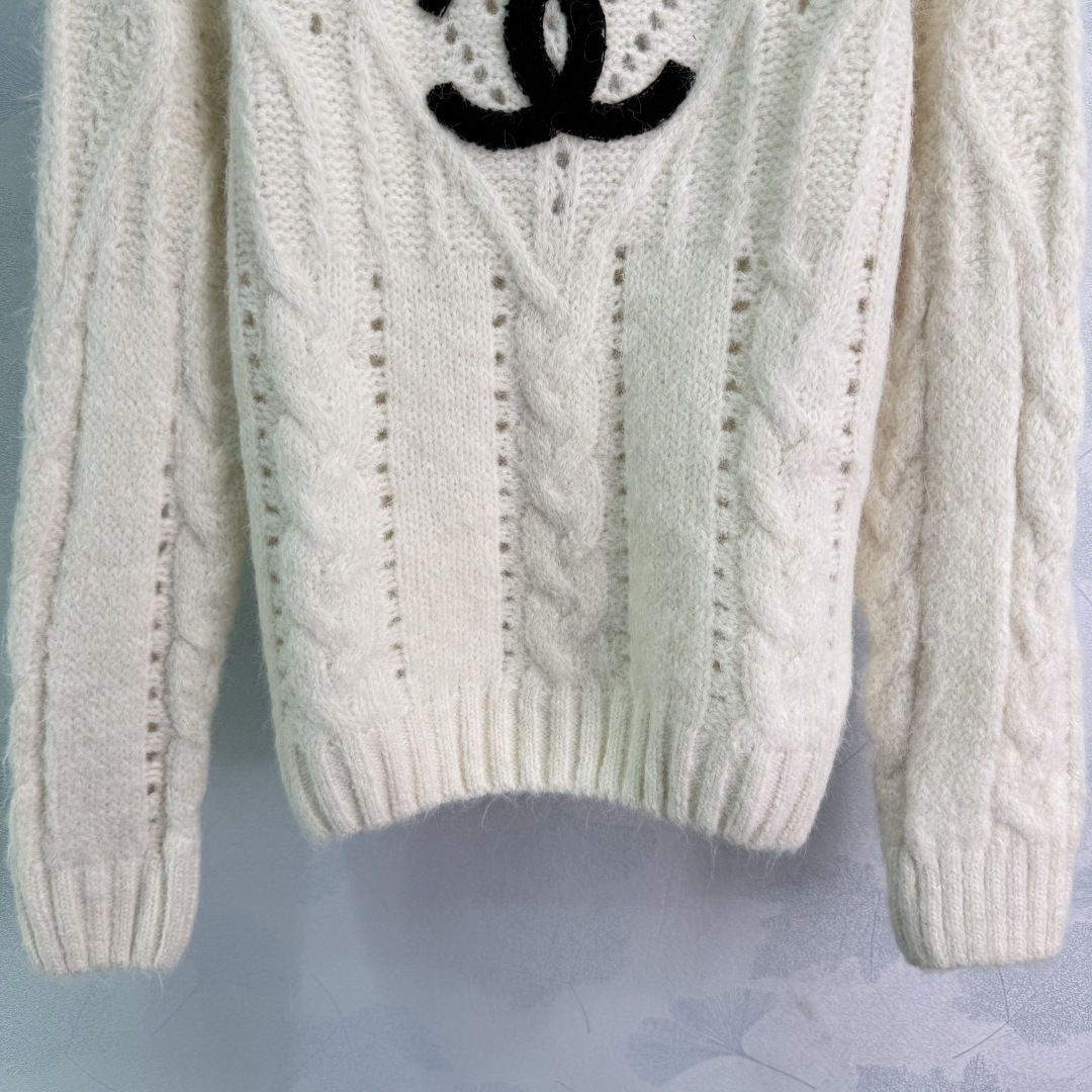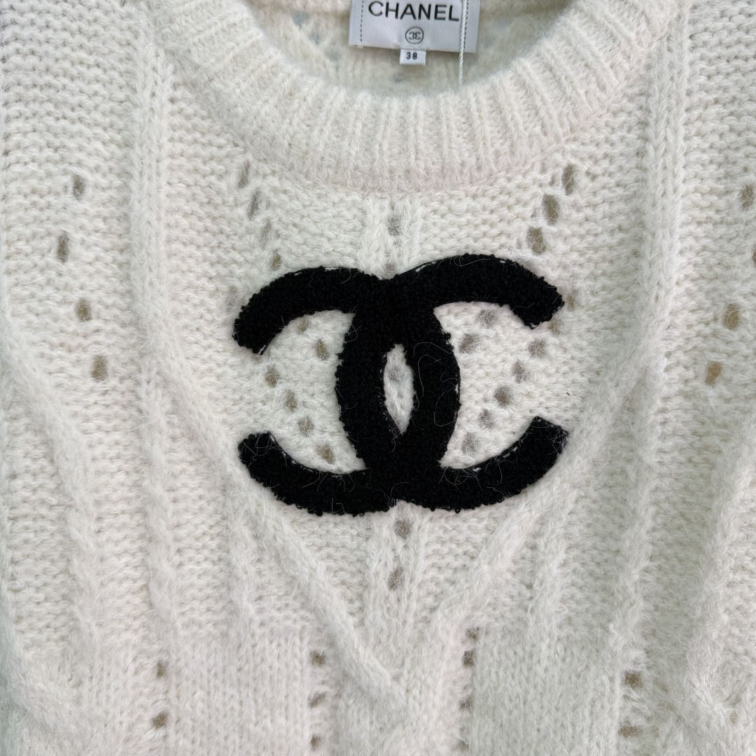 Details: Early autumn round neck lace knit sweater, high-quality texture, distinctive double C logo, elegant and chic.