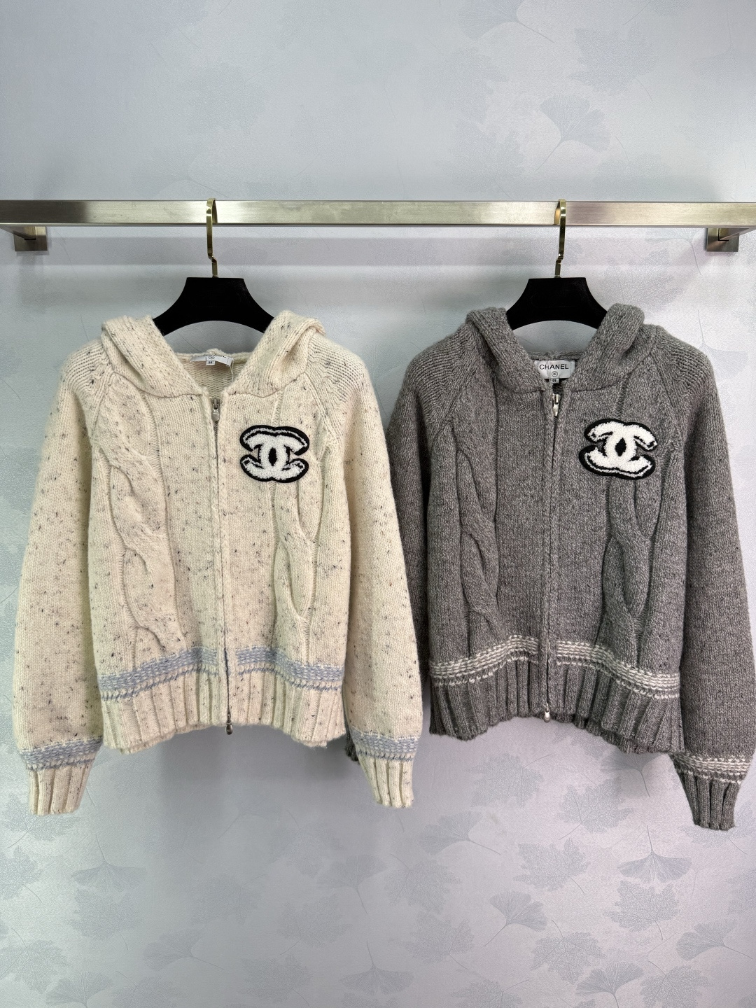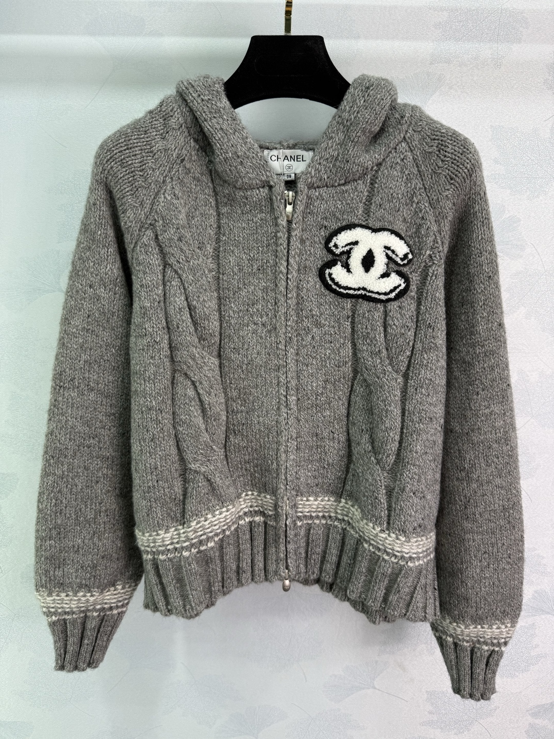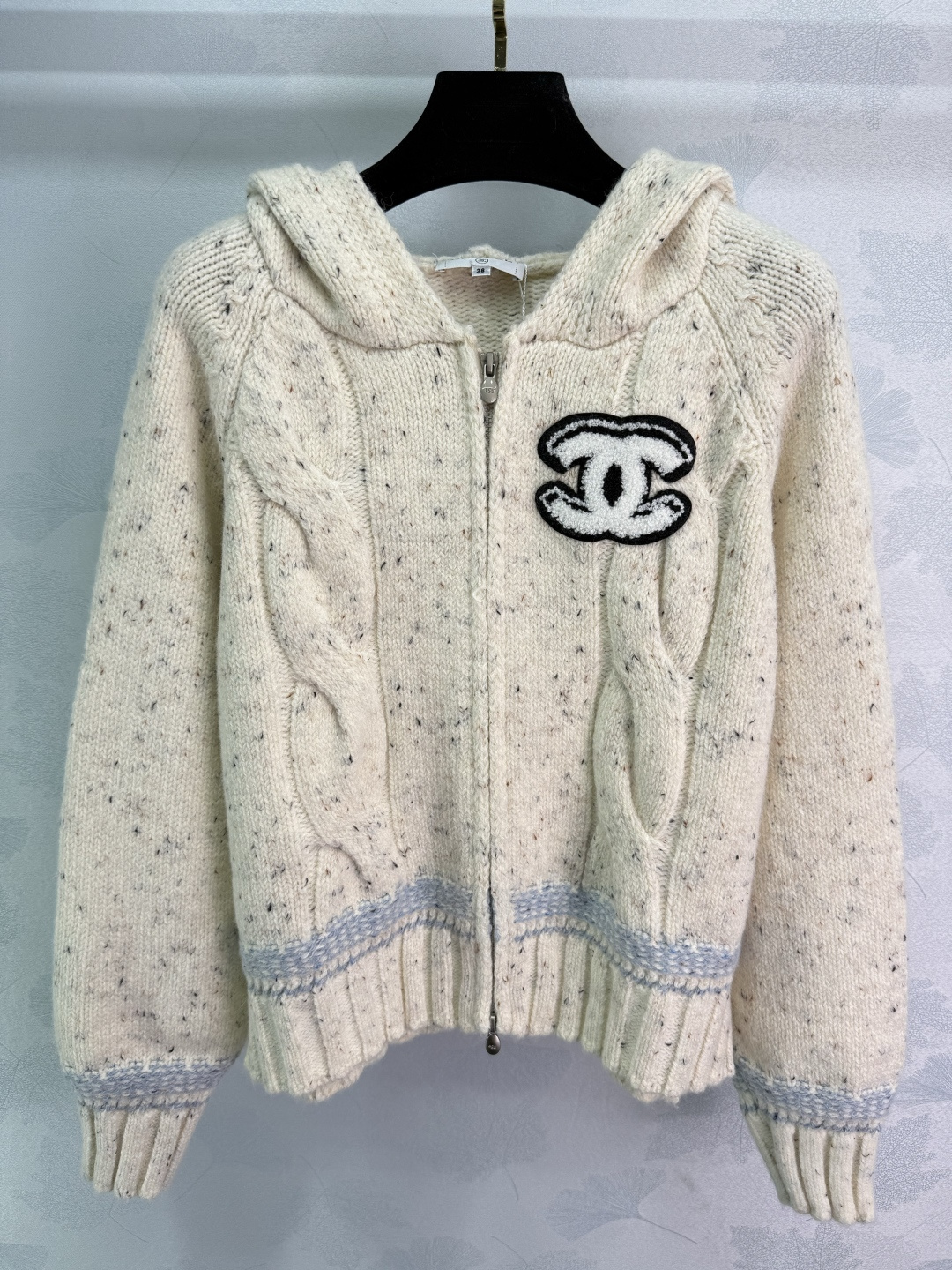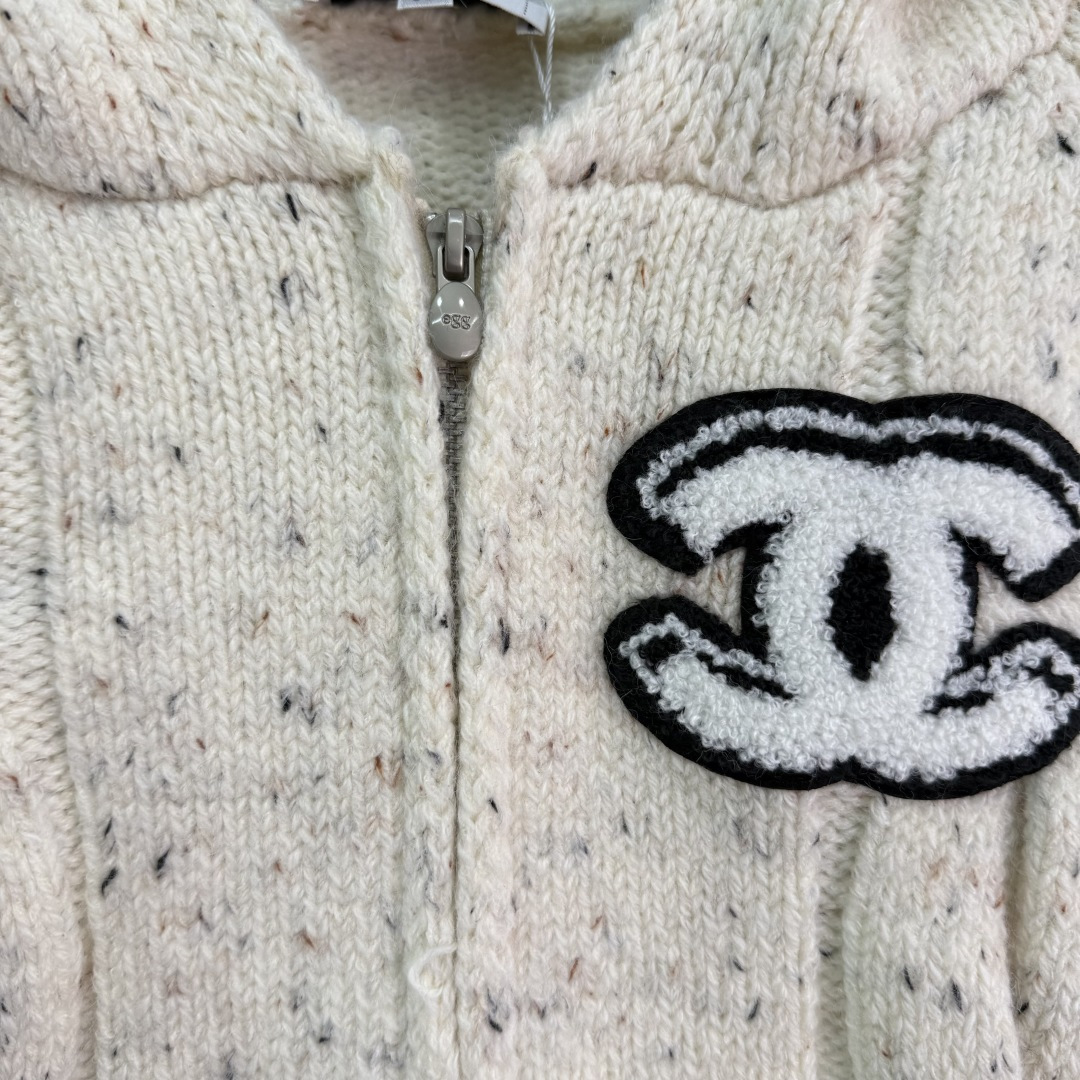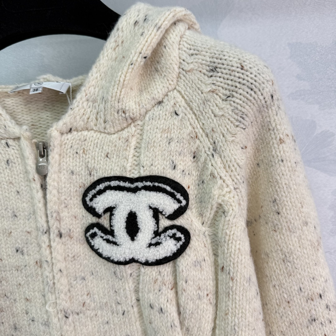 Details: Early autumn hooded knit cardigan, wool blend, zipper design, double C logo, simple and luxurious