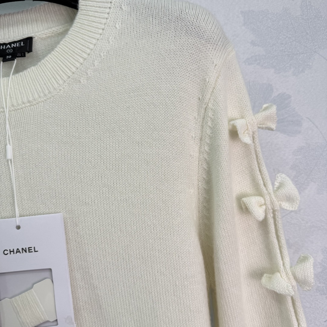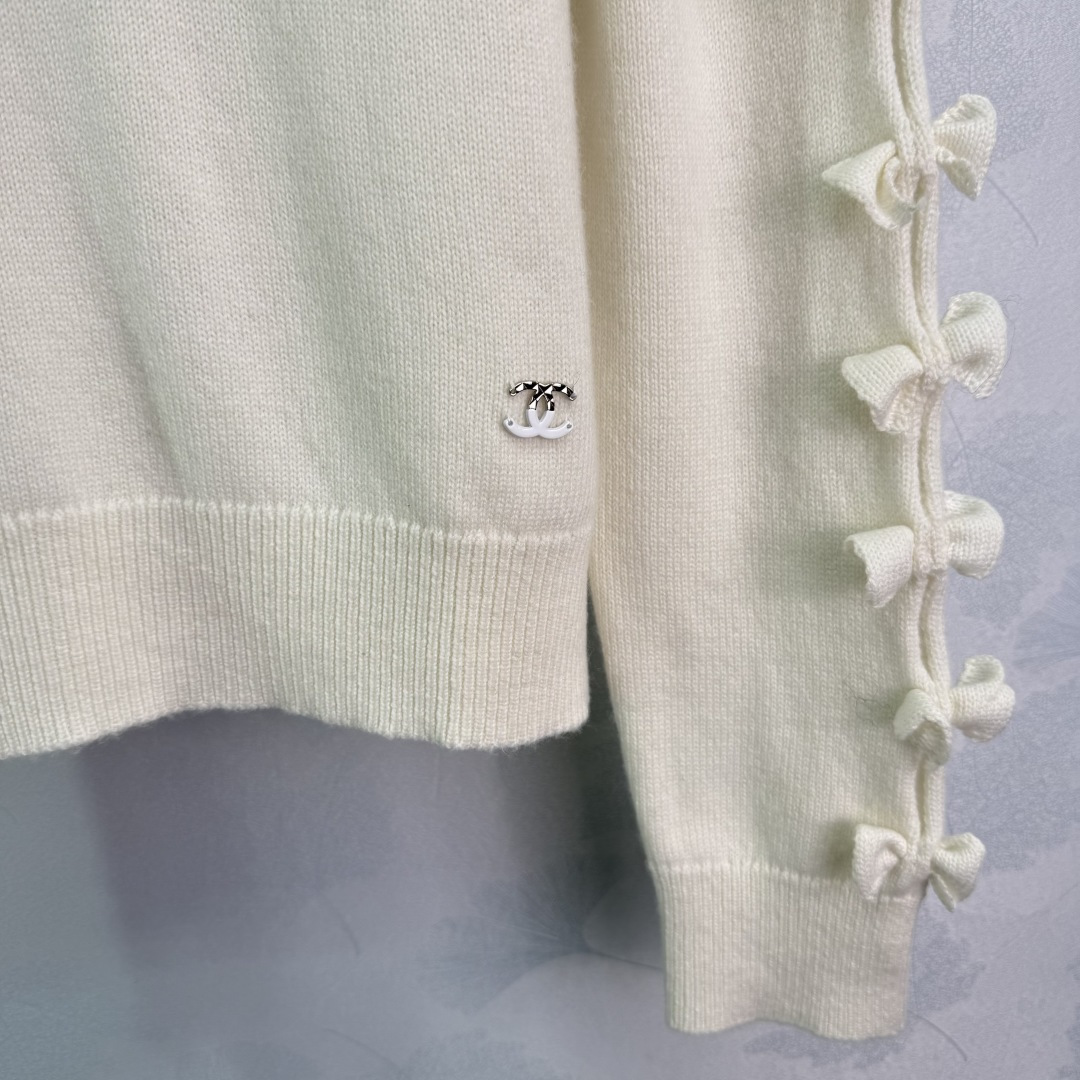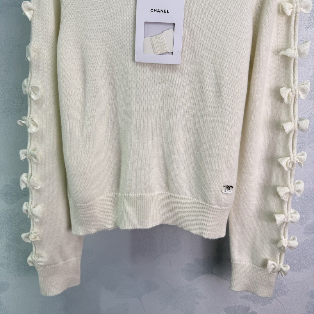 Details: Autumn plain bow knitted sweater, cashmere yarn, with unique decorations, cute and elegant