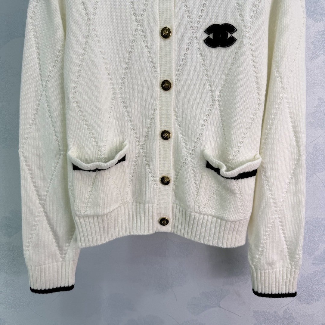 Details: Early spring s new checkered knit cardigan with black collar and cuff design, classic color block for a distinctive look. Soft knit fabric ensures comfort and warmth.