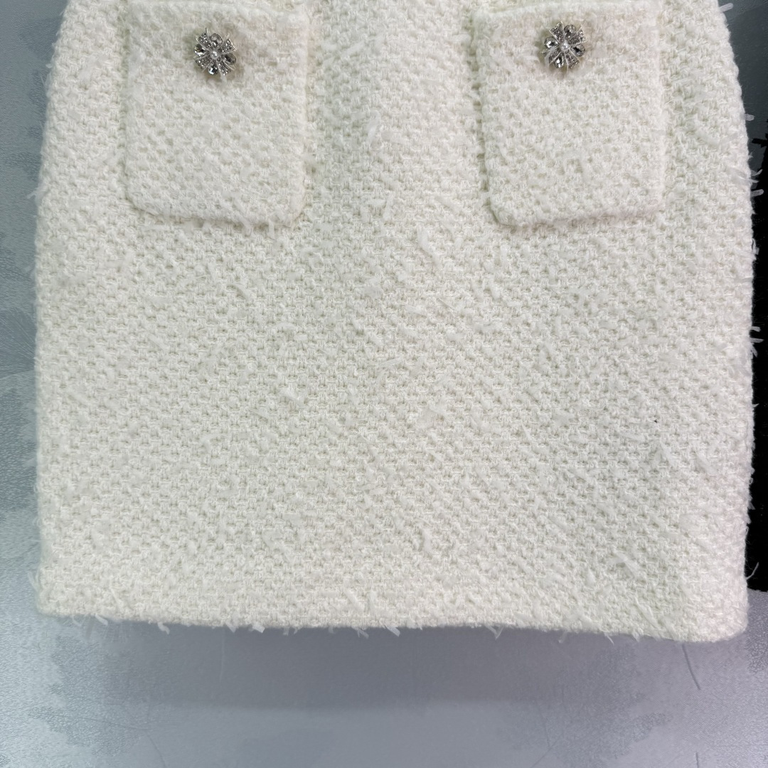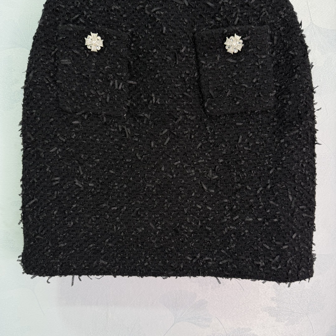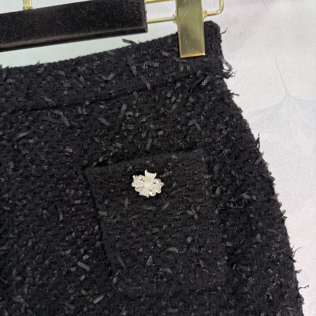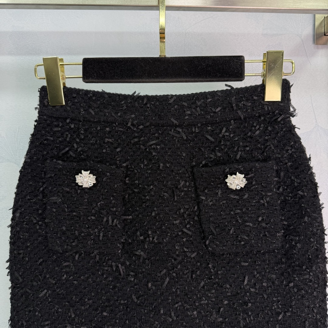 Details: Early autumn tweed skirt with rhinestone pockets in short style, available in 2 colors and 3 sizes