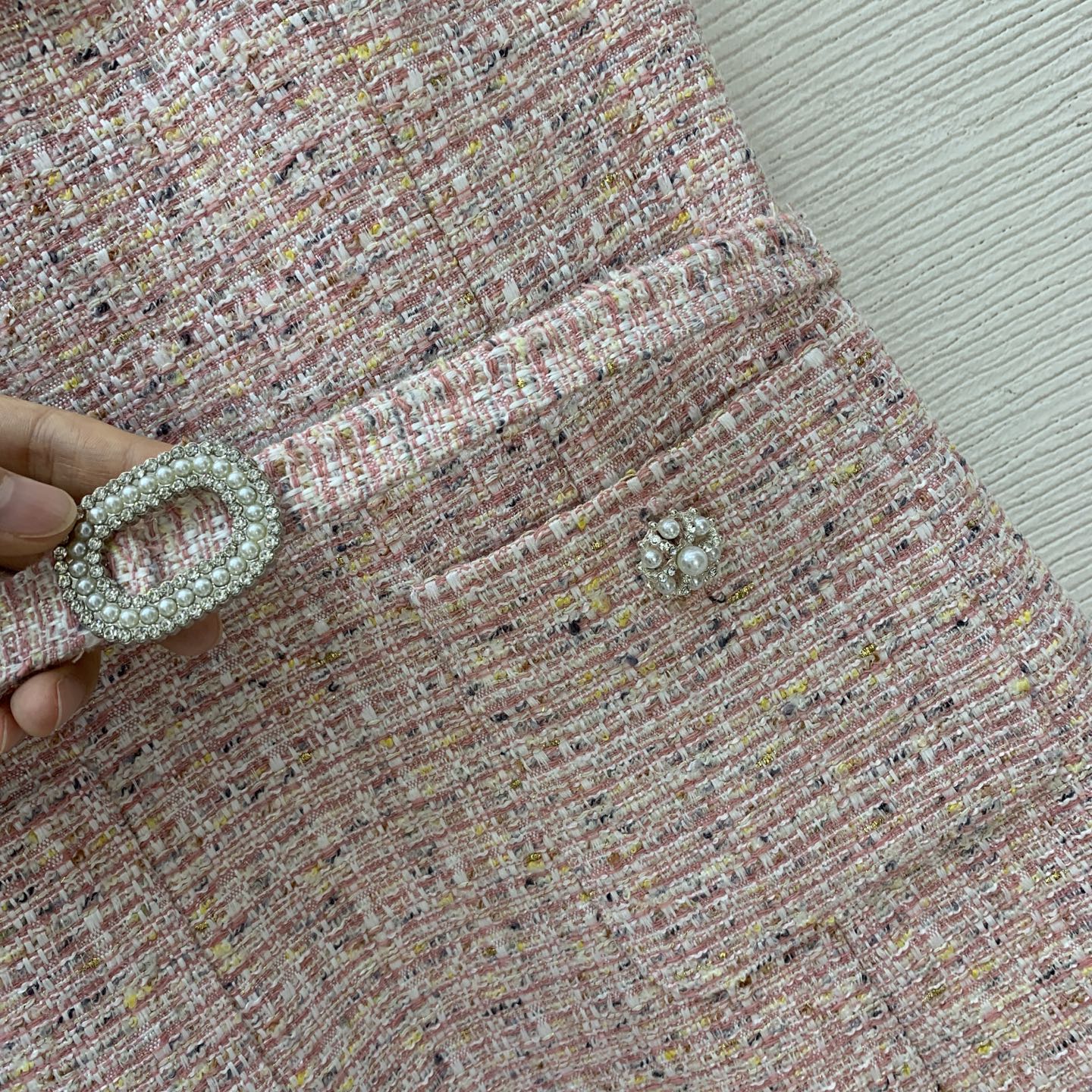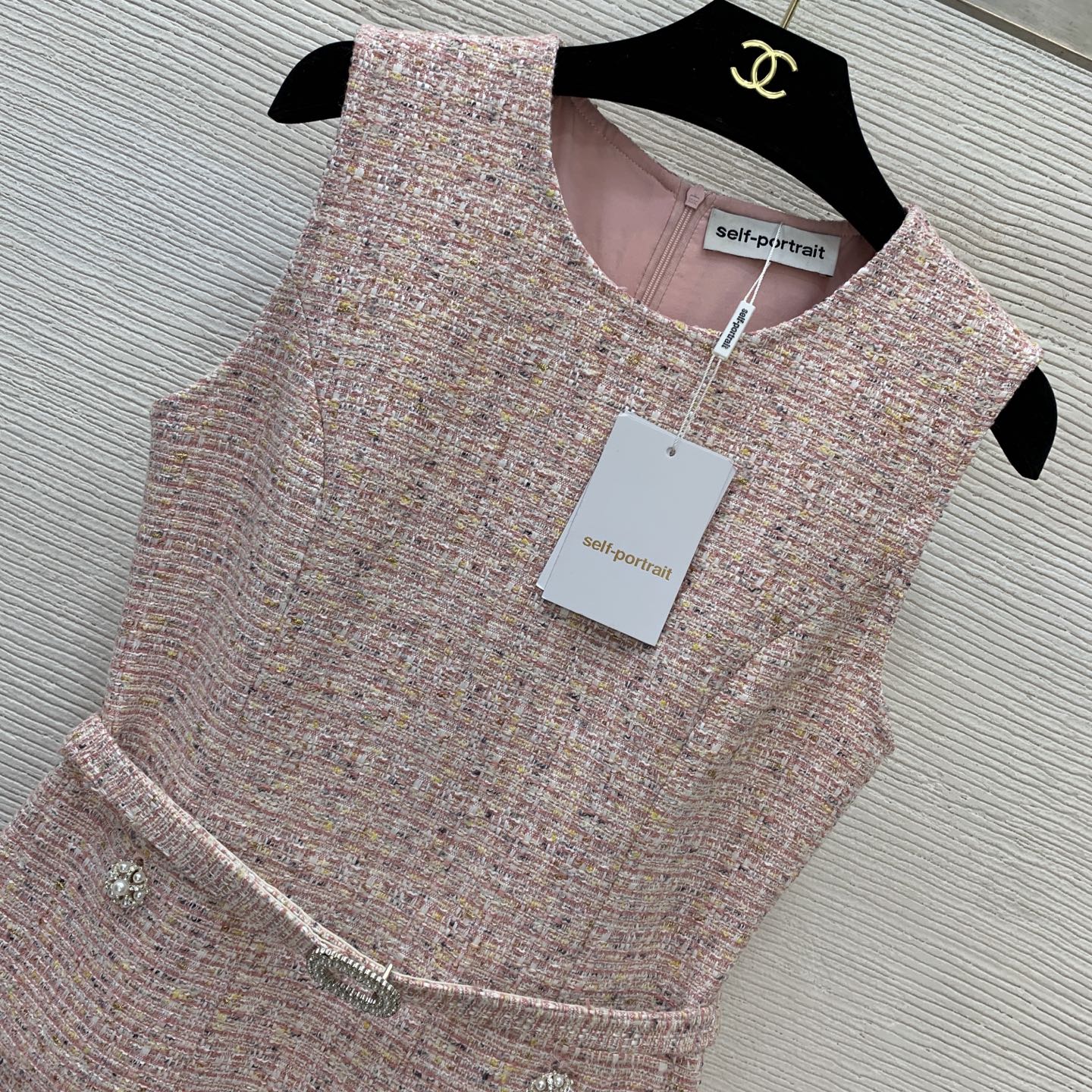 Details: New blue or pink tweed vest dress, slim - fit.
