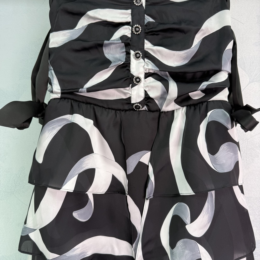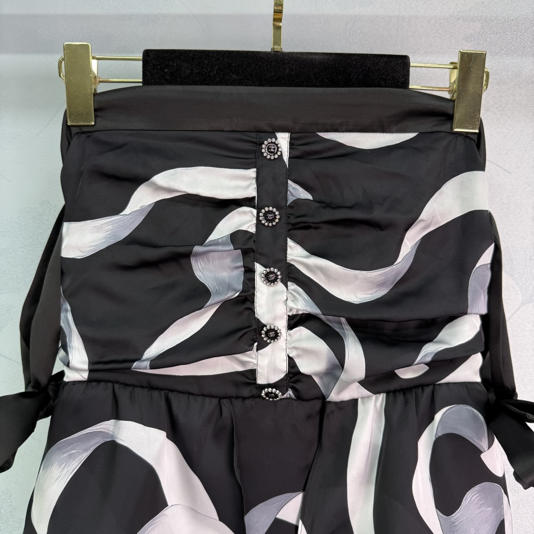 Details: Early Autumn Silk Strapless Dress with Ribbon Print, Charming and Sweet, High-end Customization, Fine Workmanship