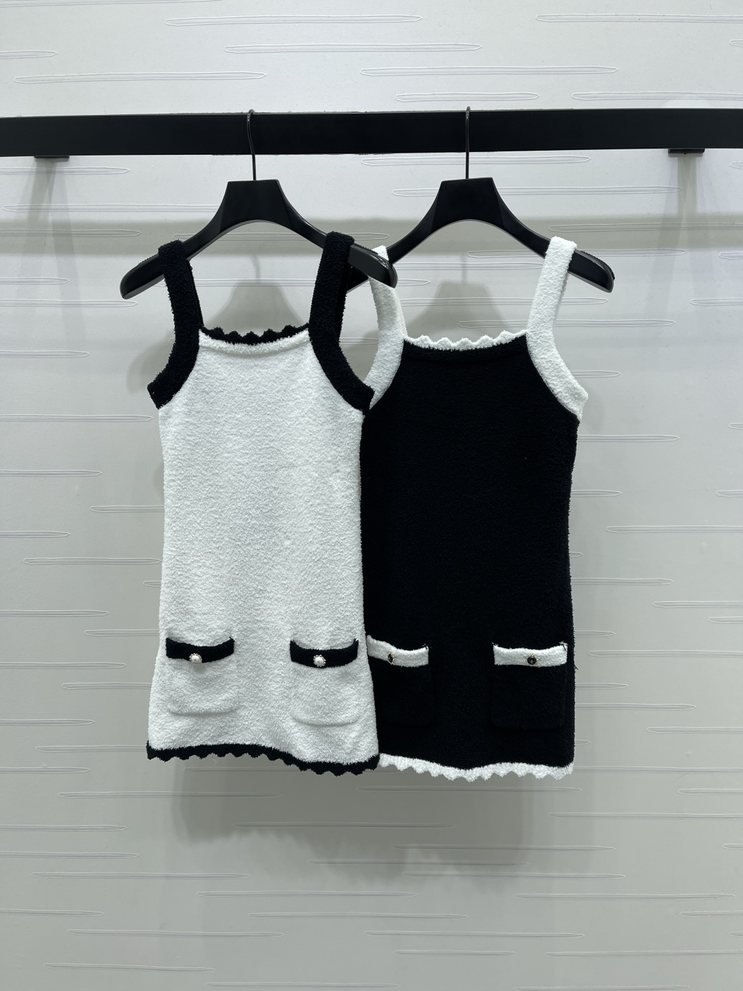 Details: Autumn-Winter Knit Color-blocked Sling Dress, Premium Silk-wool Yarn, 2 Colors, 3 Sizes, High-end Customized, Fine Craftsmanship