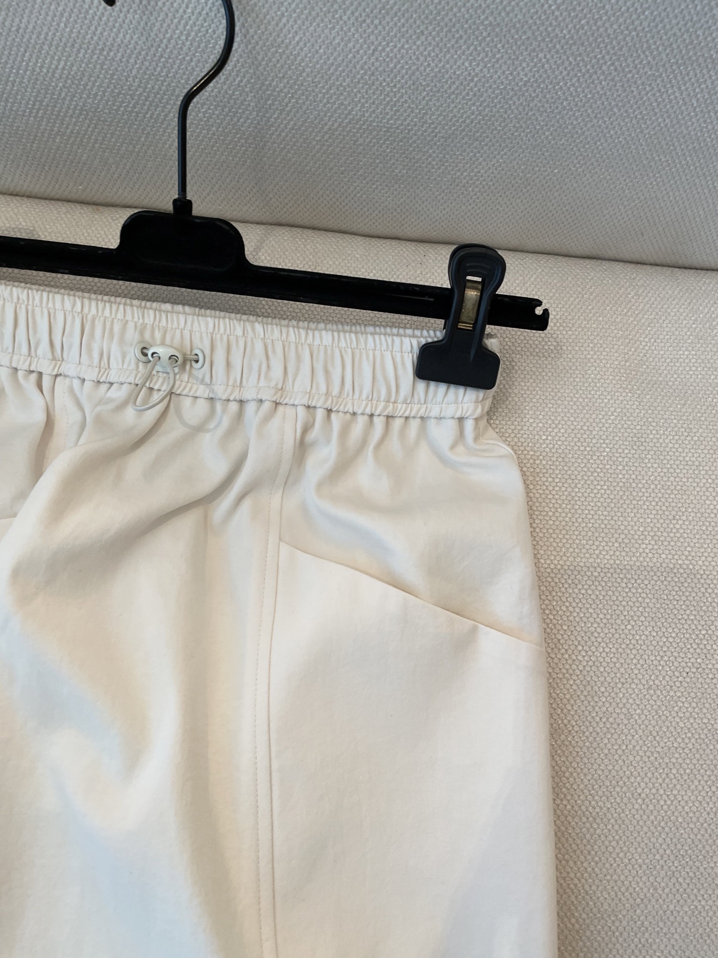 Details: New work-style skirt with elastic waist and pocket design, two colors, sizes S, M, L available.