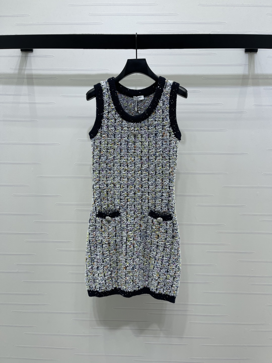 Details: Spring Sequin Yarn Knitted Vest Dress in Three Colors, Available in SML Sizes. Premium Customization, Exquisite Craftsmanship, Authentic Quality Replica