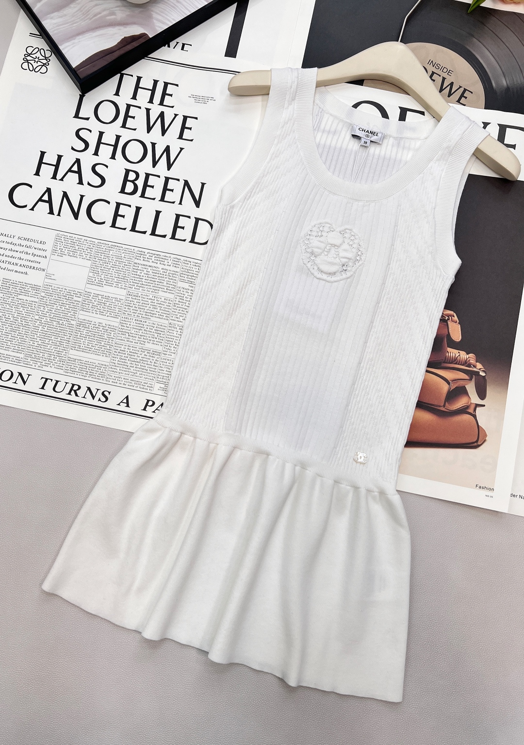 Details: New camellia knitted vest dress, soft and elegant, with double C logo on the waist.