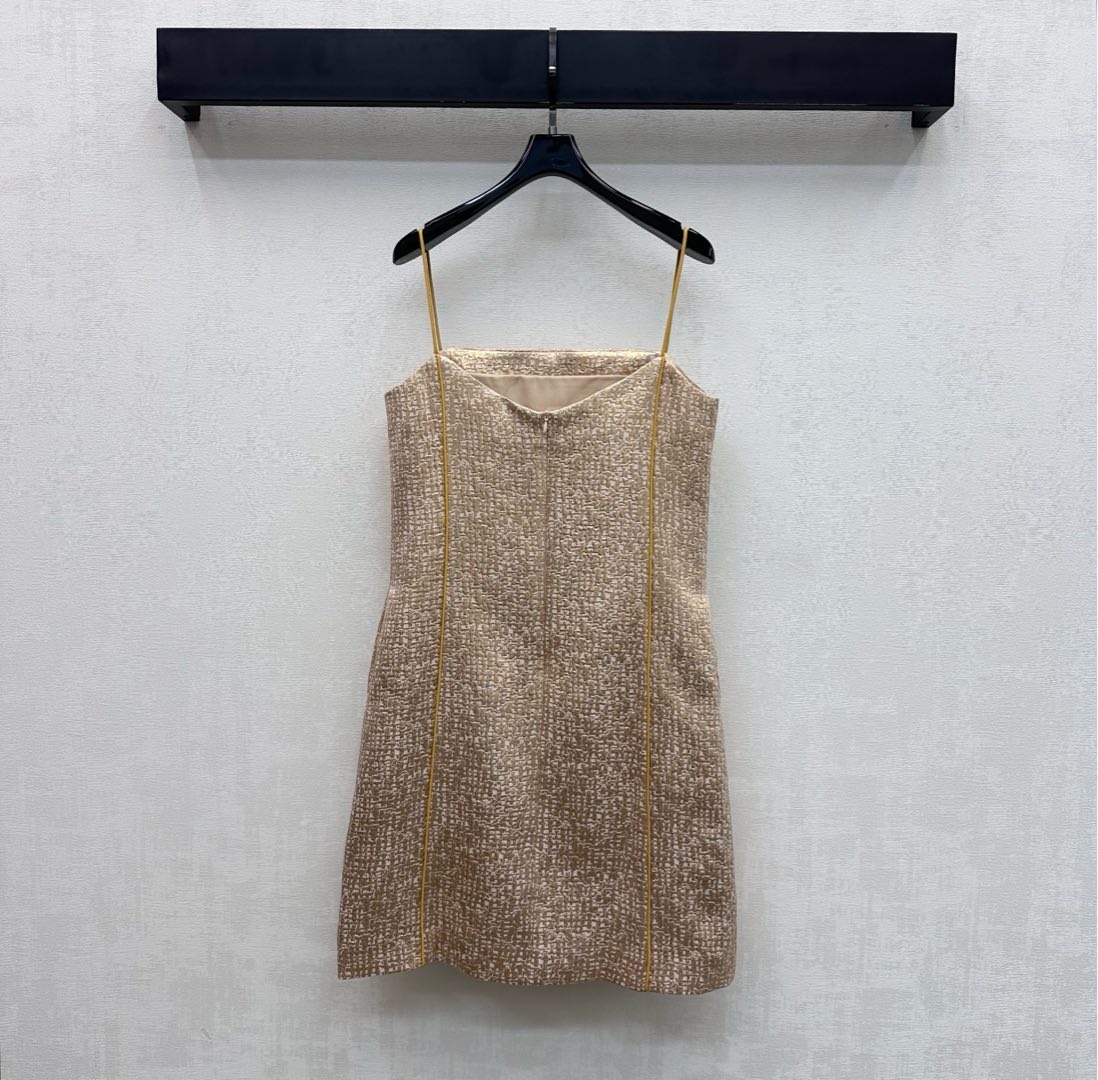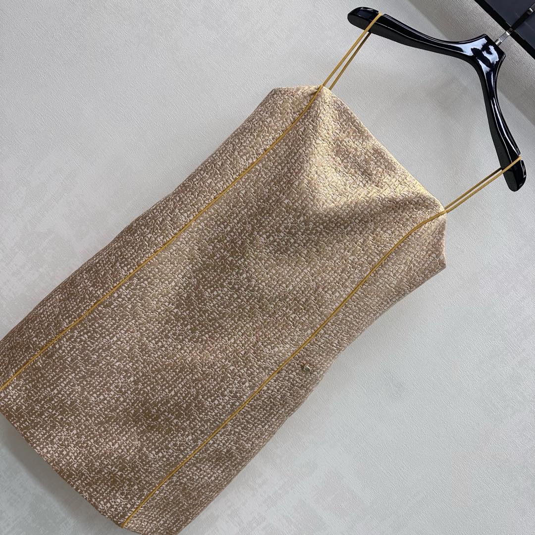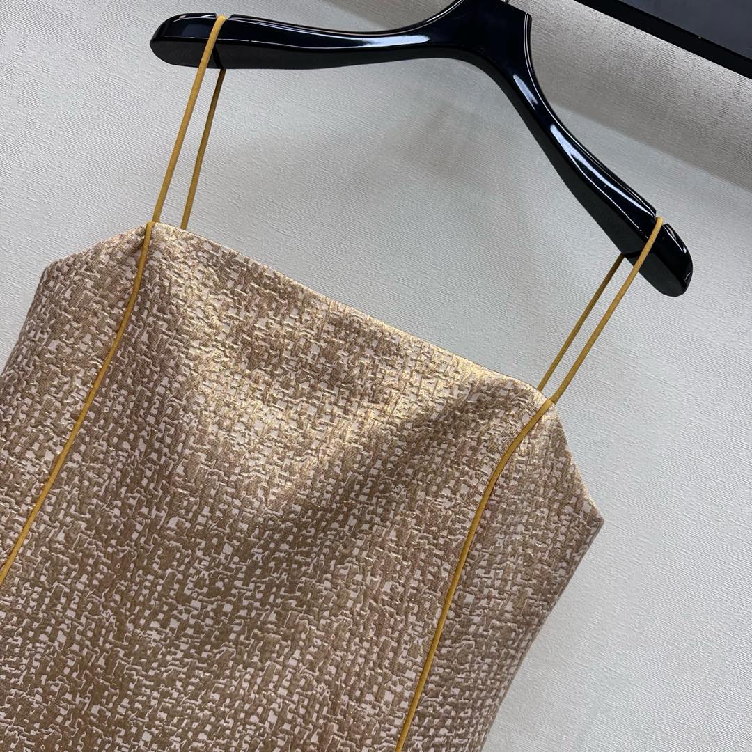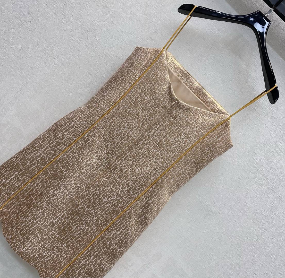 Details: Sleeveless Dress with Gold Folds, Elegant for Any Occasion. fine craftsmanship