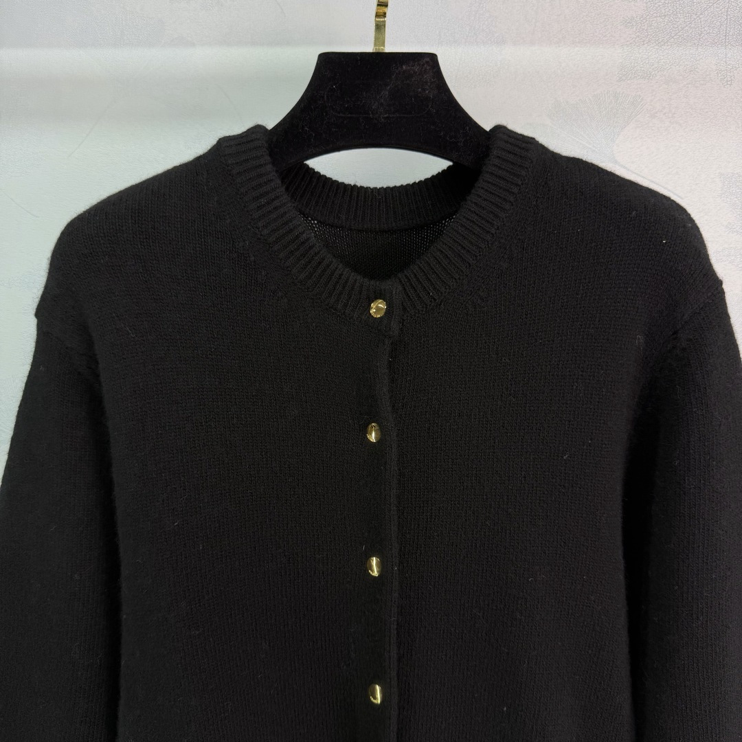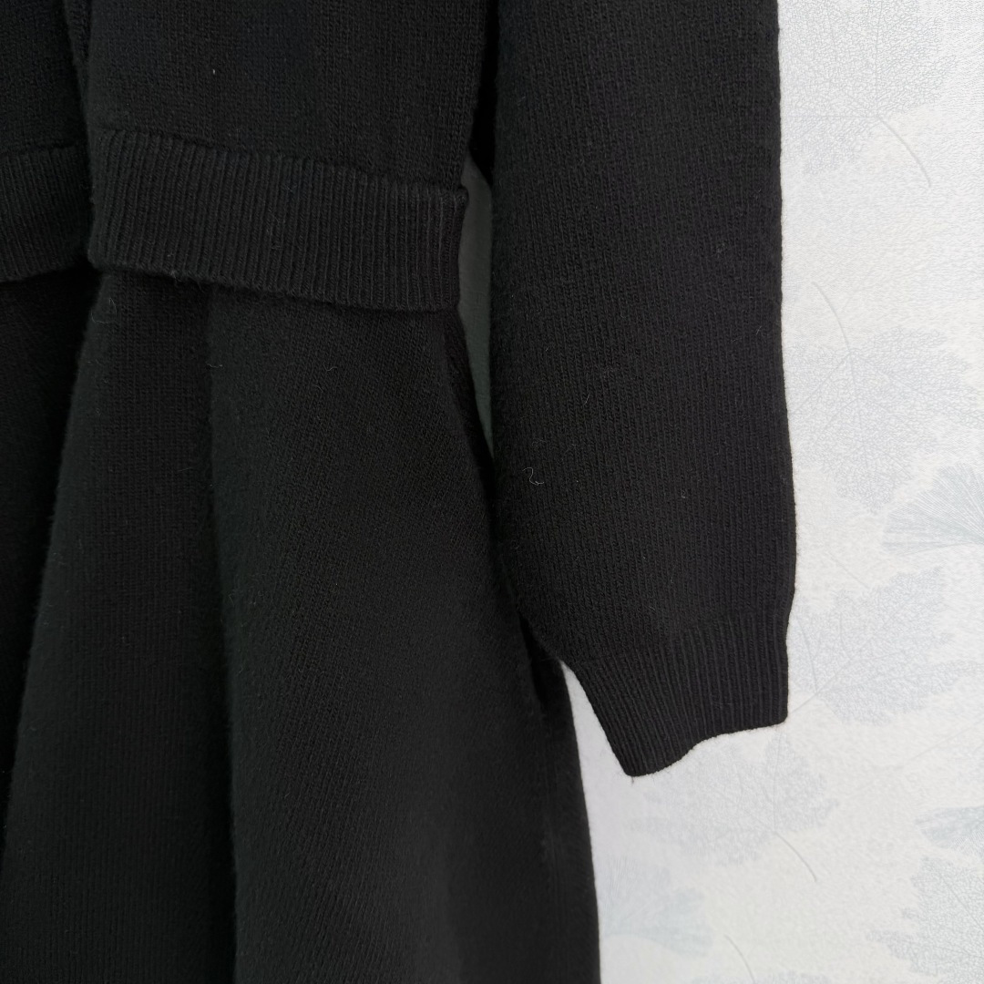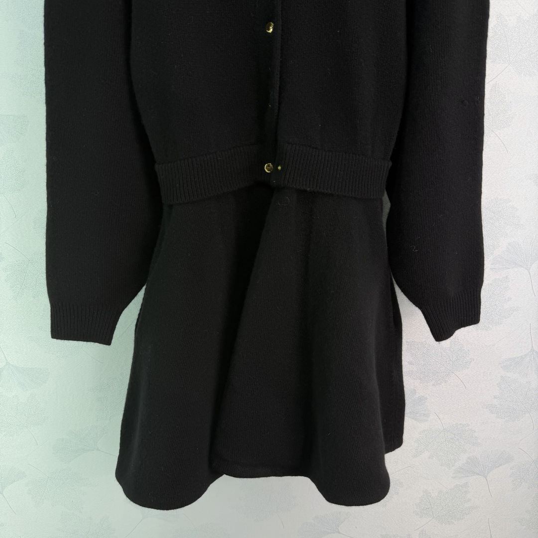 Details: Black wool knitted dress with round neck and metal buttons, suitable for various occasions, high-quality and comfortable.