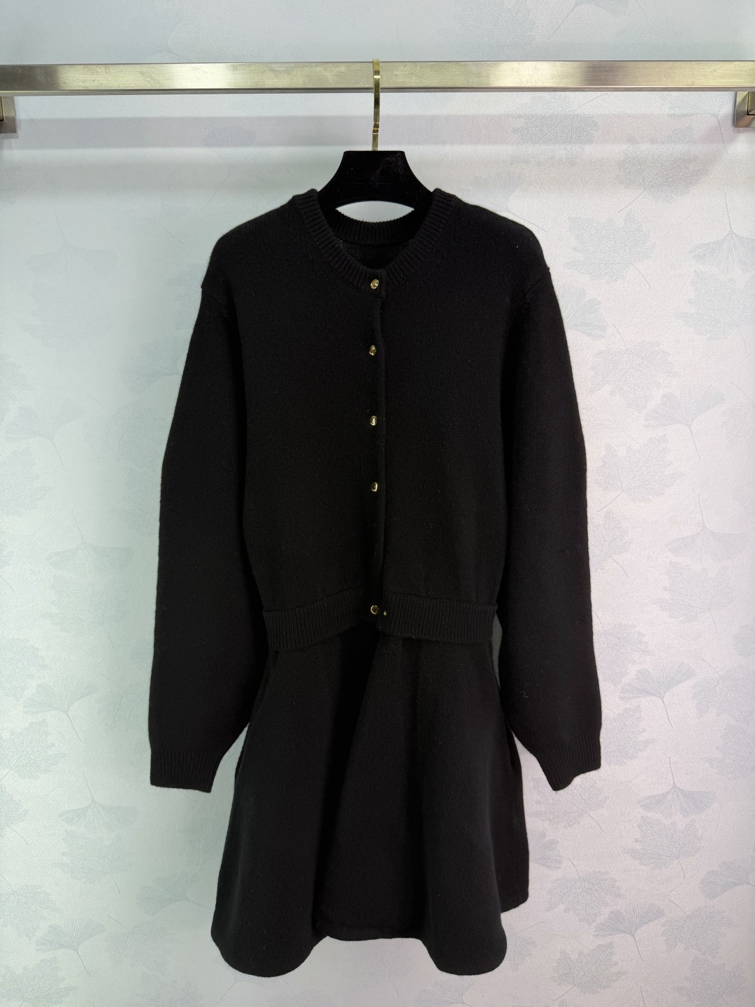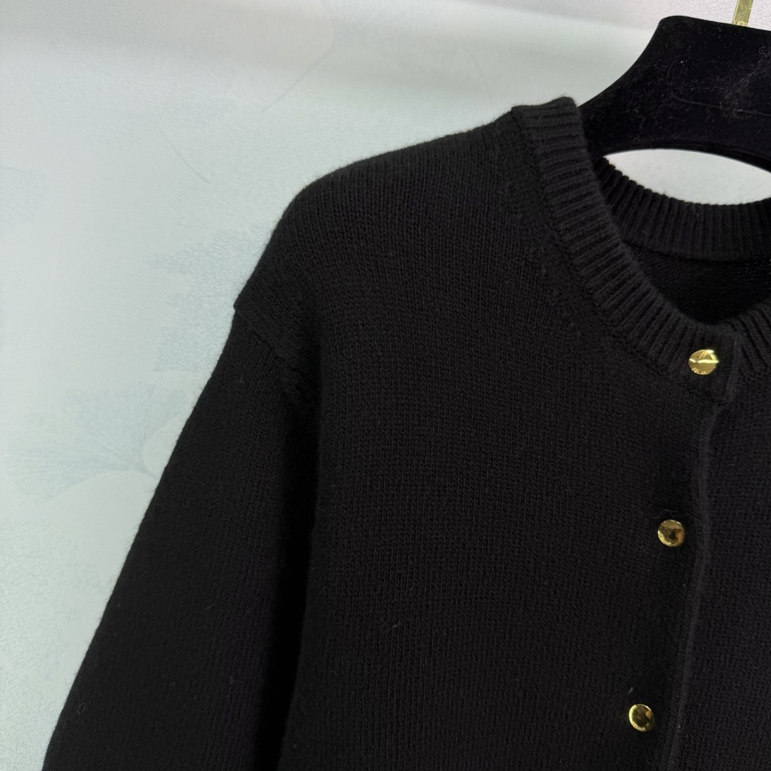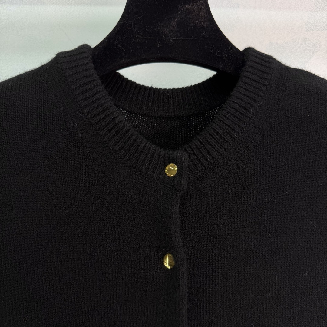 Details: Black wool knitted dress with round neck and metal buttons, suitable for various occasions, high-quality and comfortable.