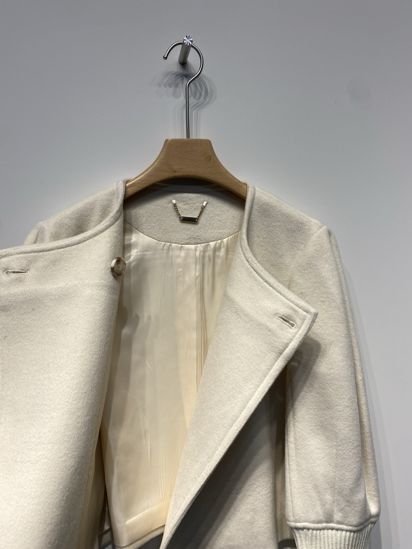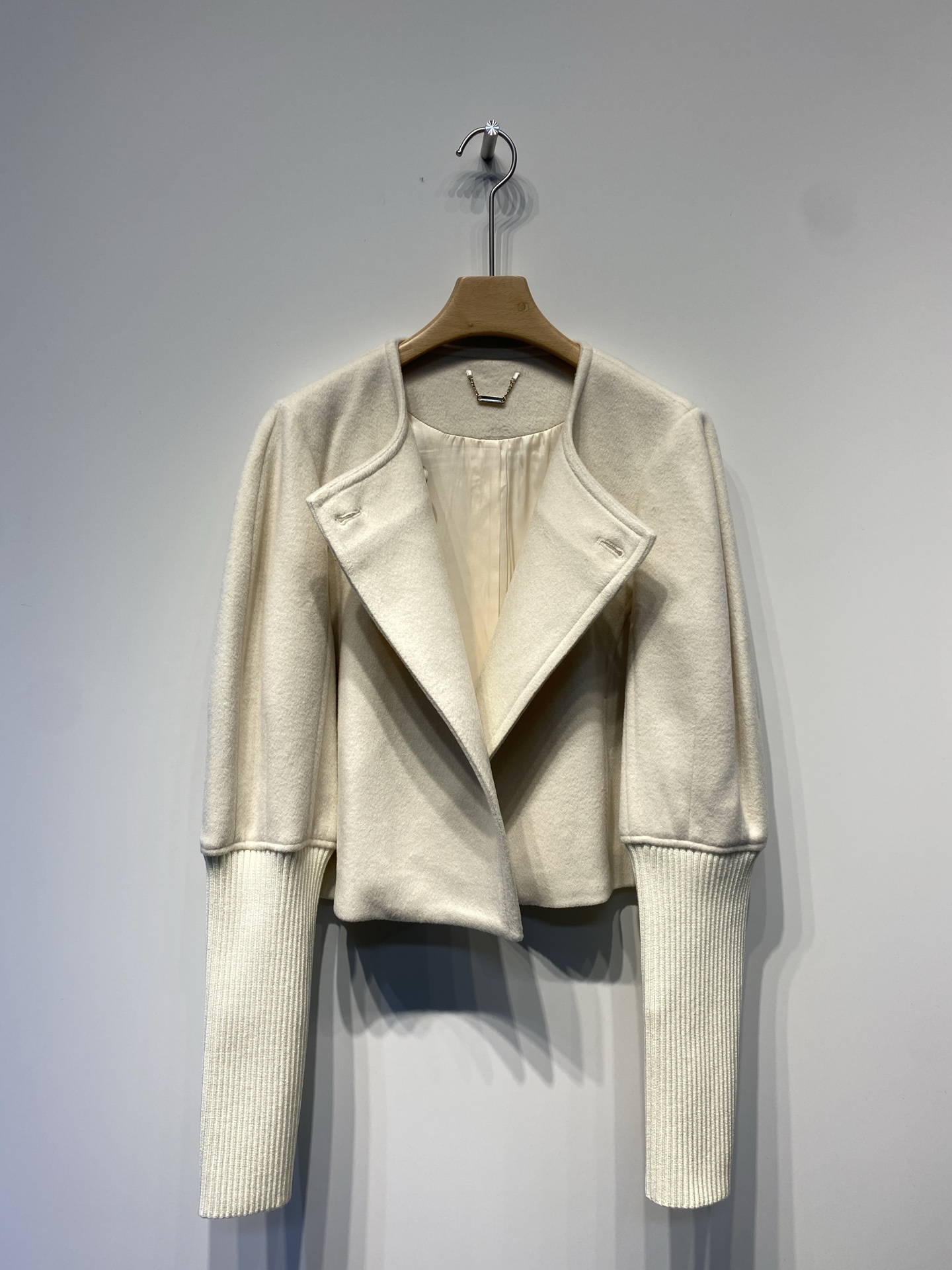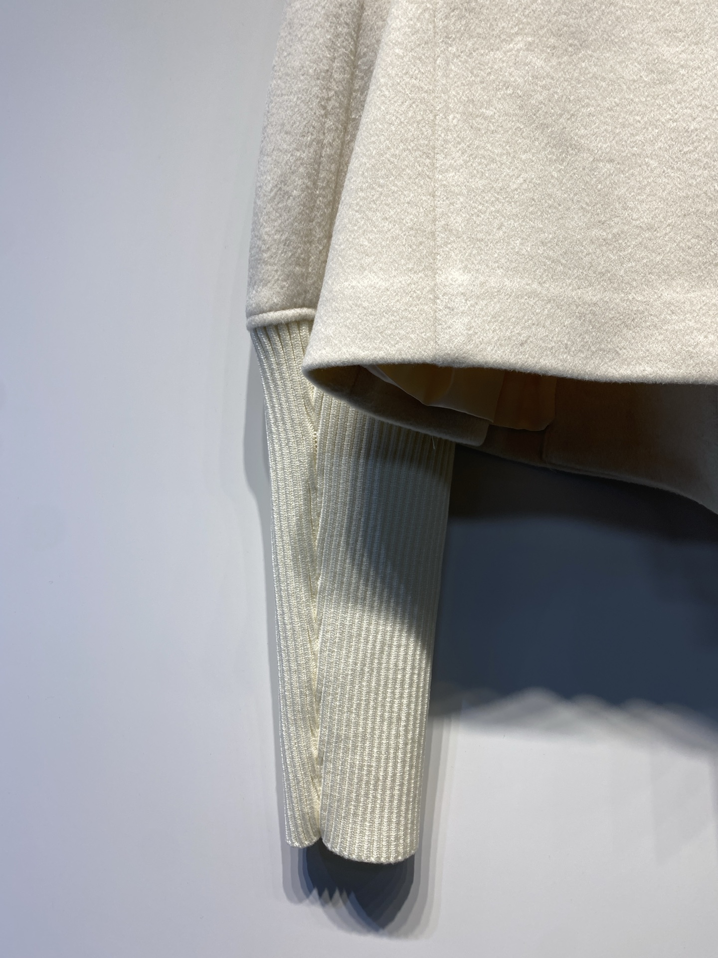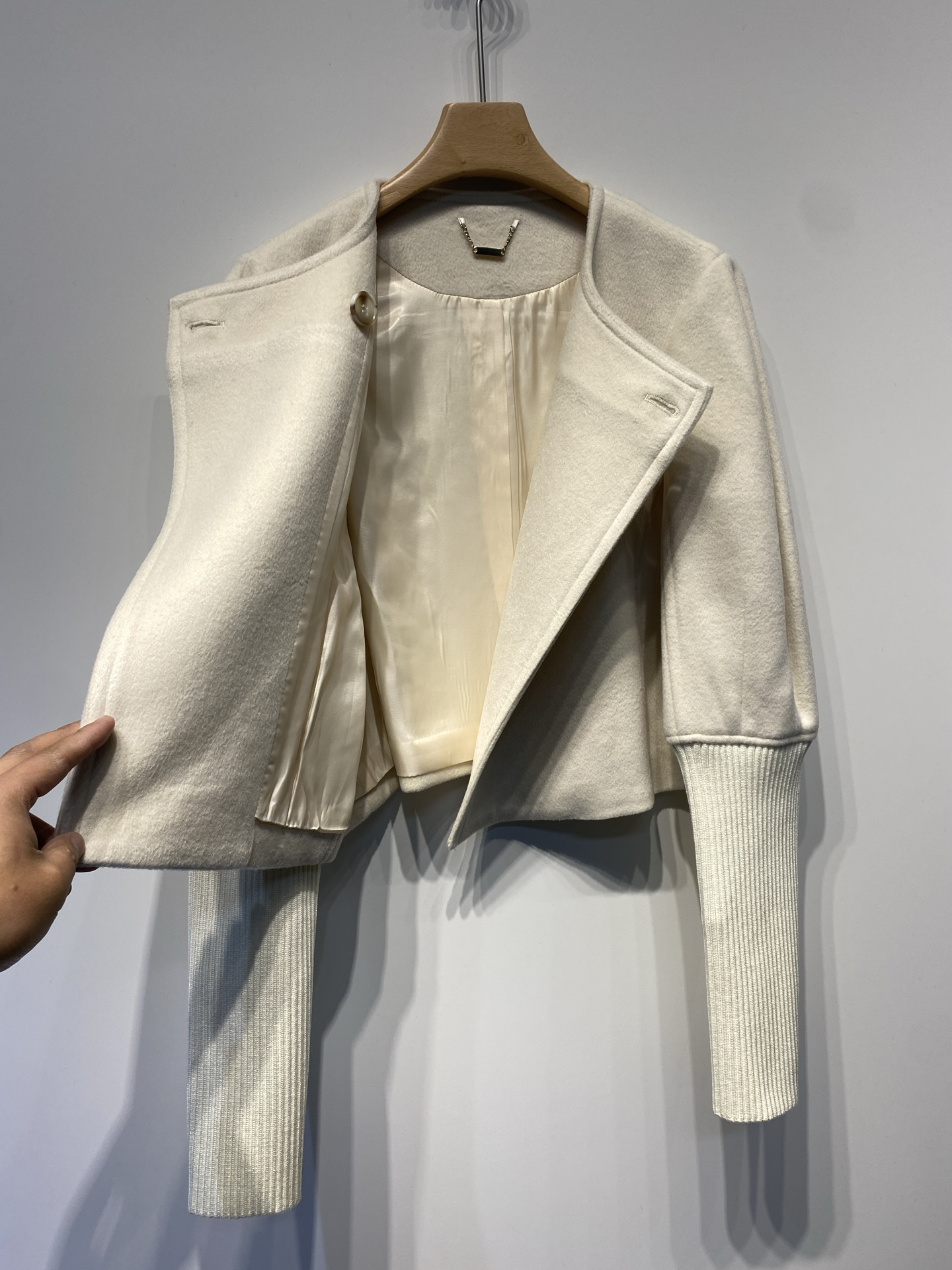 Details: Women s camel-colored short wool-knit coat with cuffed sleeves for a slim look.