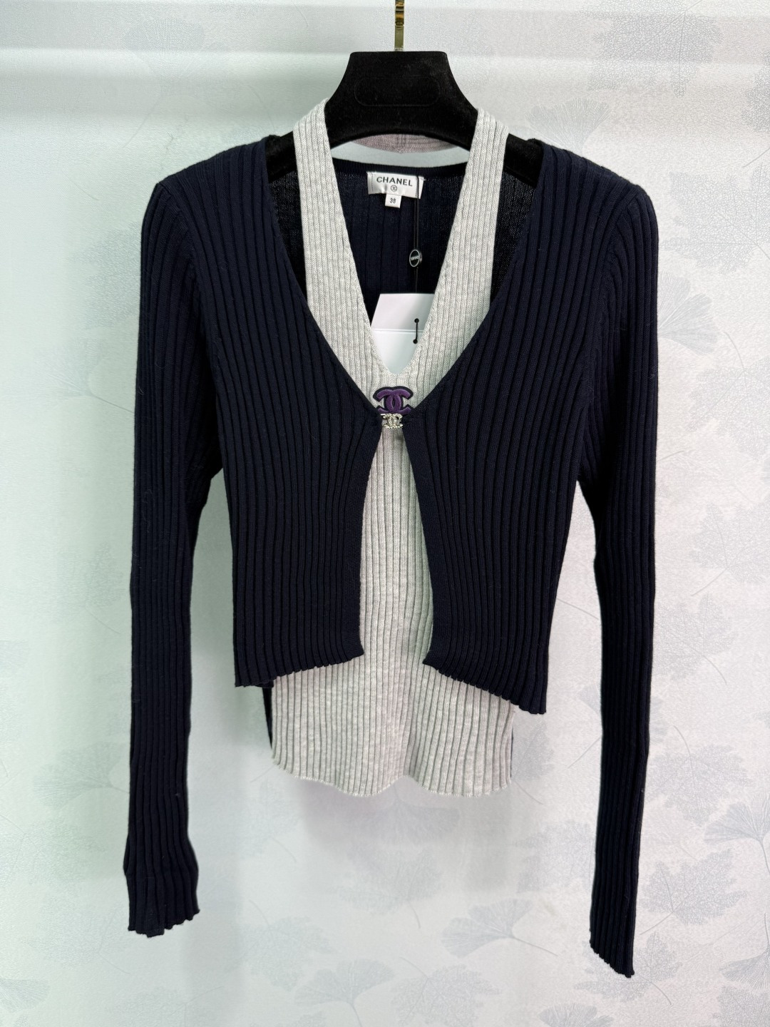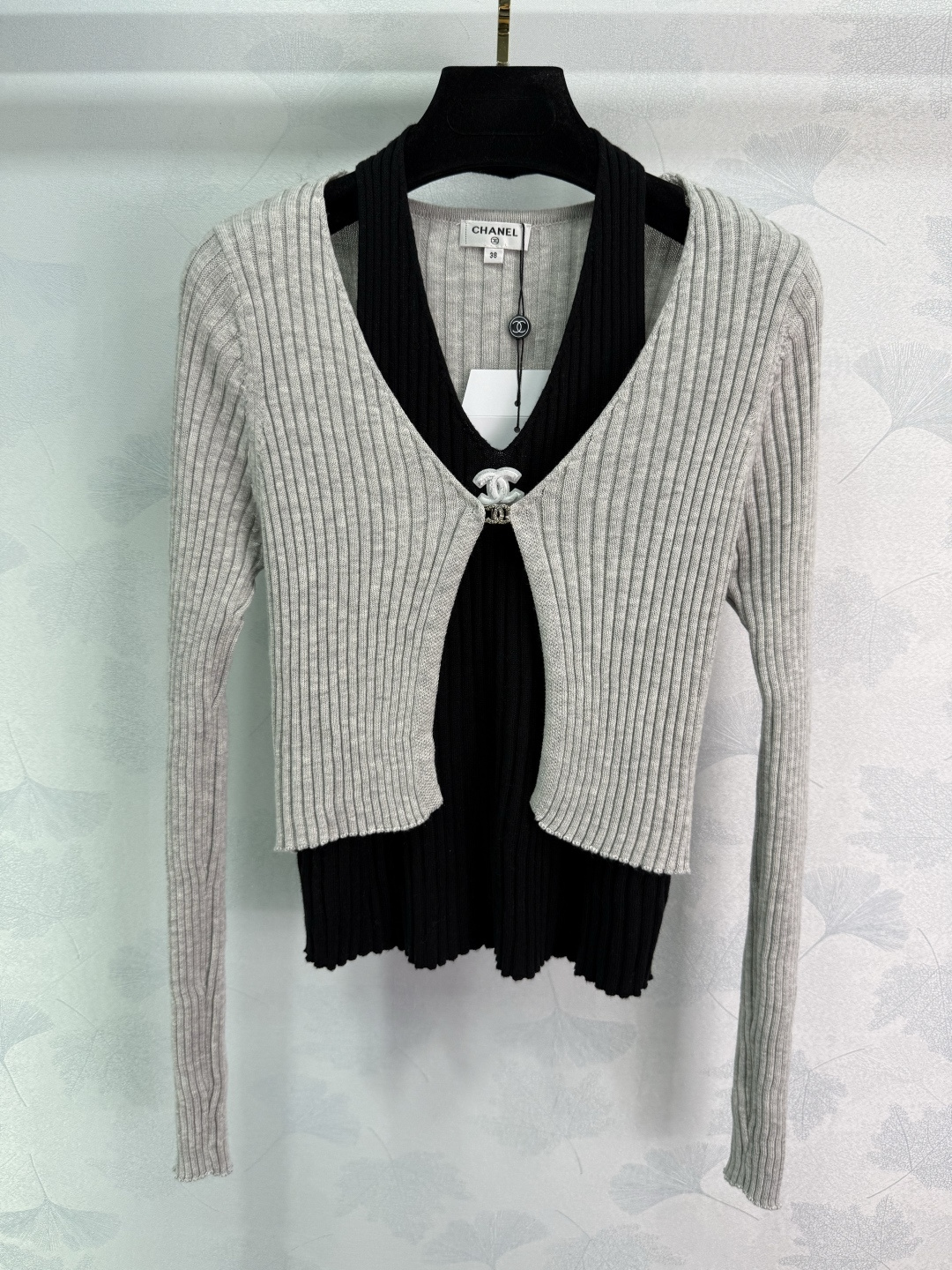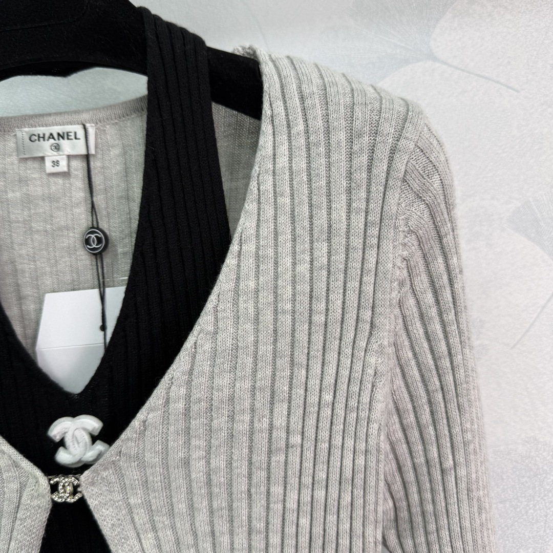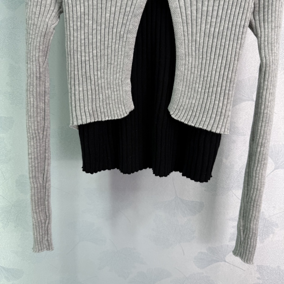 Details: New early fall fake two-piece knit cardigan with V-neck, classic logo, soft fabric, slim fit, available in two colors.