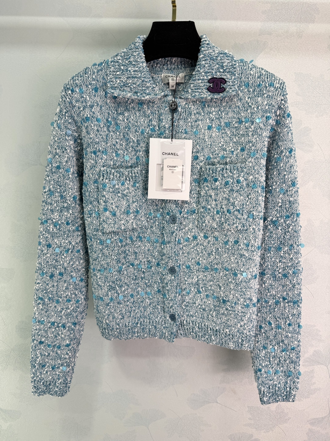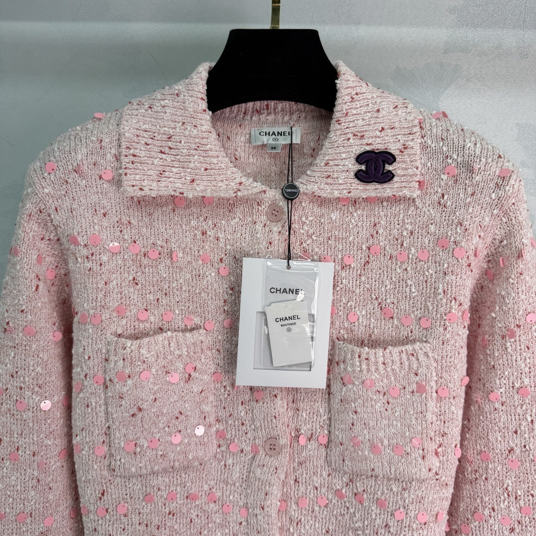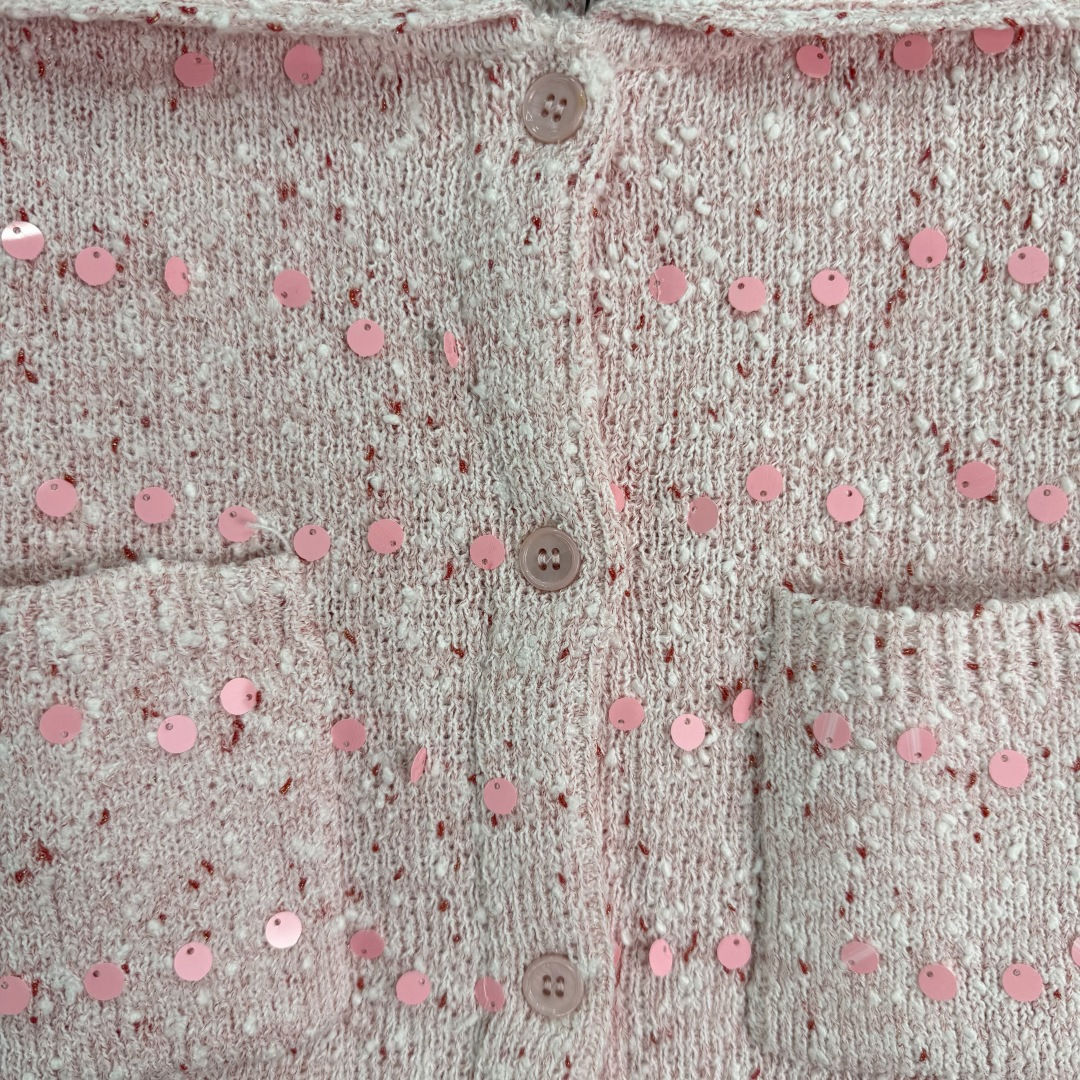 Details: Early spring sequined tweed cardigan, sweet and delicate, short cut, available in 2 colors and 3 sizes.