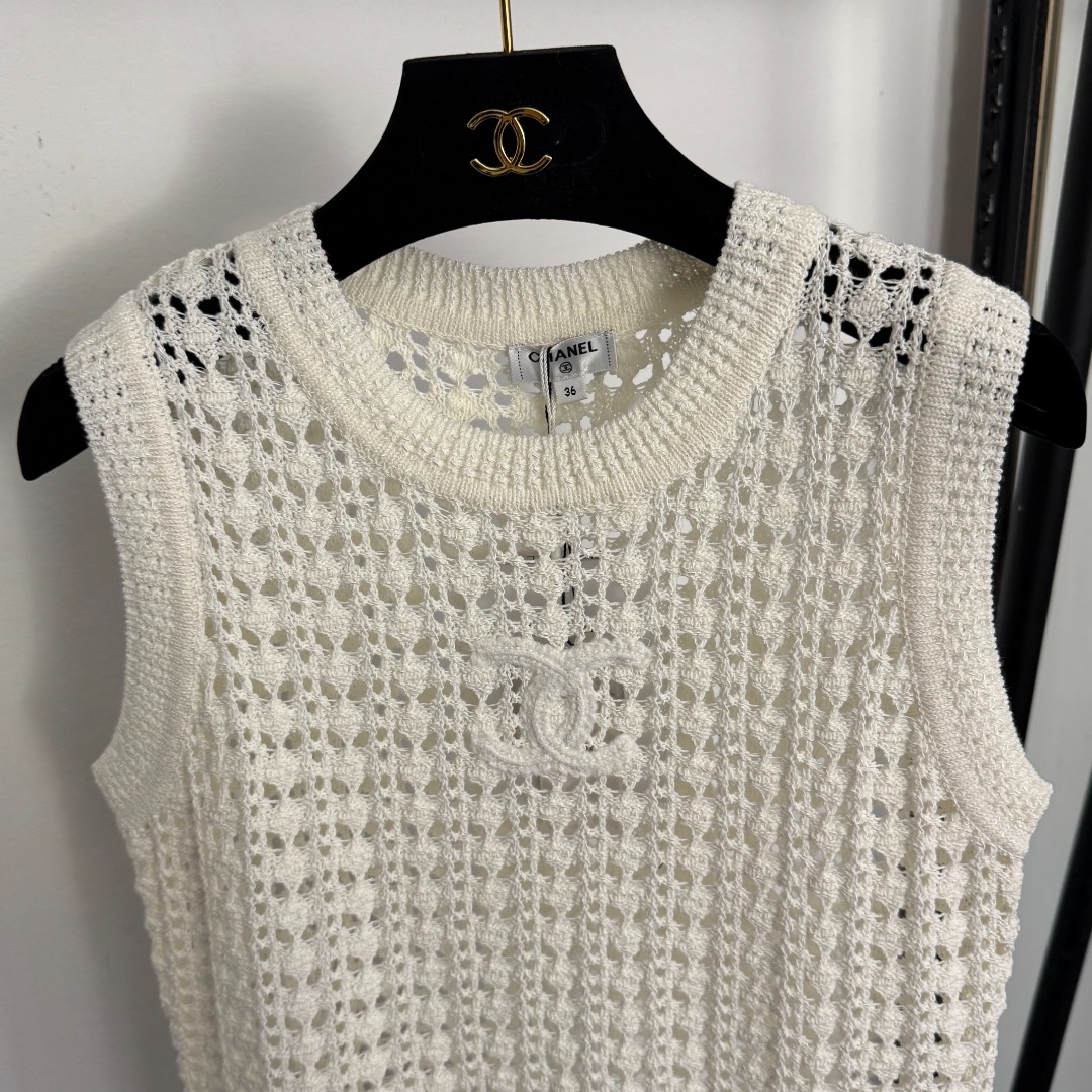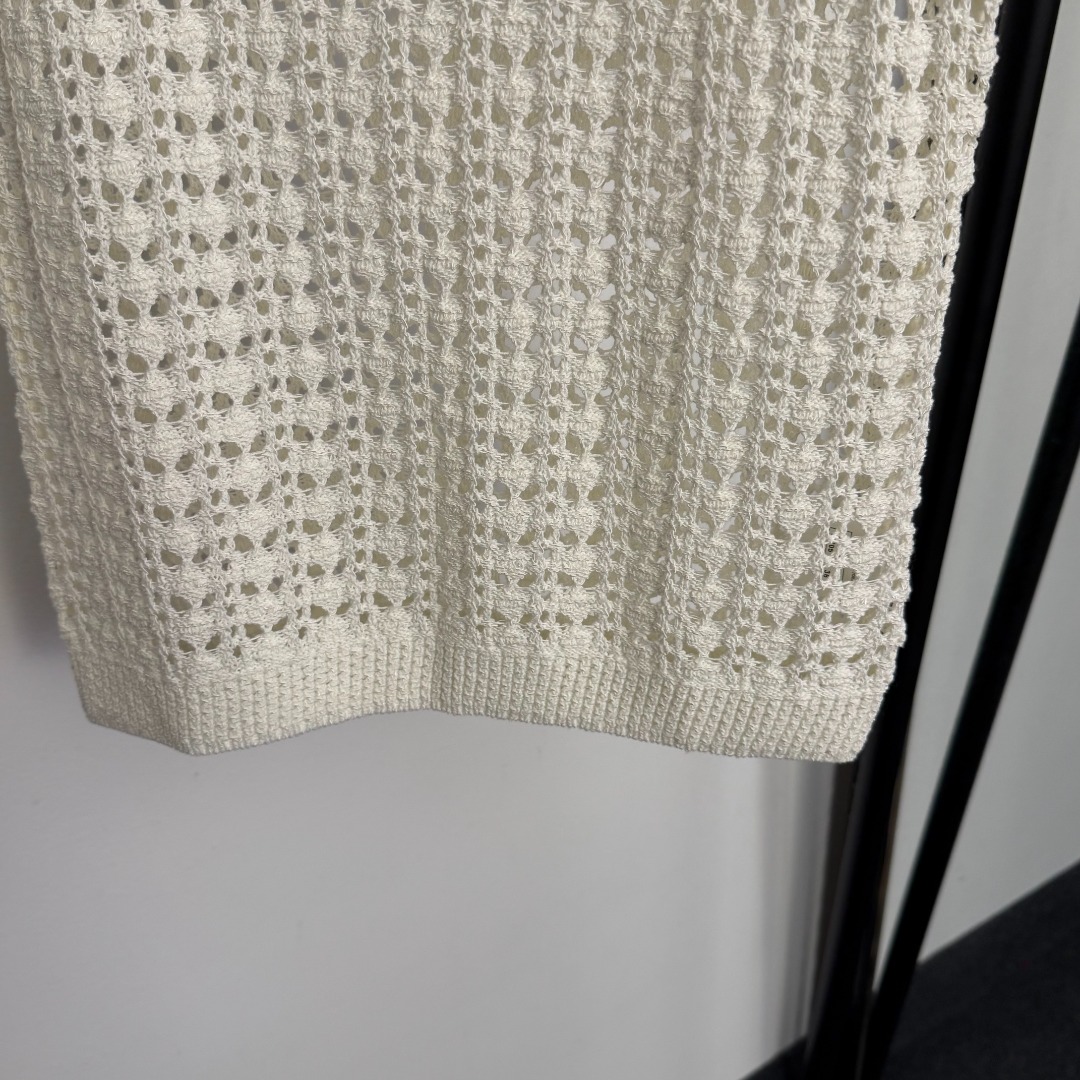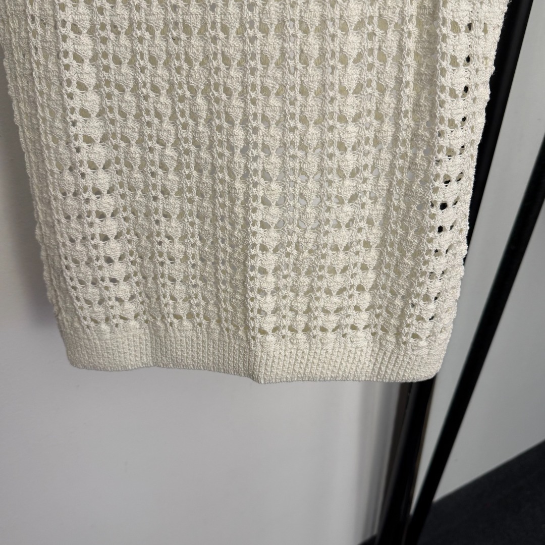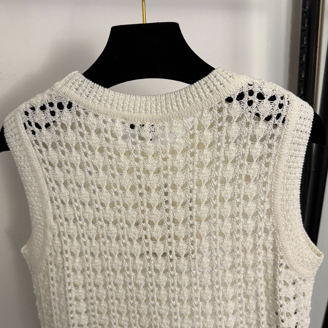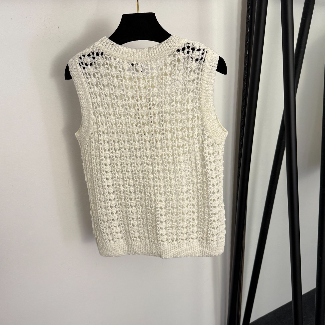 Details: New off-white, pink, black tweed logo embroidered hollowed-out knitted vest, Size 36, high-end custom, fine craftsmanship