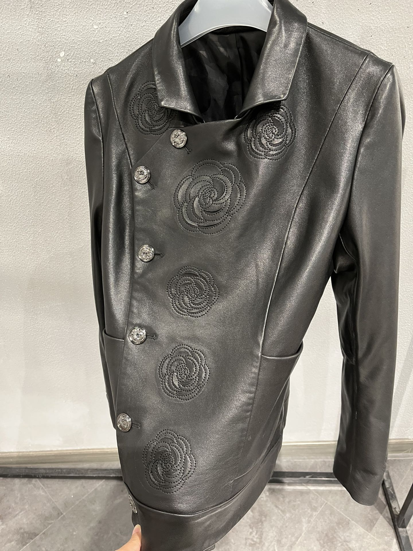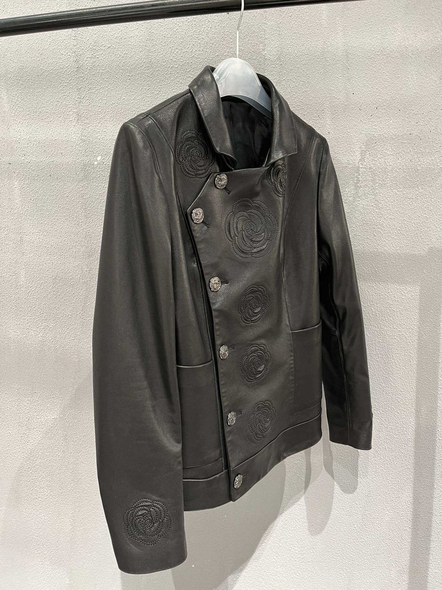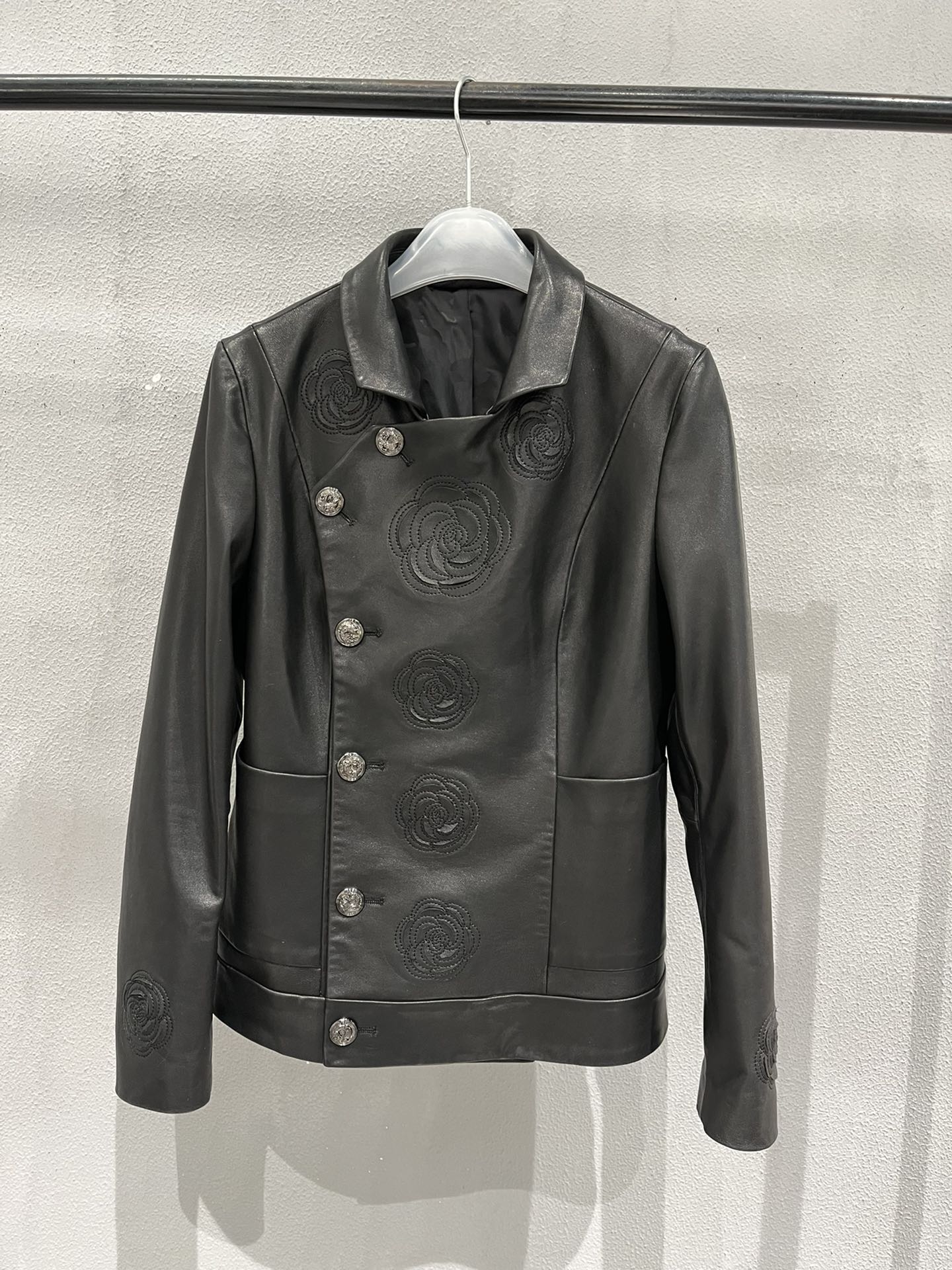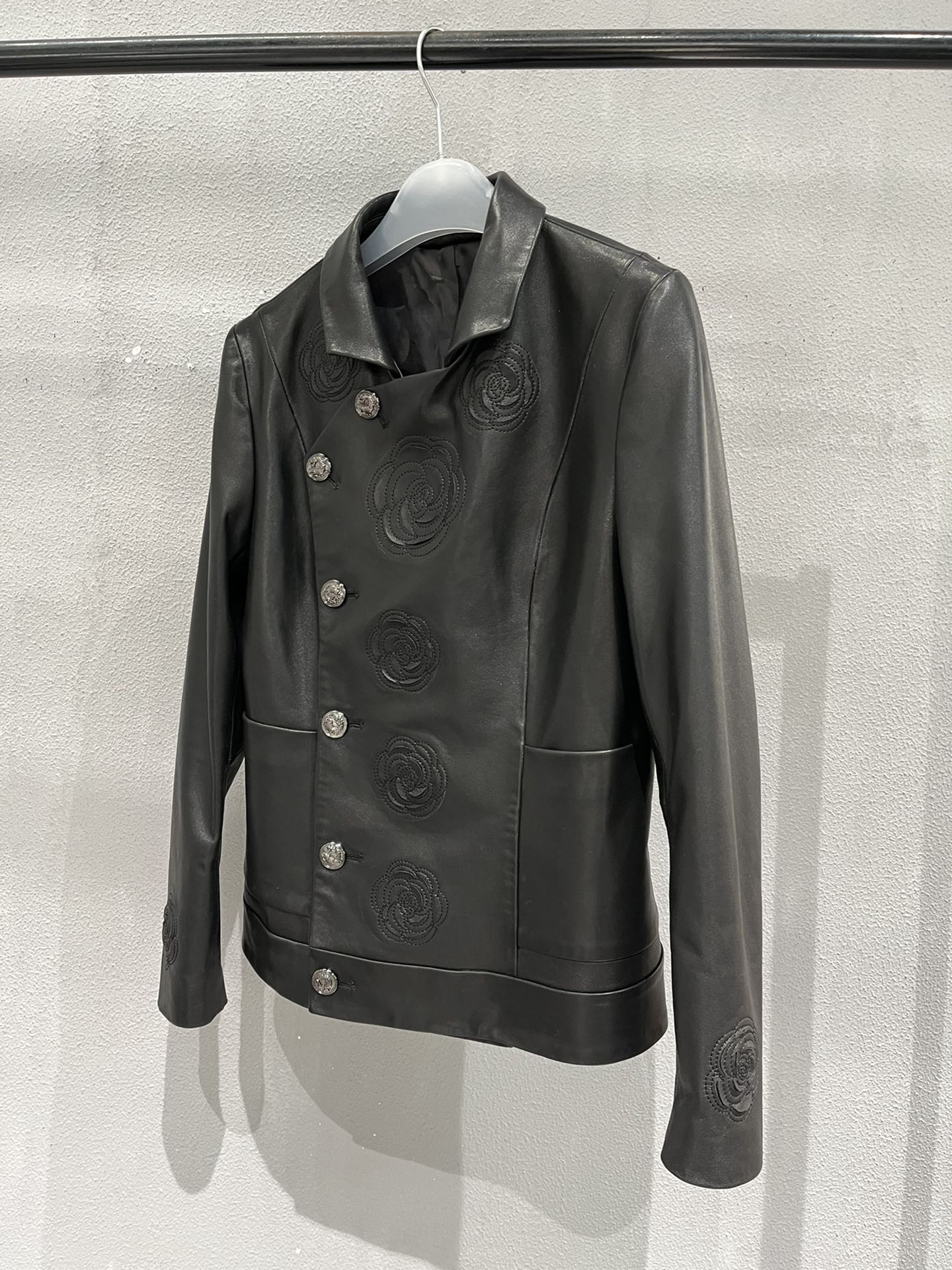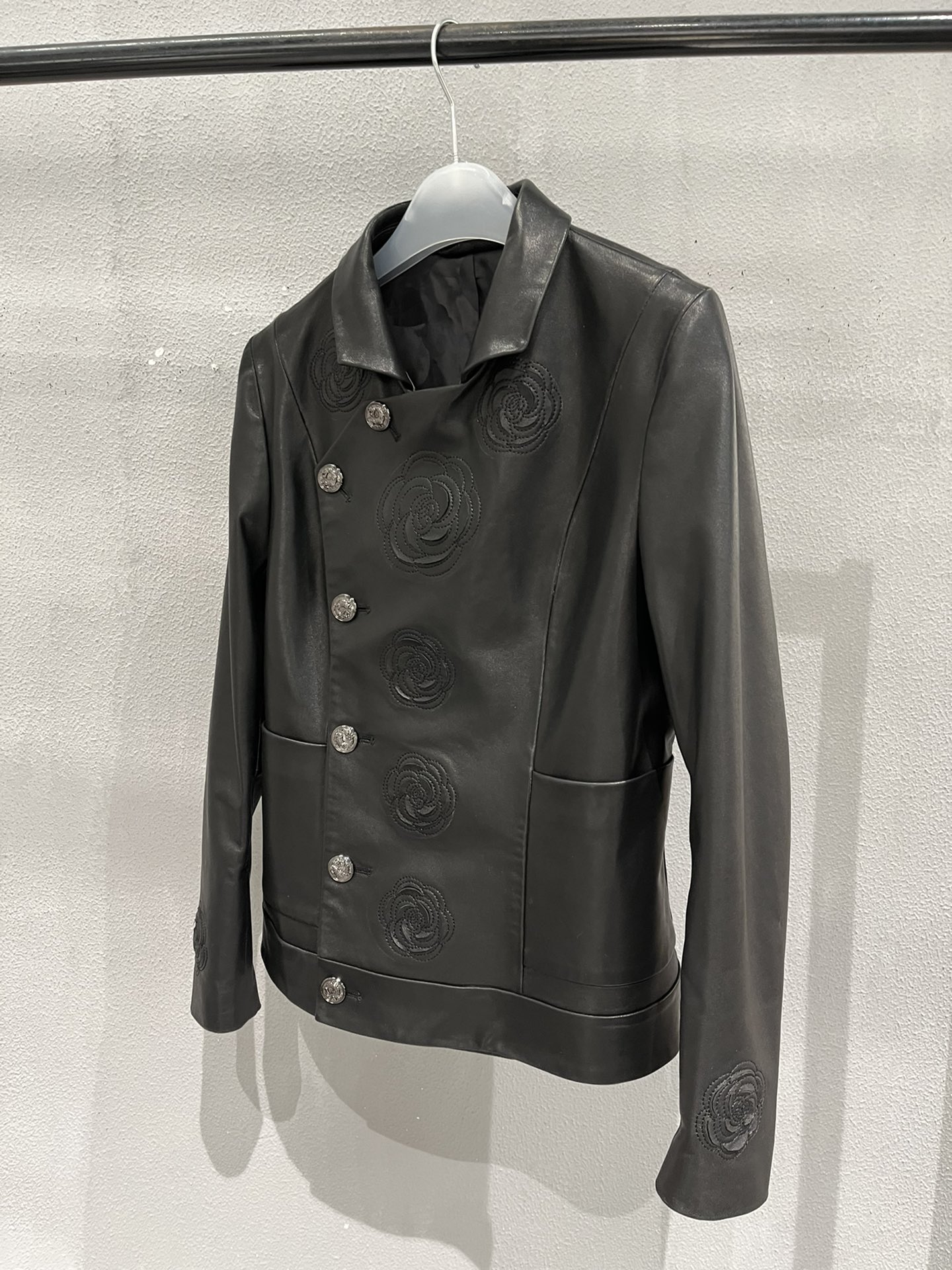 Details: Vintage embroidered leather jacket with hand-cut flower edges, petals can be fluffed for volume, high-end customization, fine workmanship