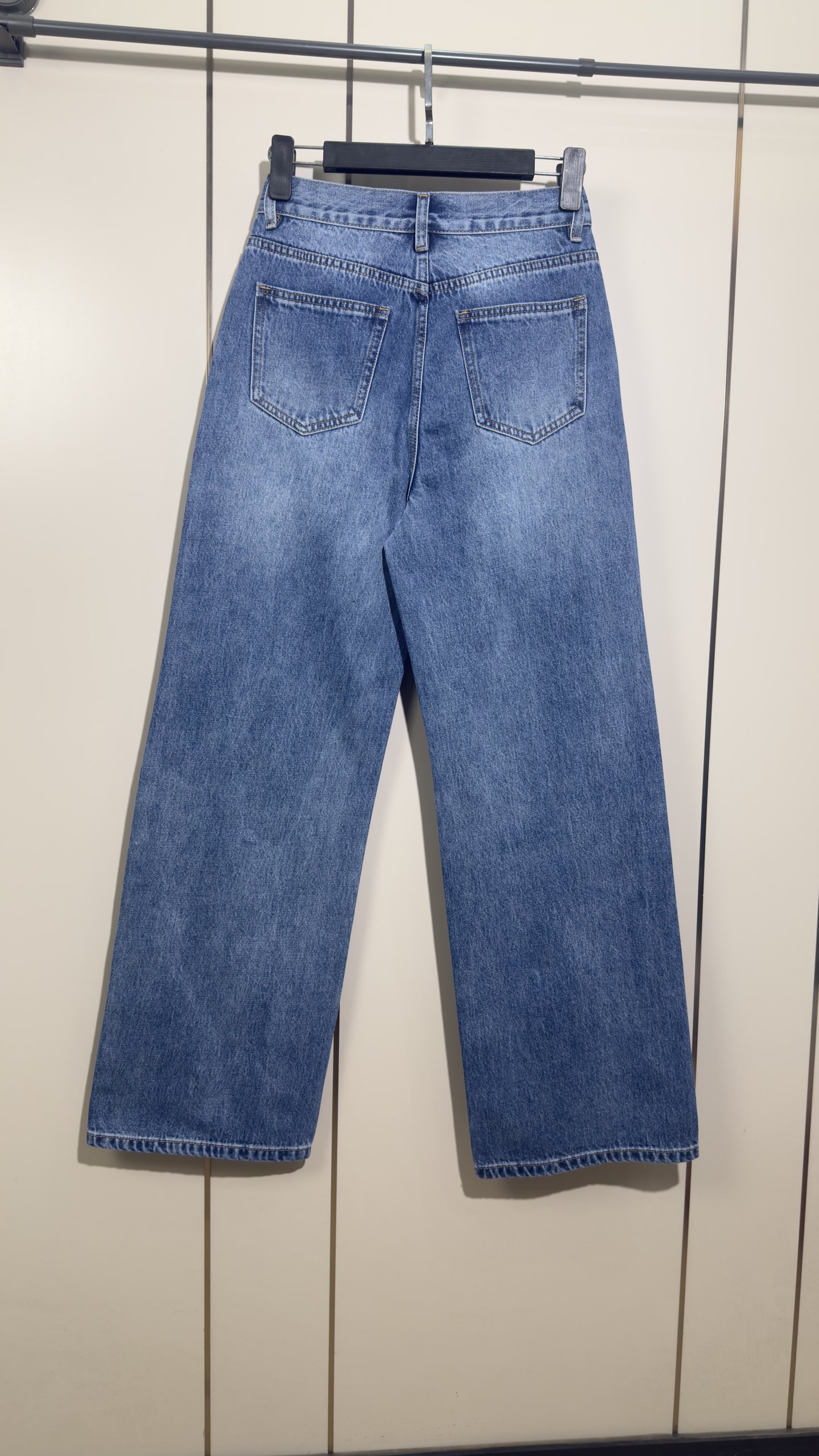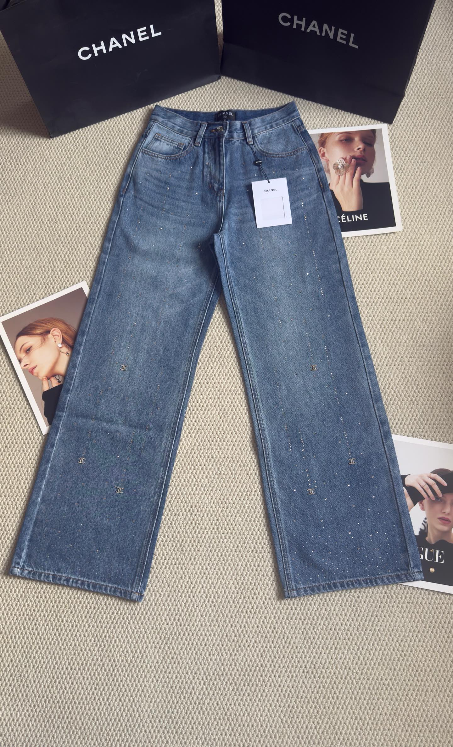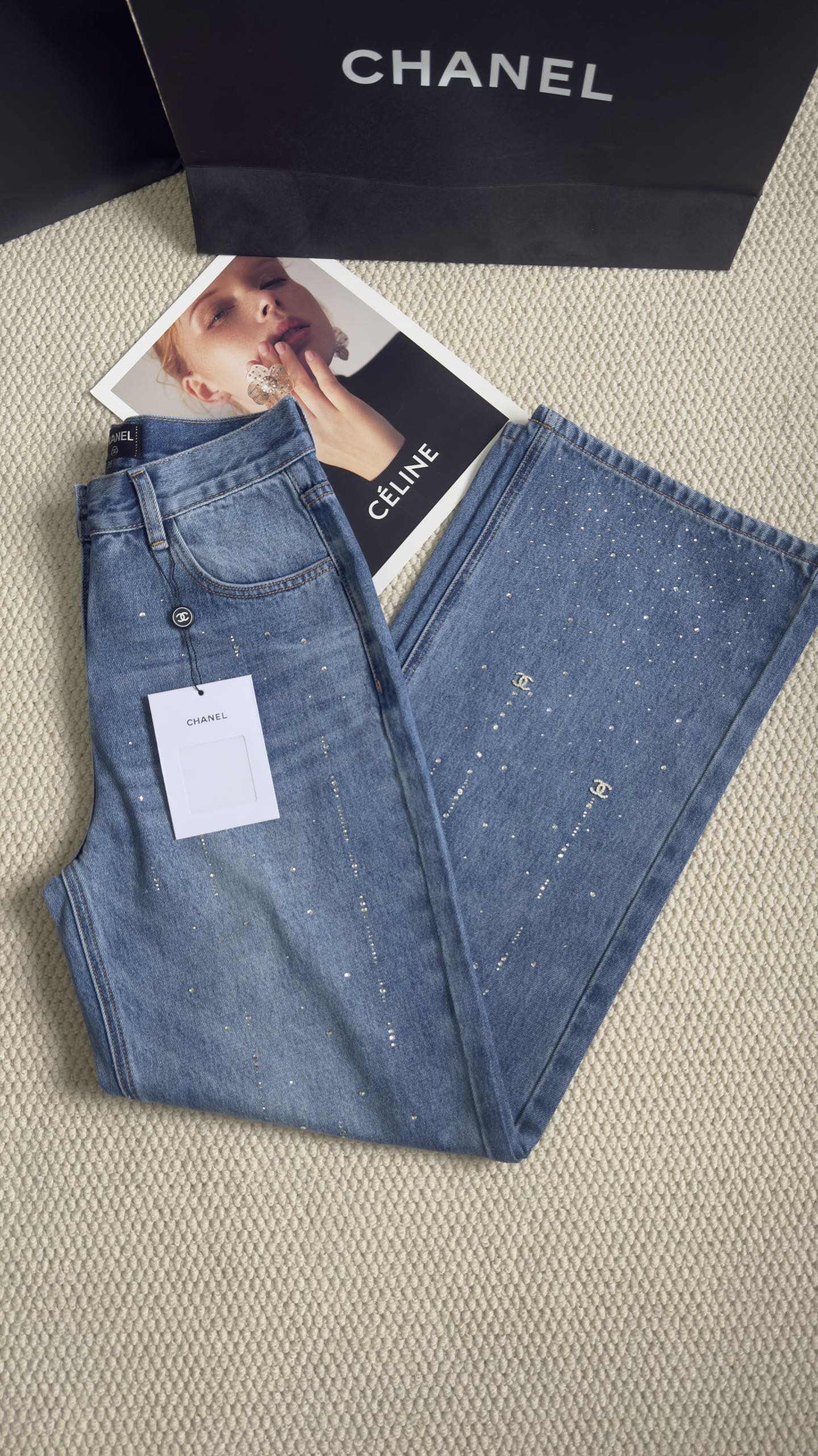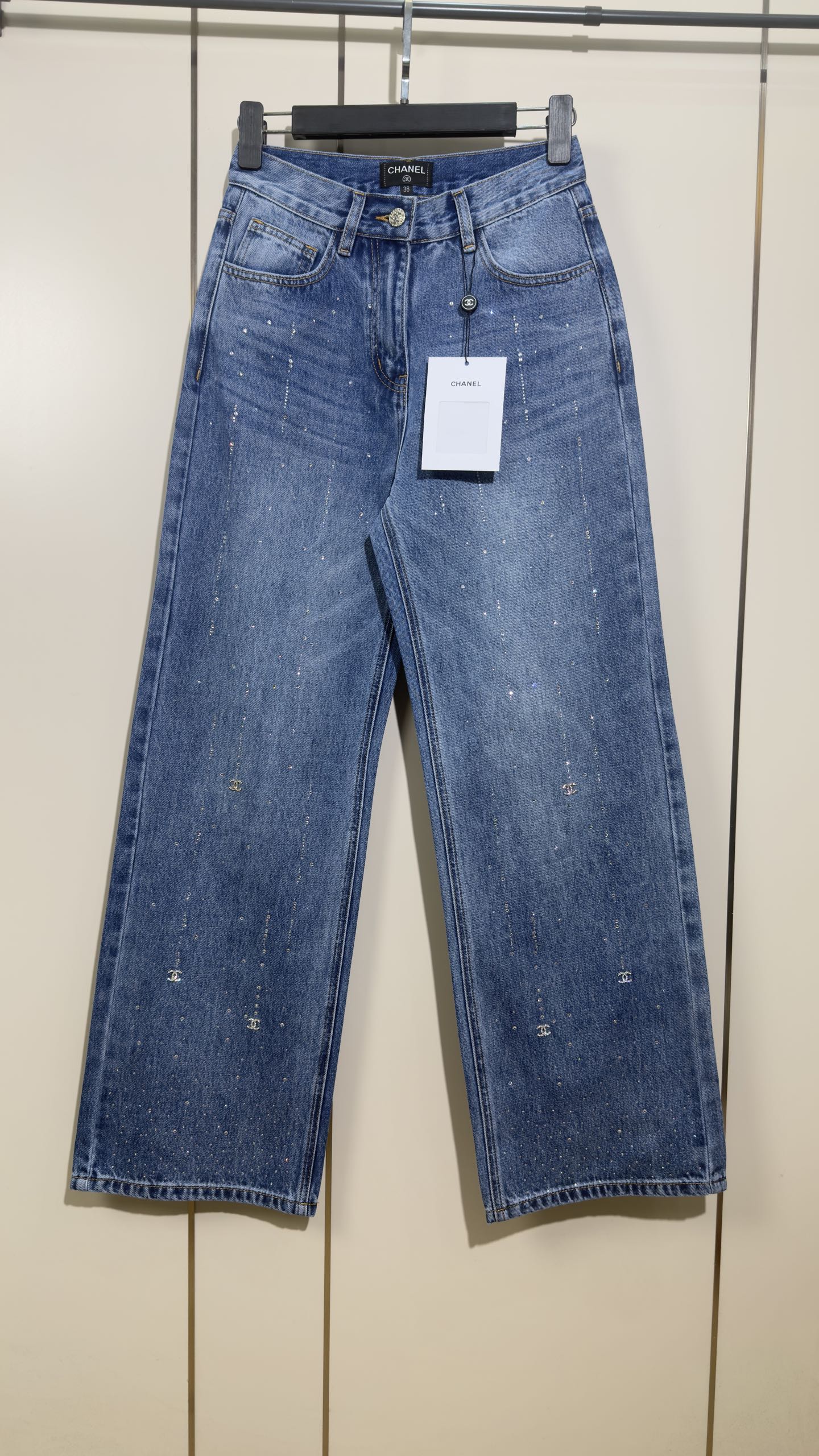 Details: Autumn-Winter Elegant Logo-Embossed Denim Wide-Leg Pants, Slimming and Stylish. High-end Customization, Fine Craftsmanship