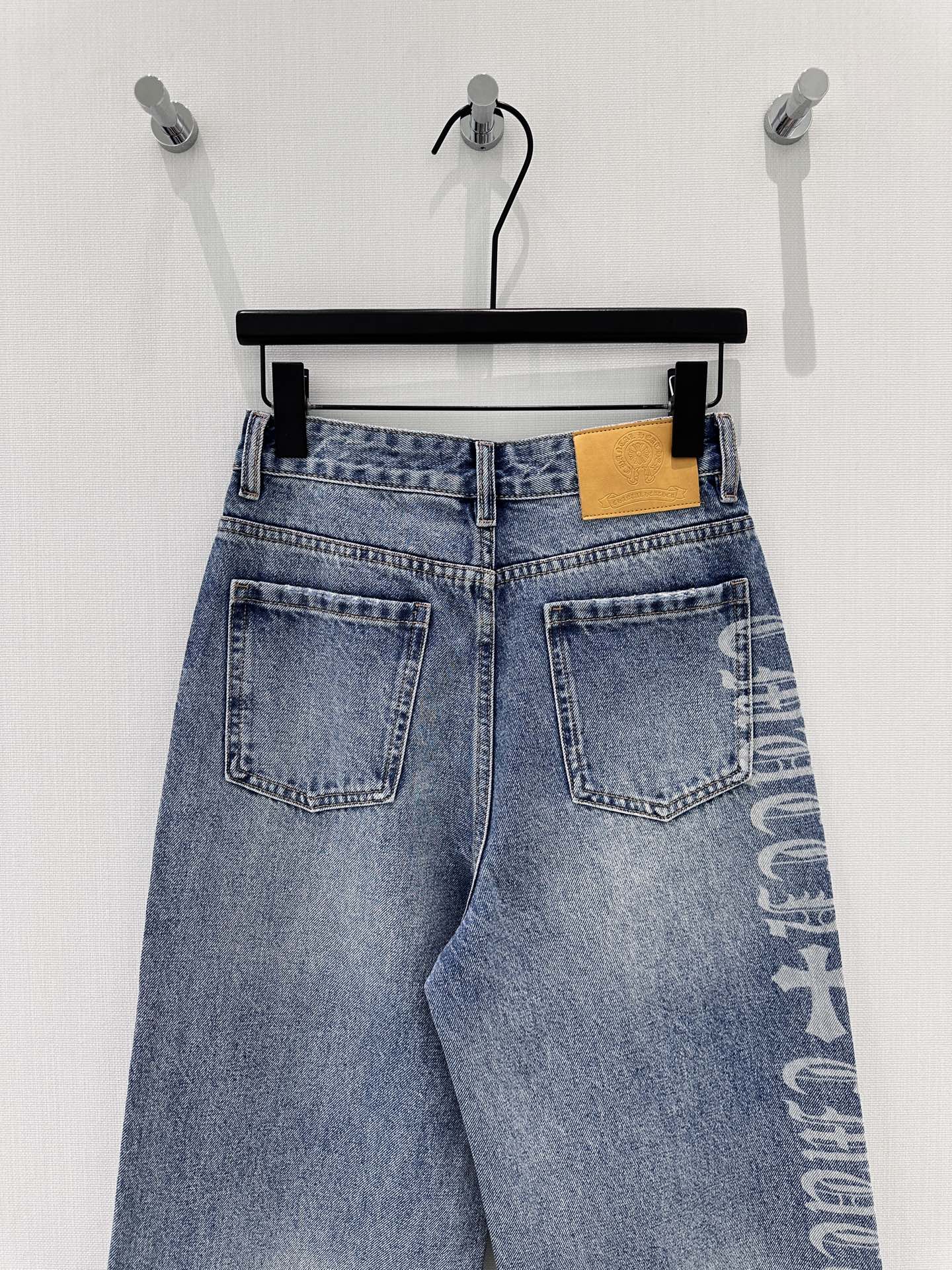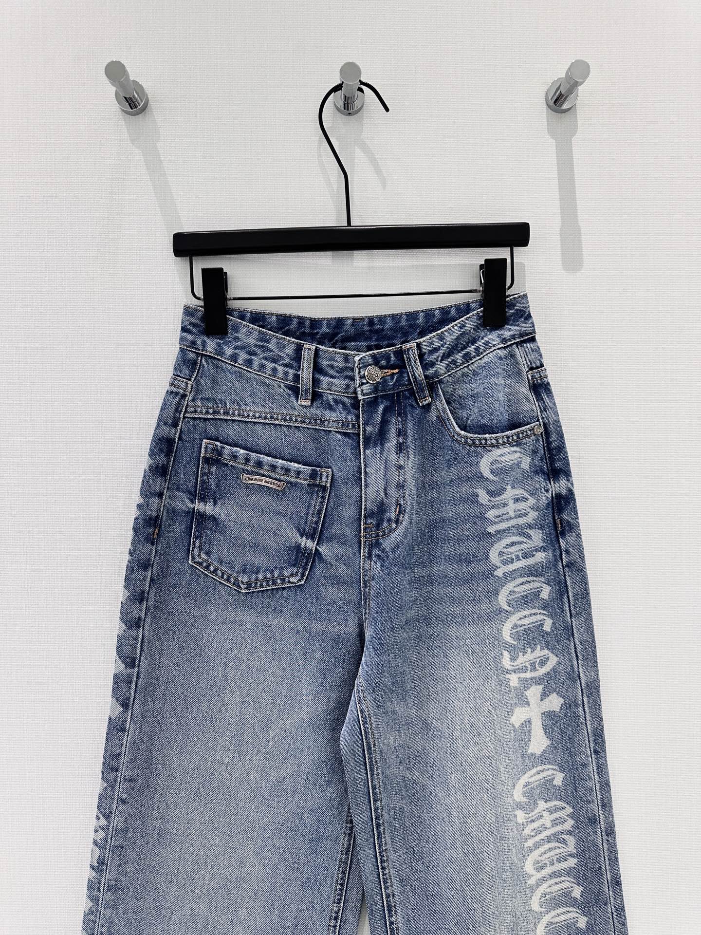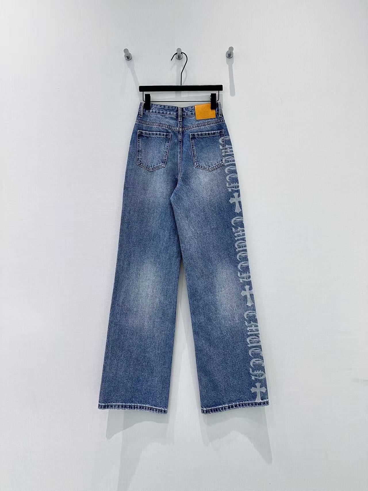 Details: Spring-summer Blue wide-leg straight jeans with hot-fix rhinestones, fashionable and slimming.