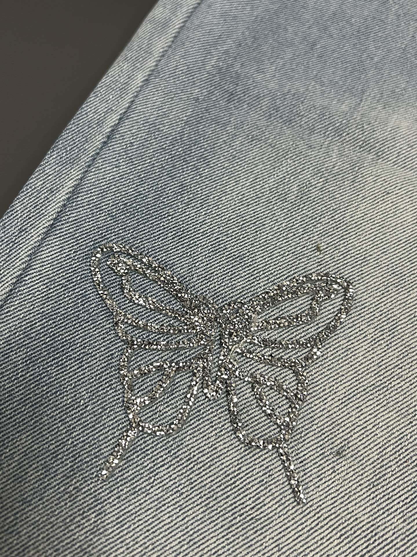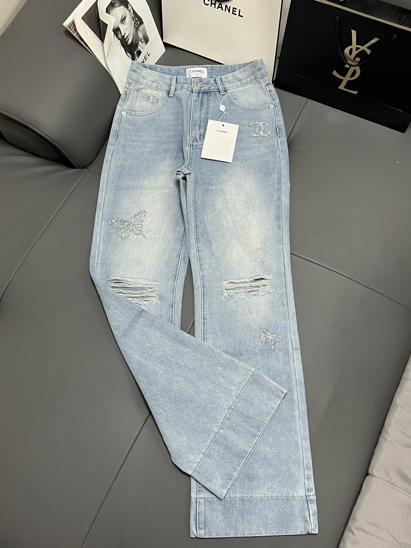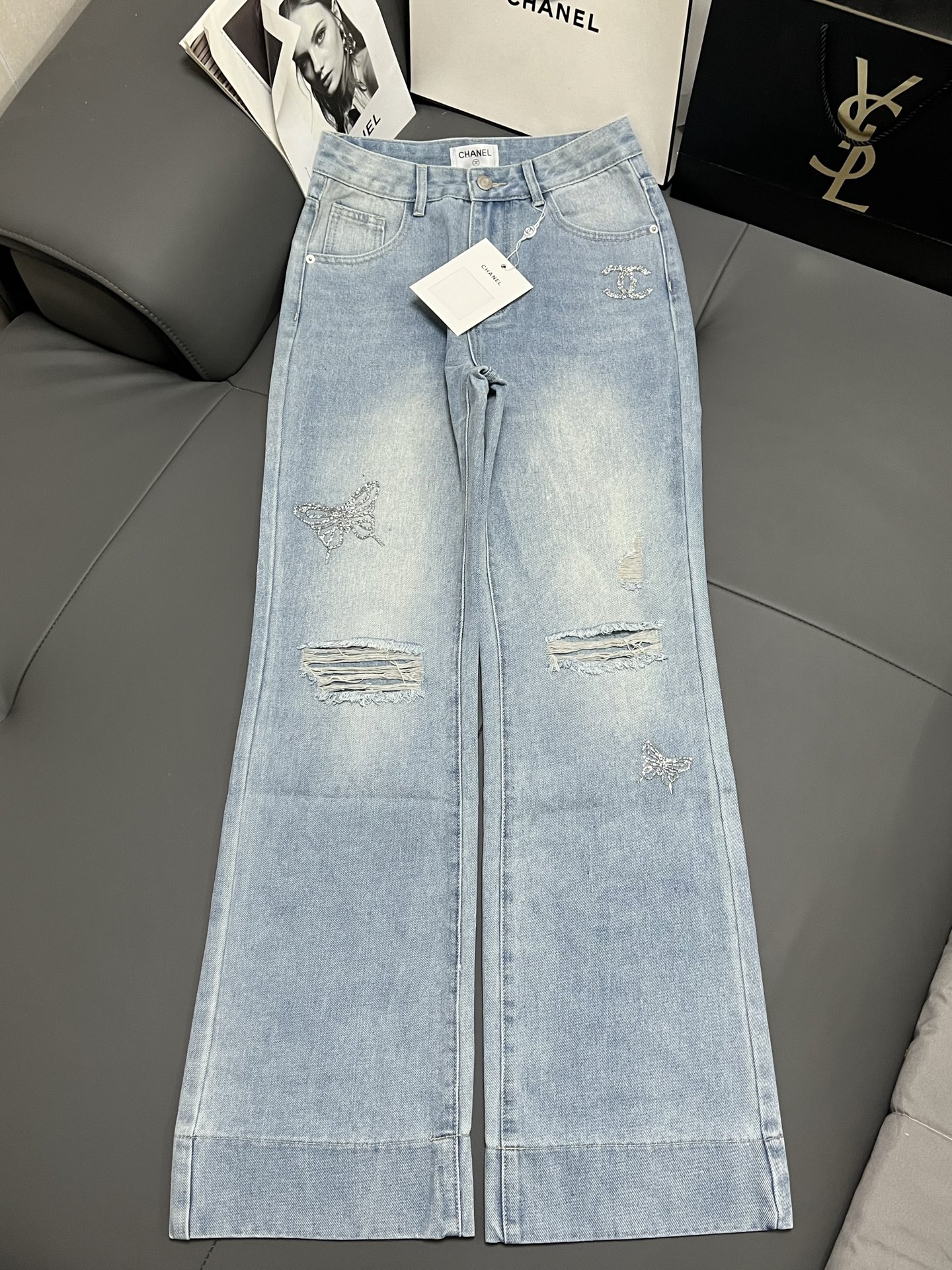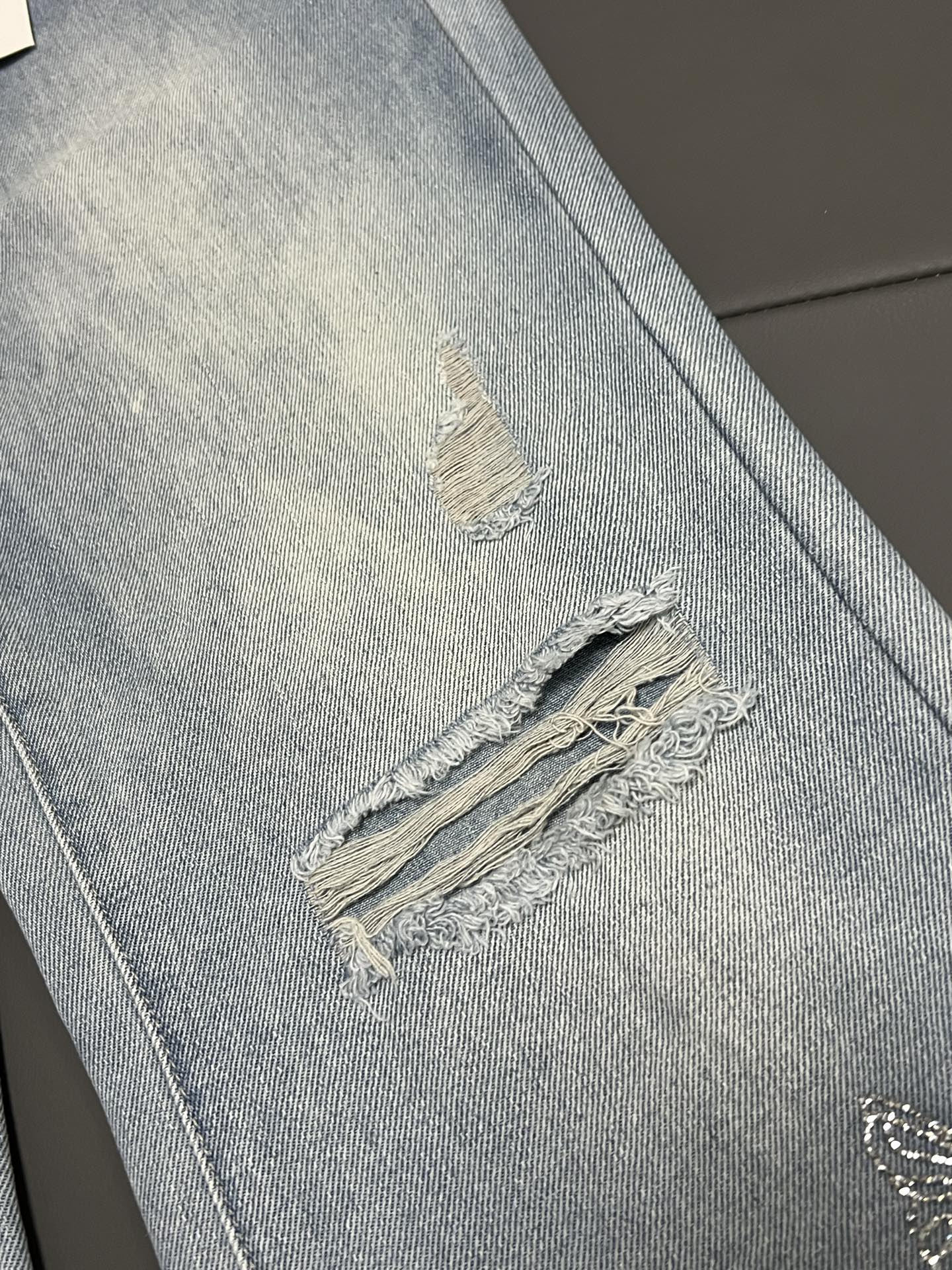 Details: Rhinestone - decorated flare jeans suitable for pear - shaped figures, leg - lengthening. High - end customization, fine workmanship