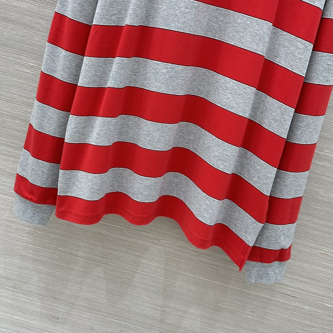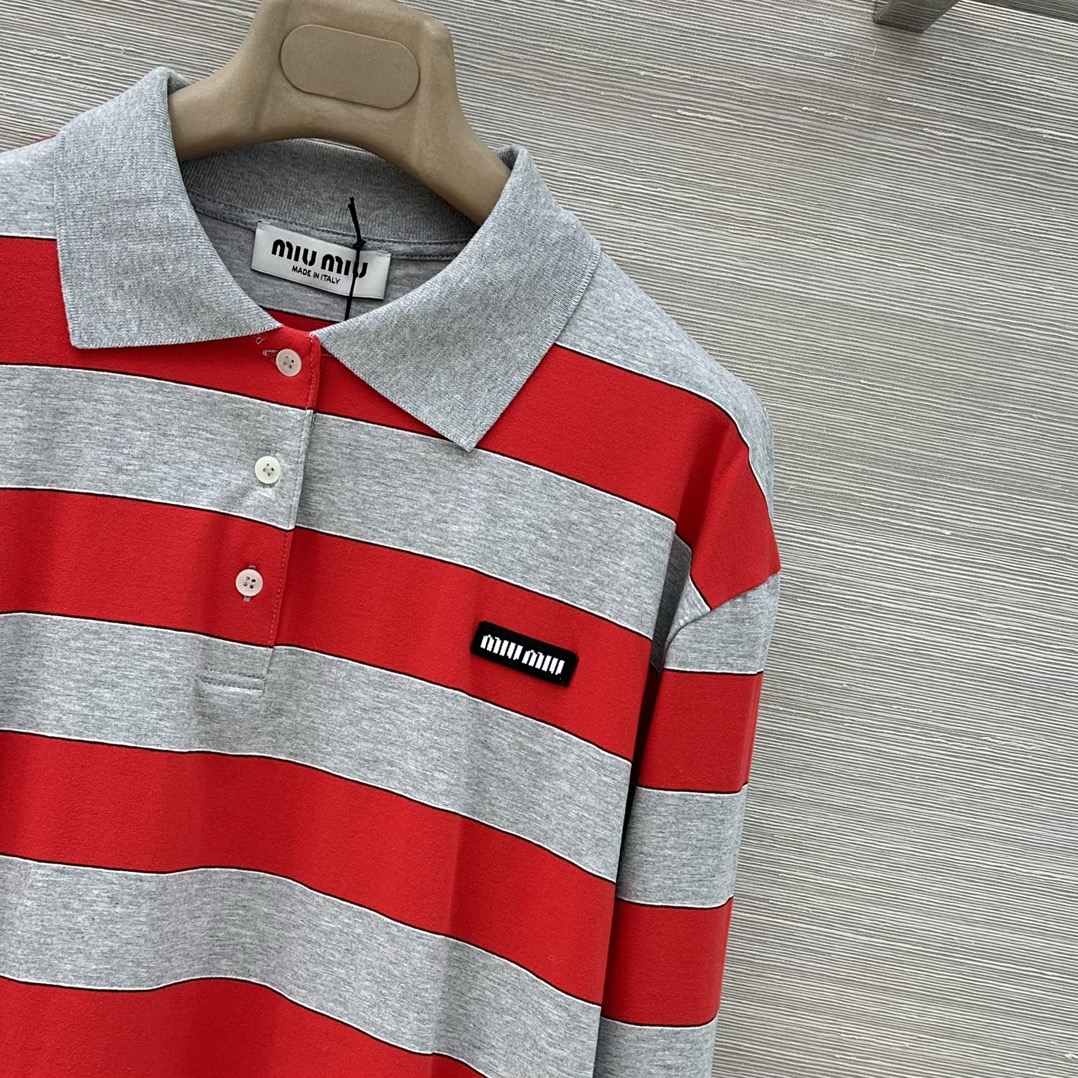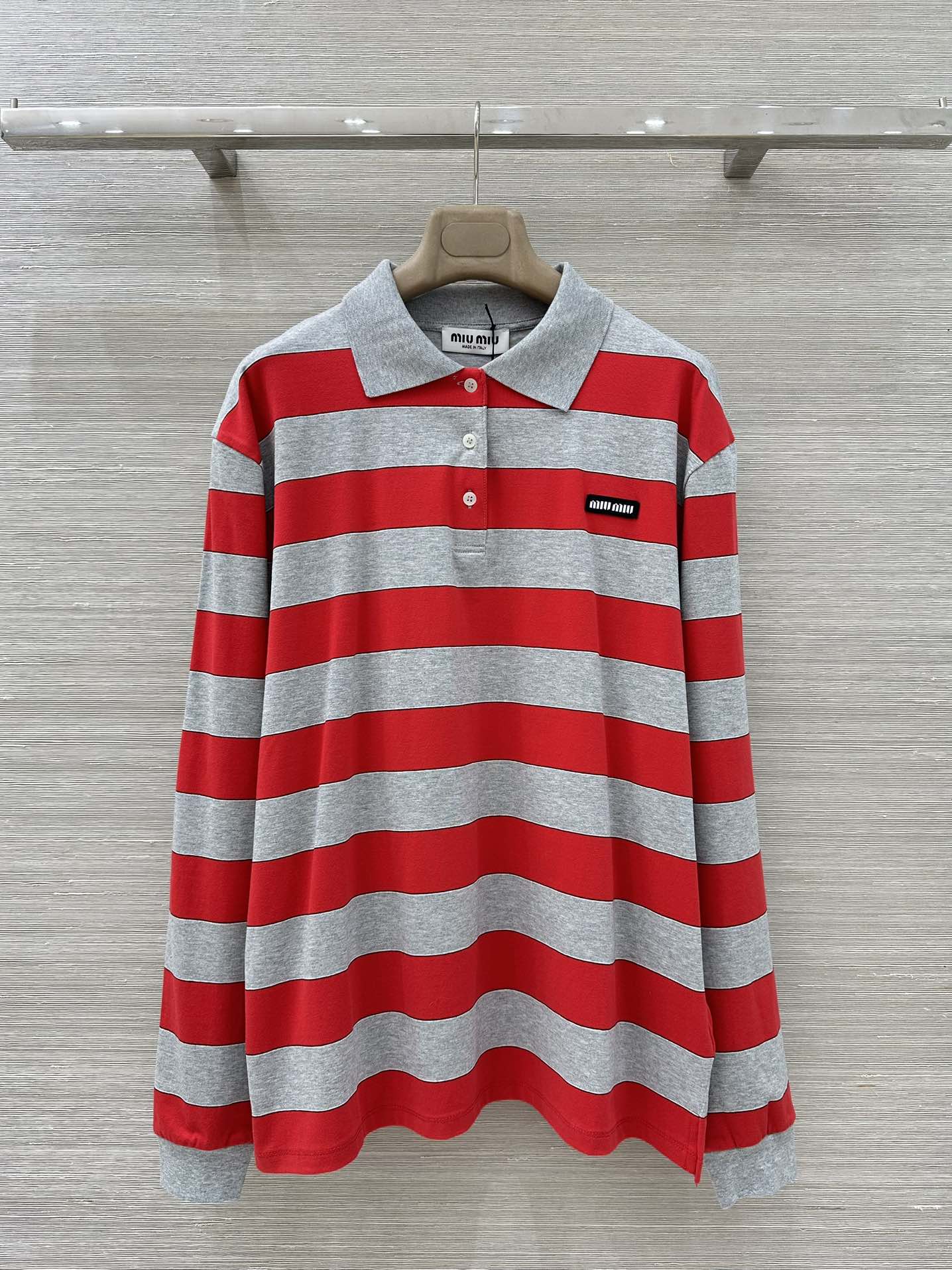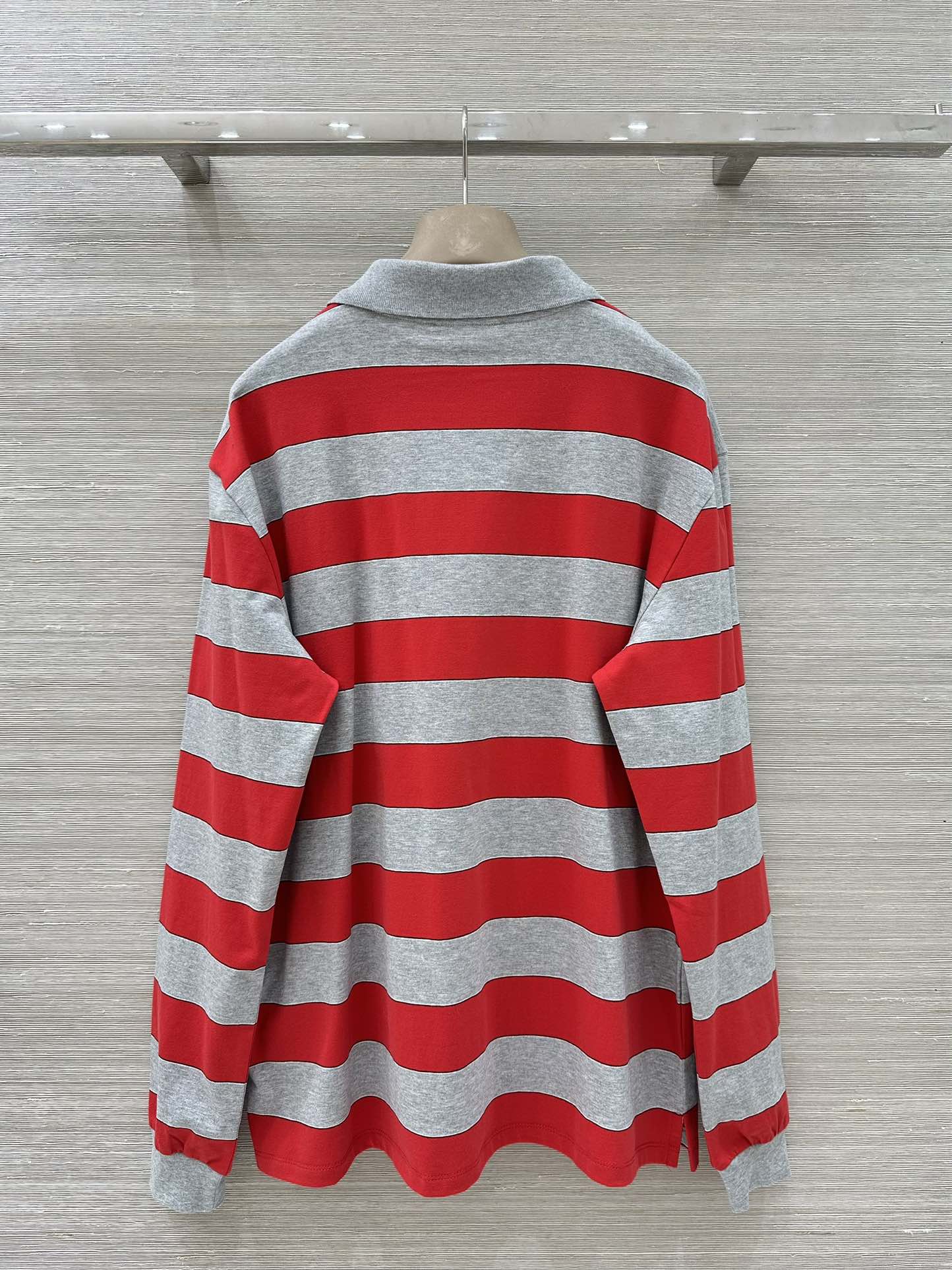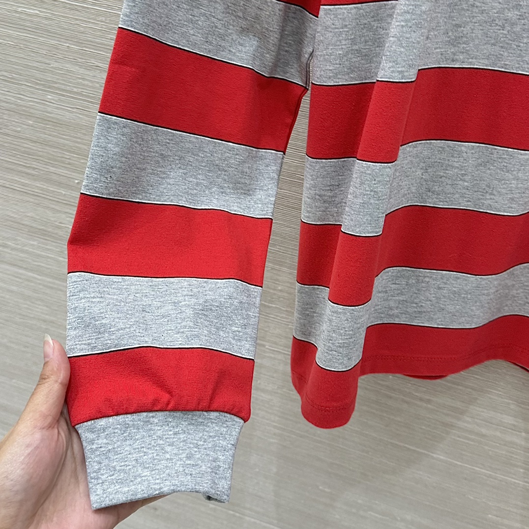 Details: Miu-inspired pre-spring new arrival, intellectual chic gray-red striped polo long-sleeve T-shirt, relaxed and versatile.