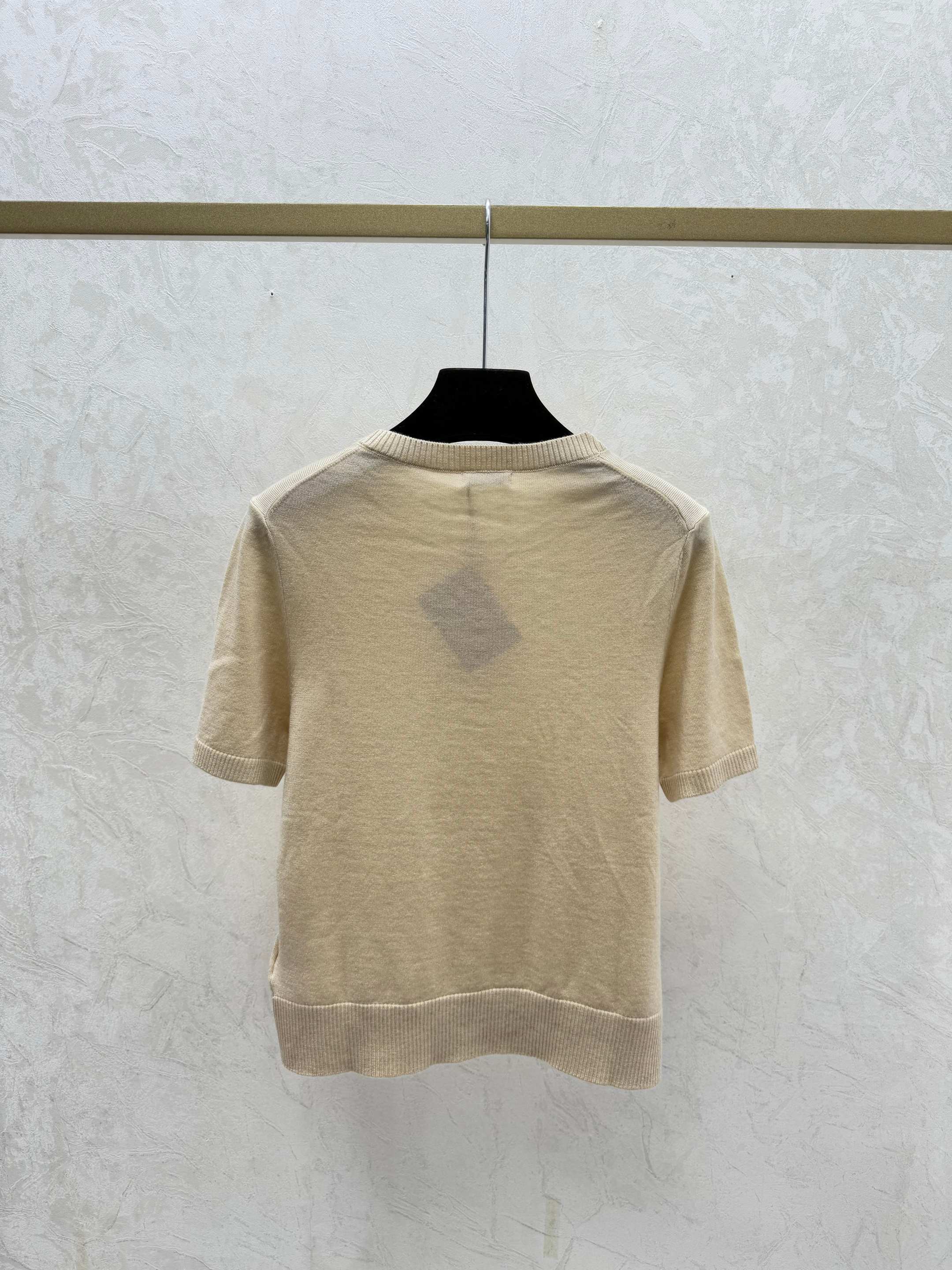 Details: Early Spring Solid-Color Round-Neck Knitted Short-Sleeves in Apricot, Green, Black, Sizes 36 - 40