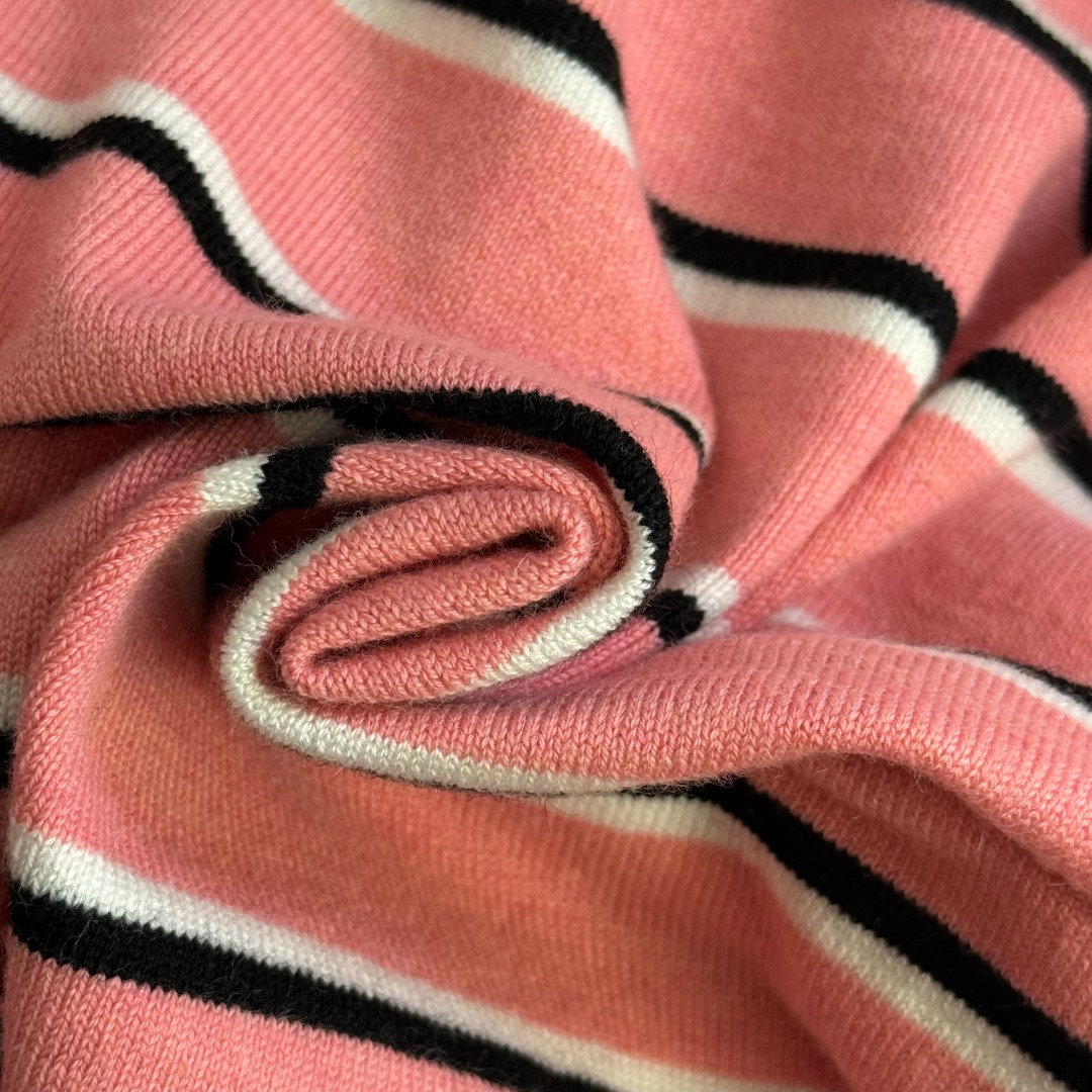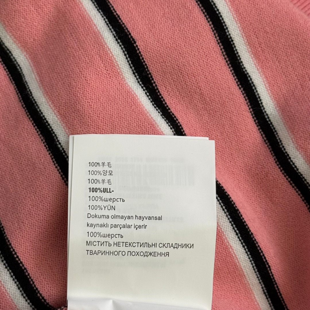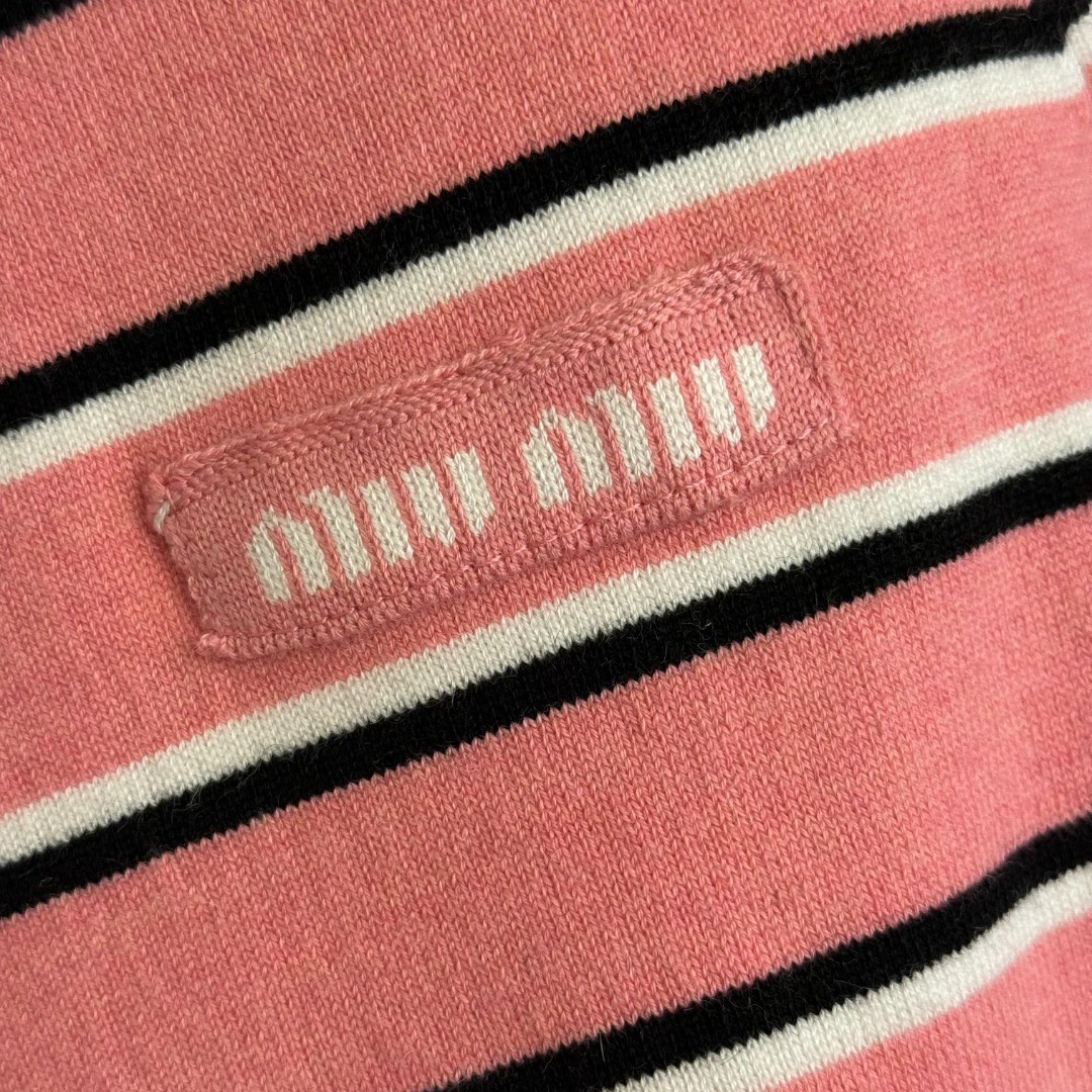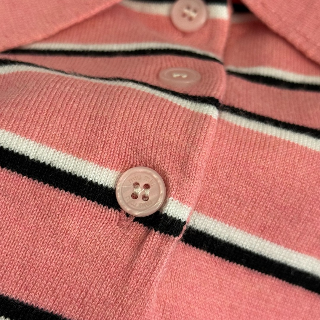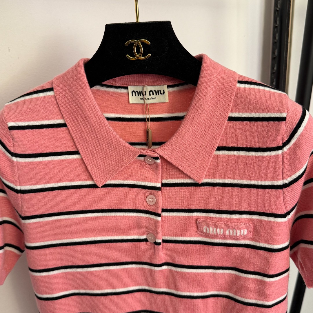 Details: New logo letter polo collar striped short-sleeved wool knitted top, pink, available in sizes 36/38/40.