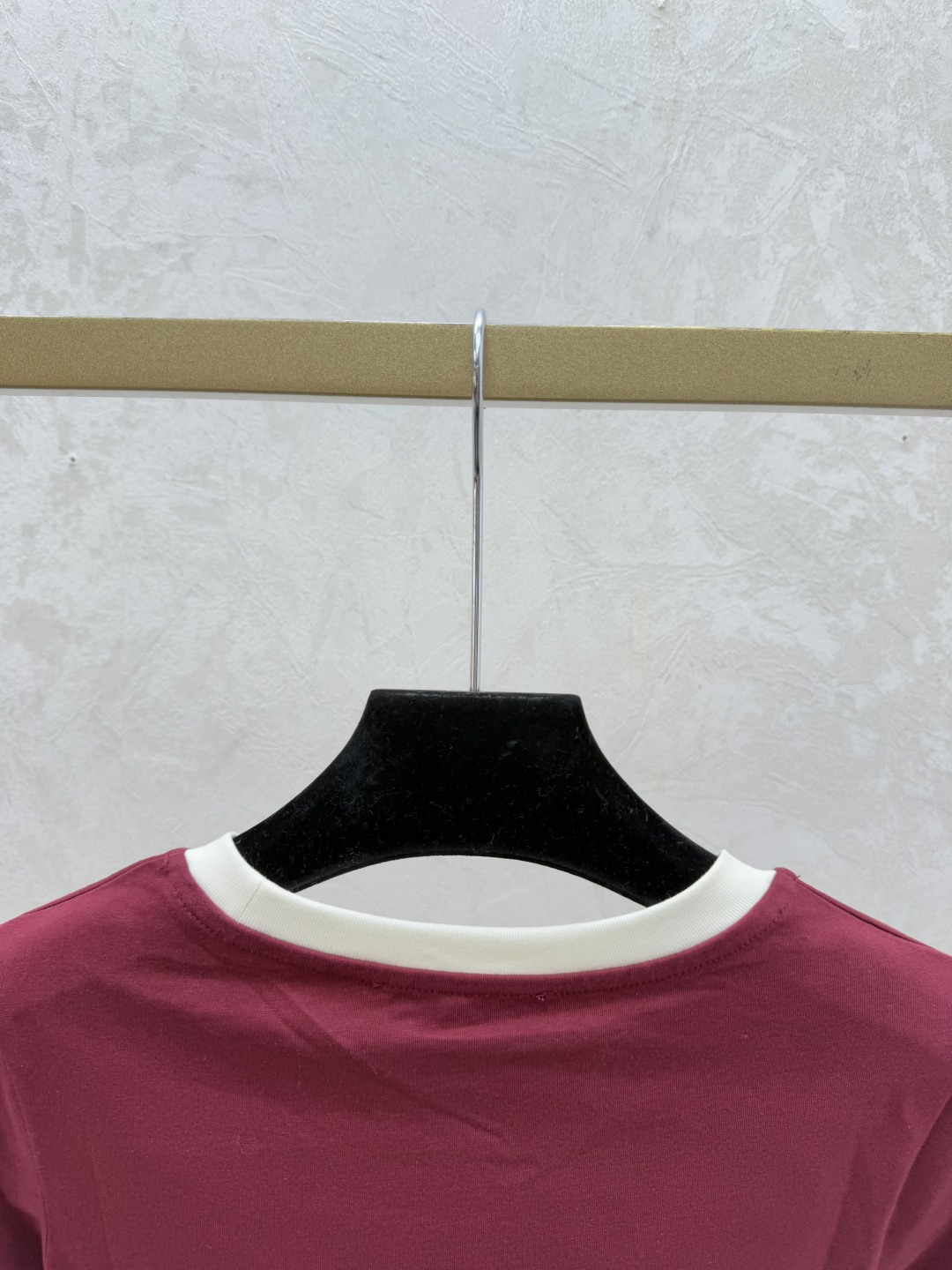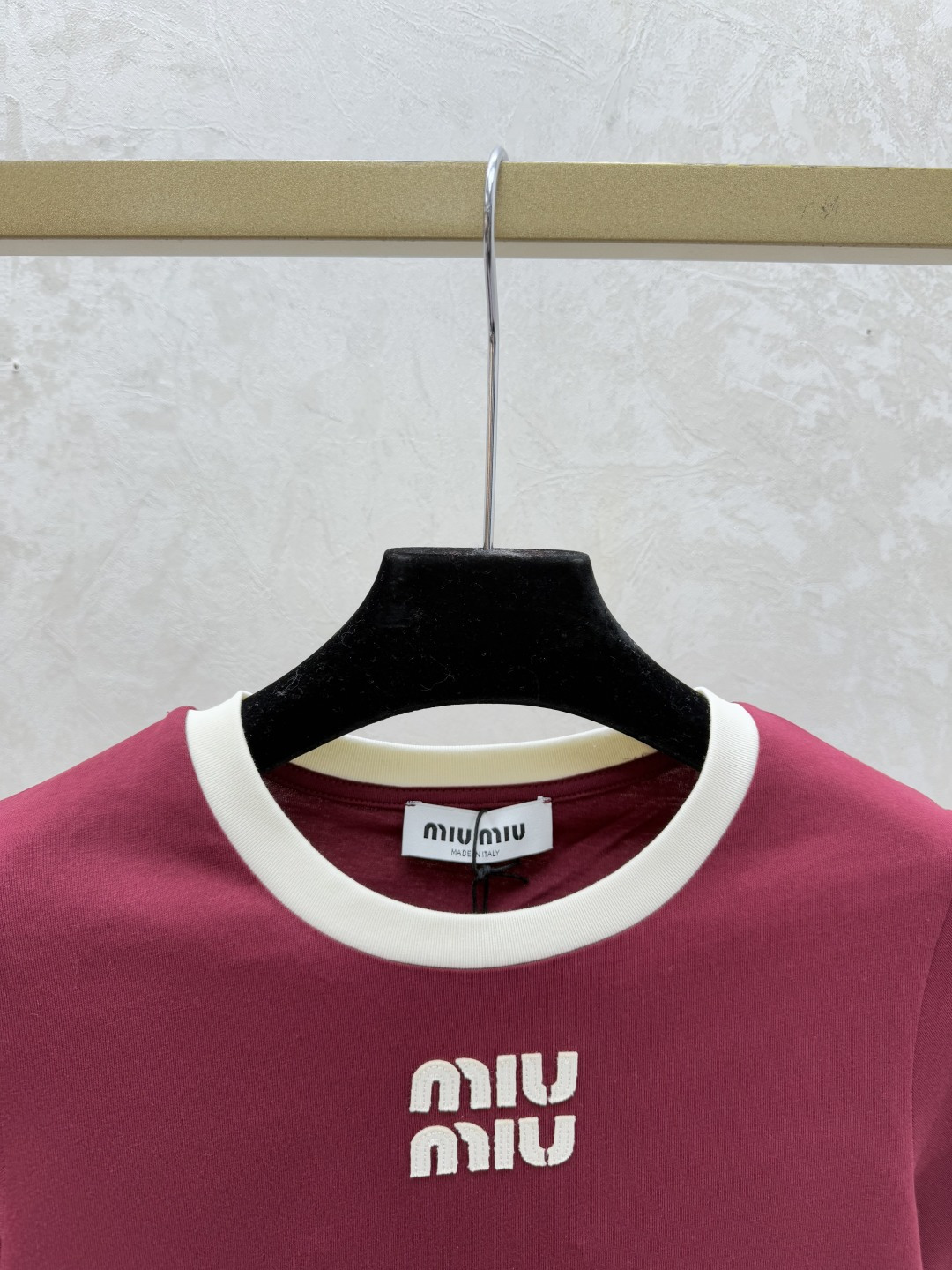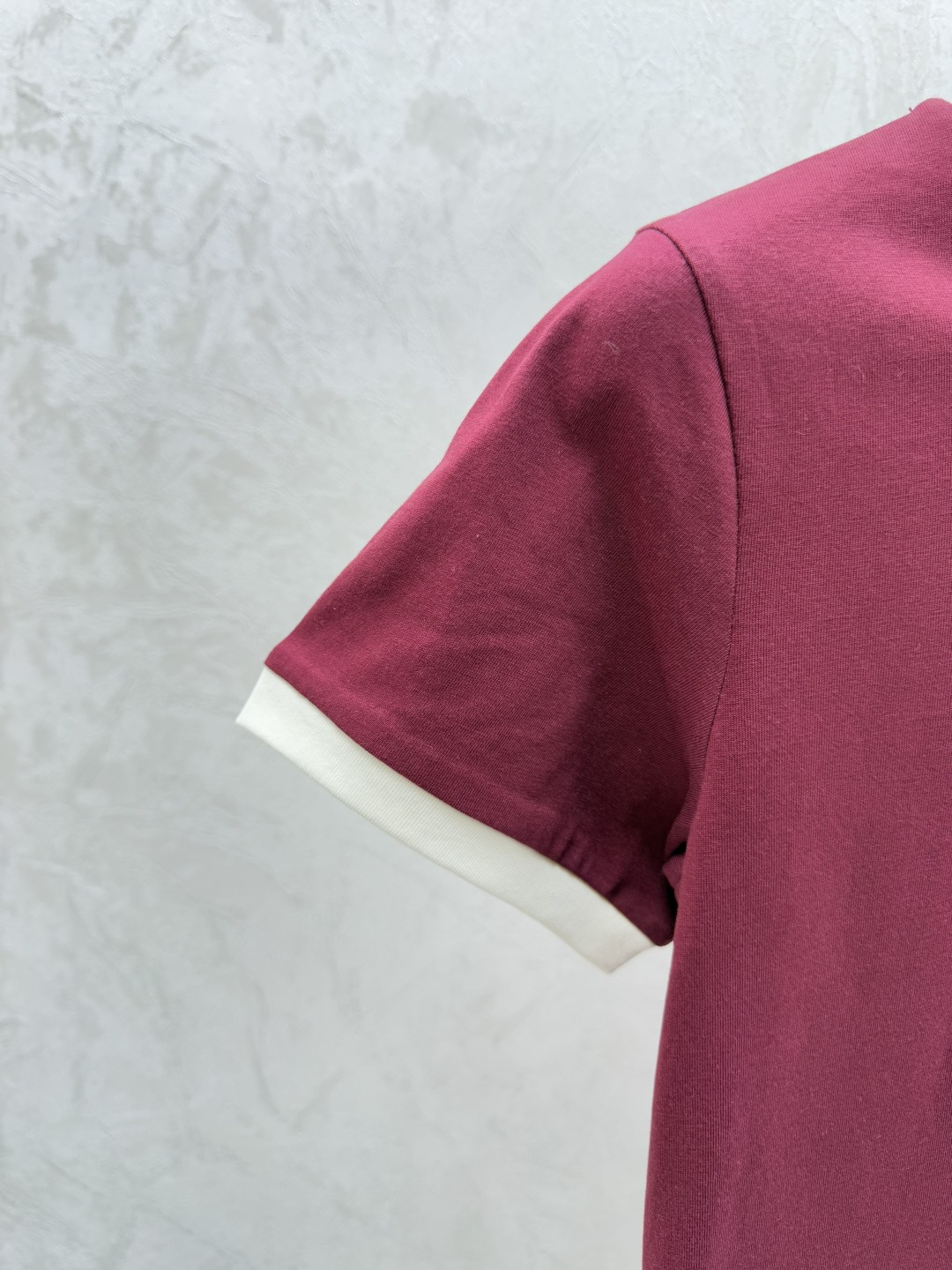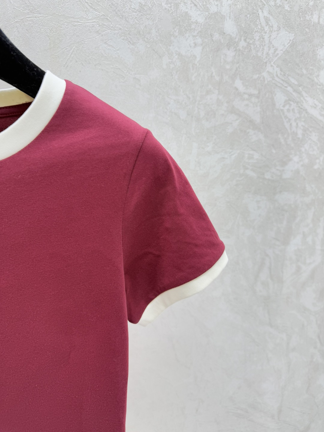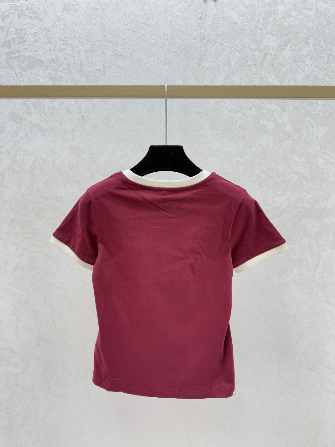 Details: Spring Color-block letter round-neck short-sleeved top in red, available in sizes 36, 38, 40.