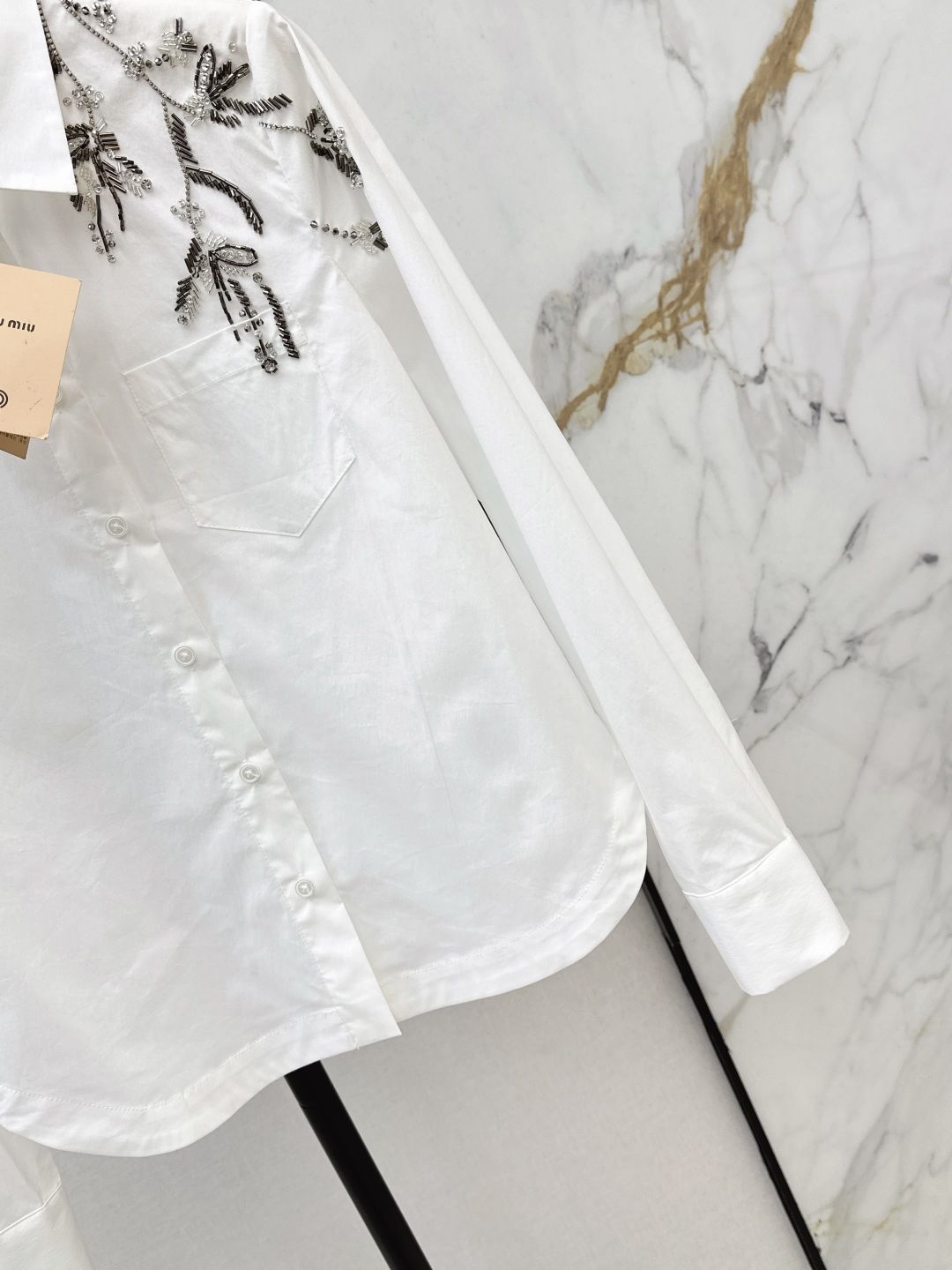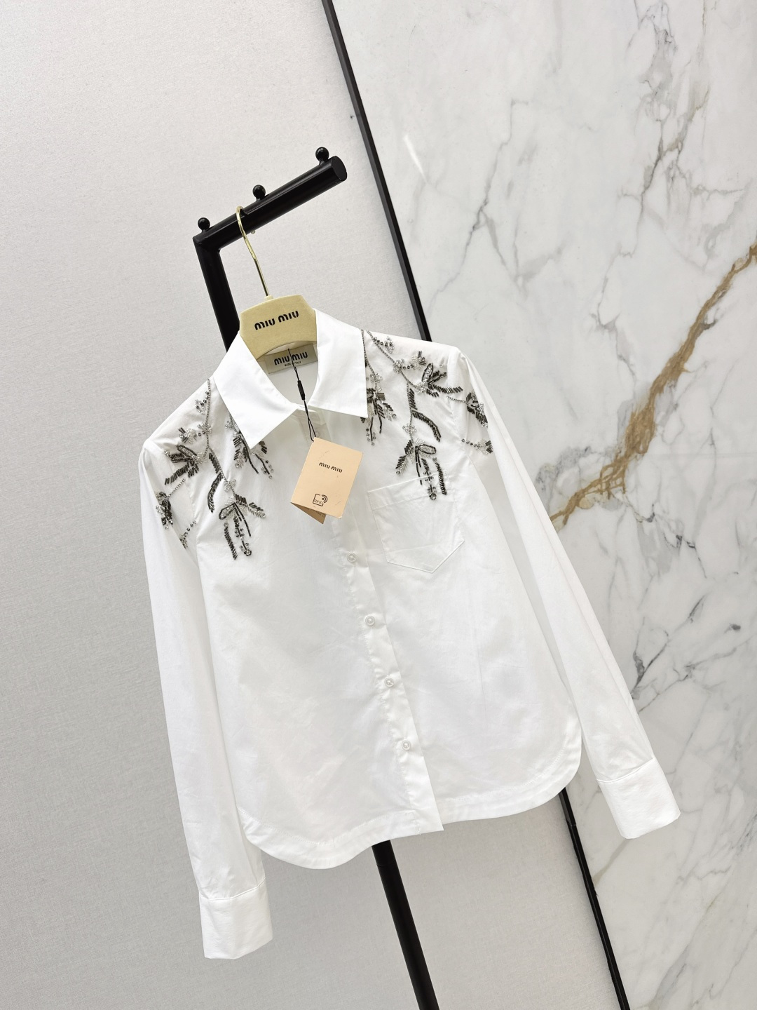 Details: Popular early spring iris beaded shirt, stylish, suitable for work, two colors available