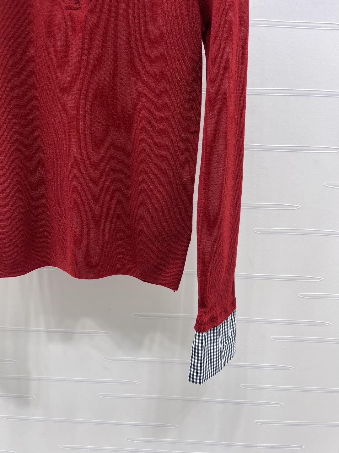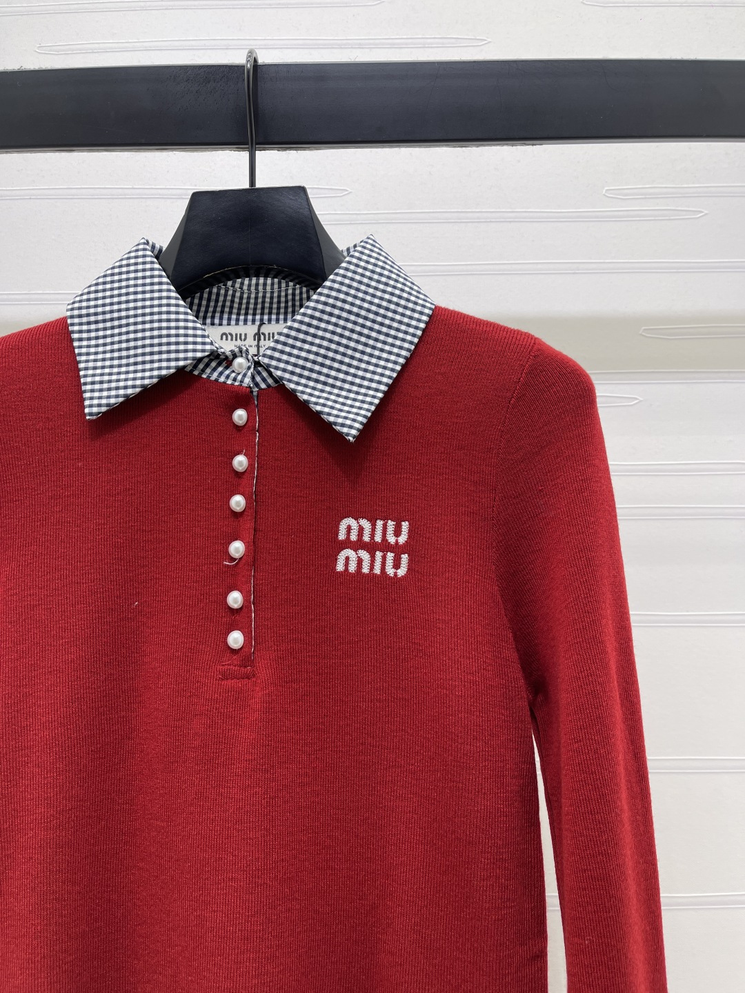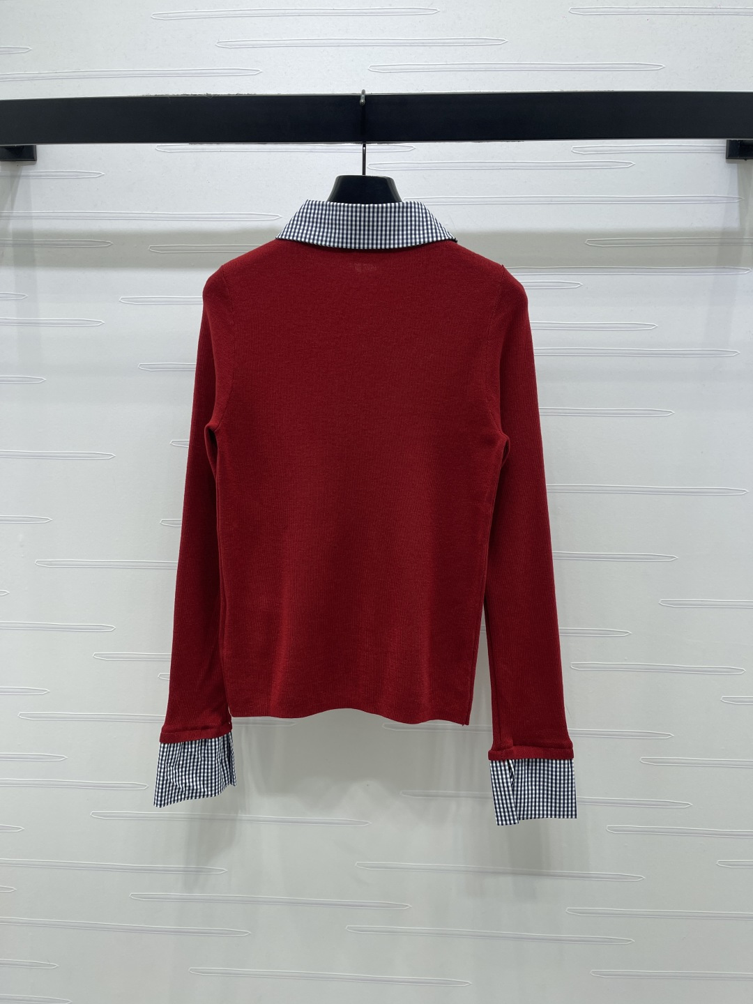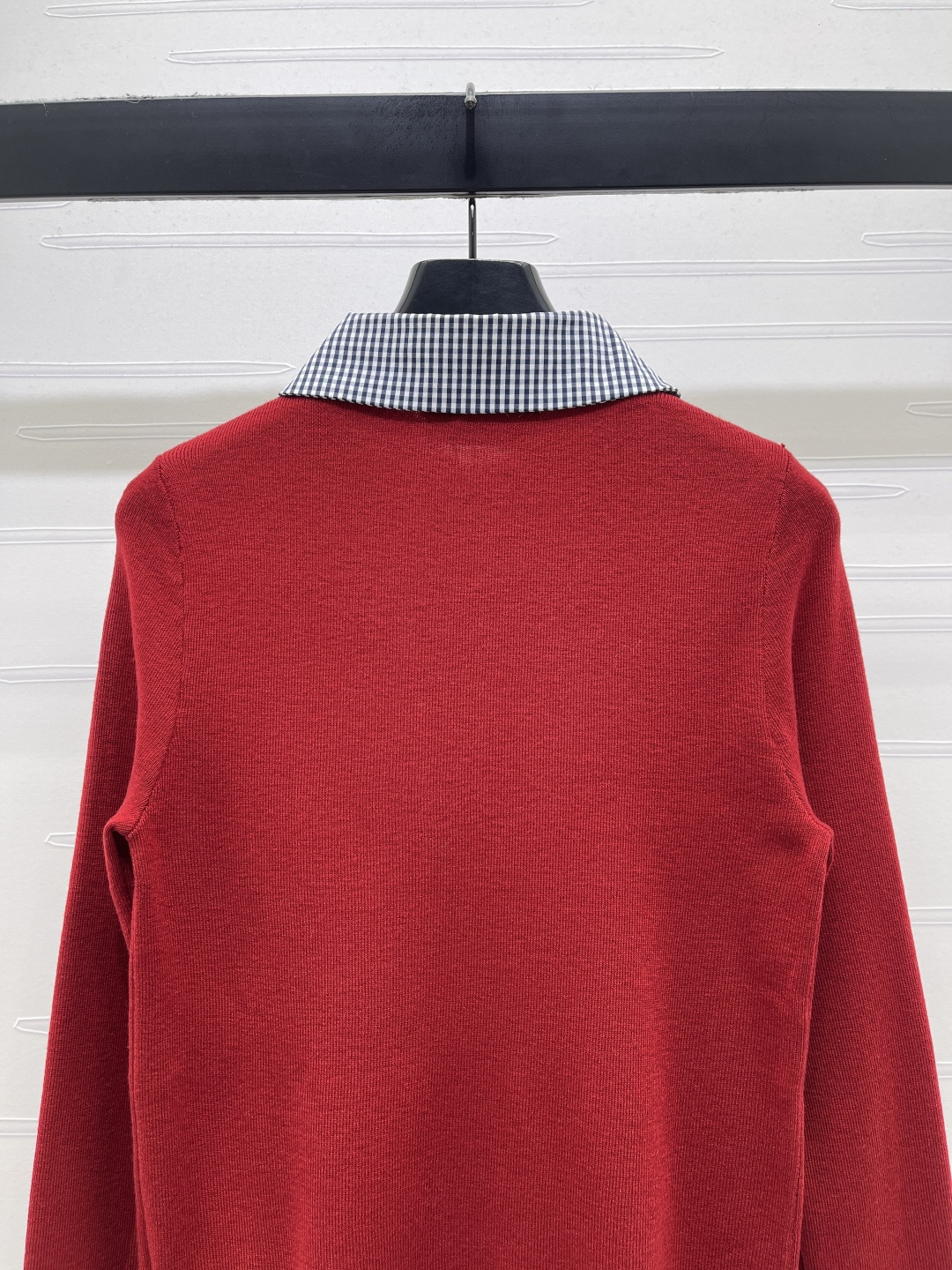 Details: Spring knitted long-sleeved top with pearl buttons and brand embroidery, available in 3 colors, high-end custom, fine workmanship