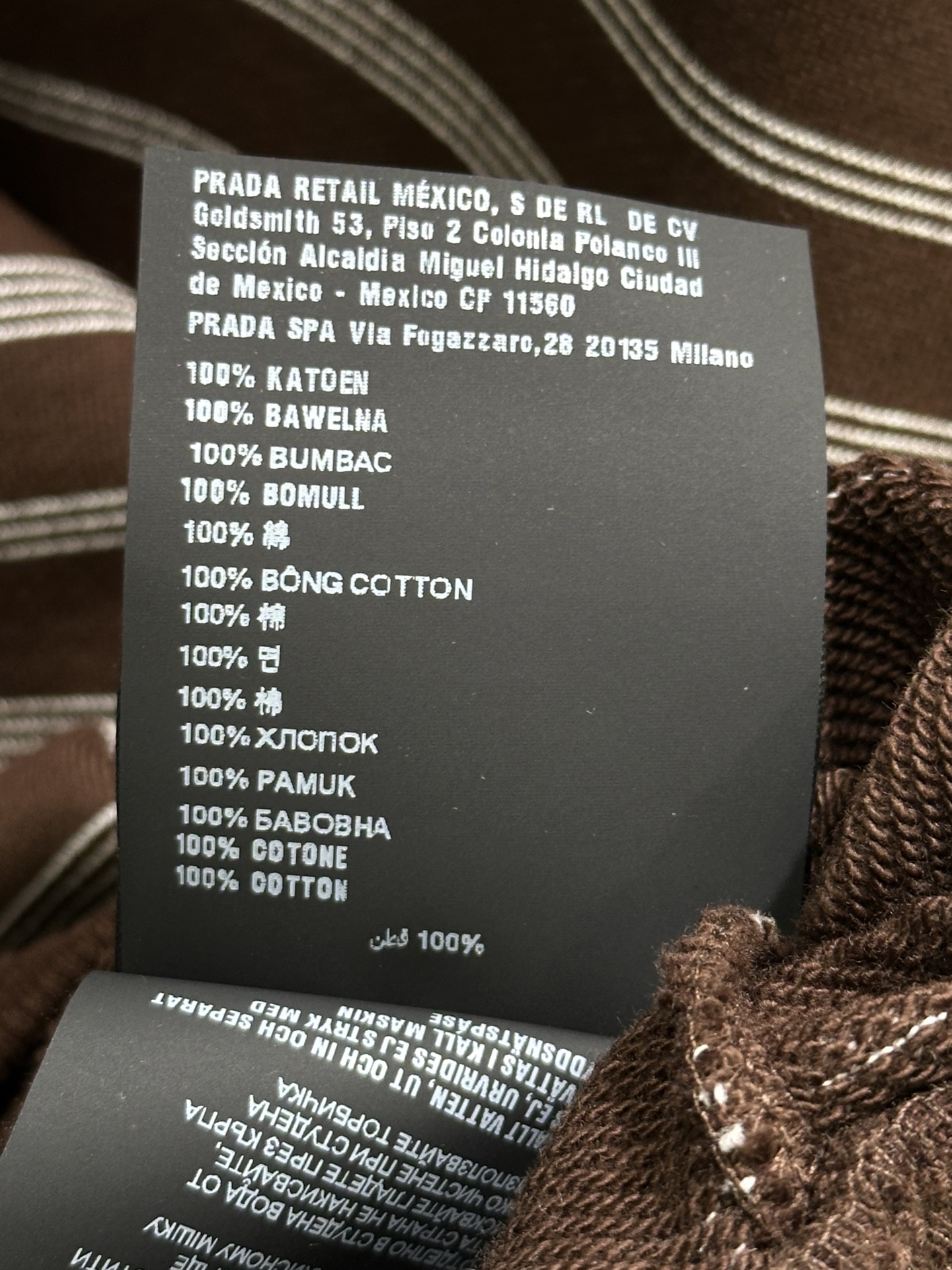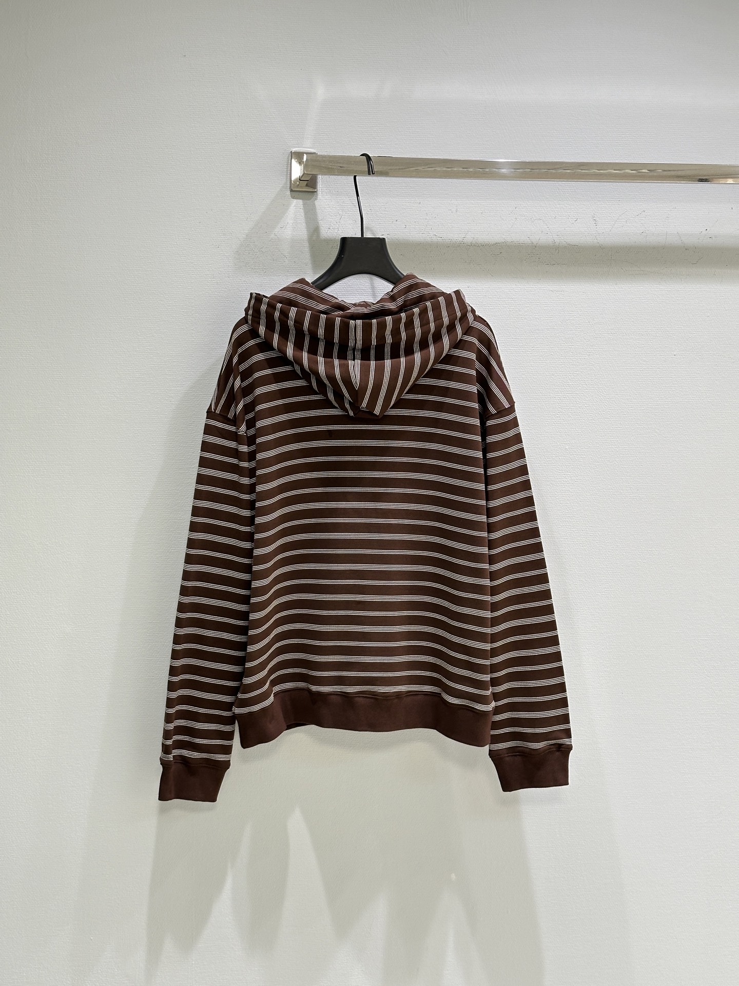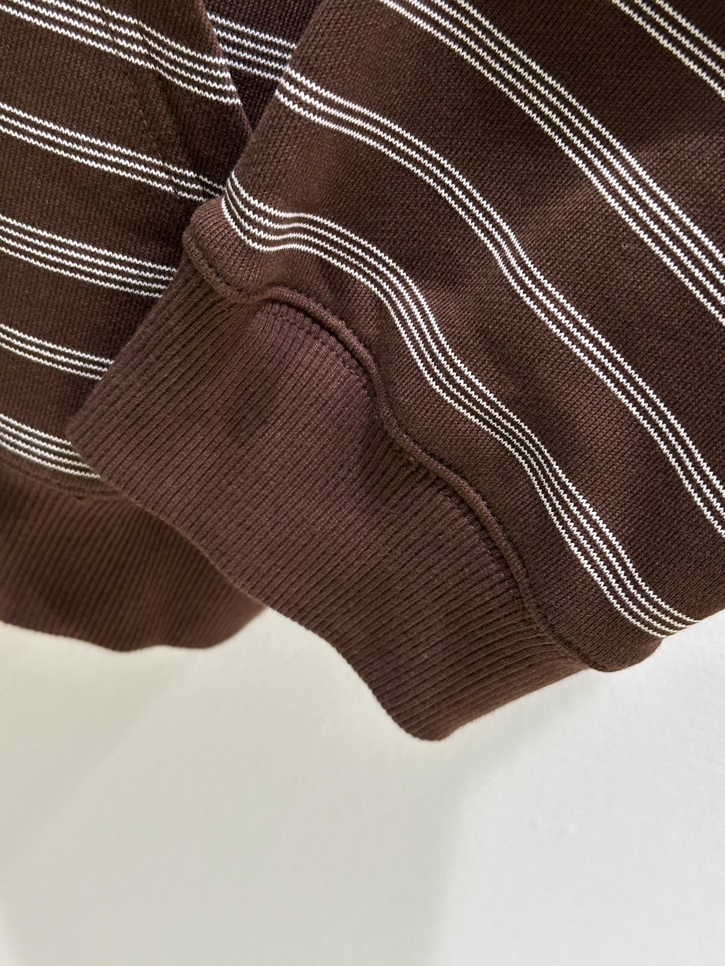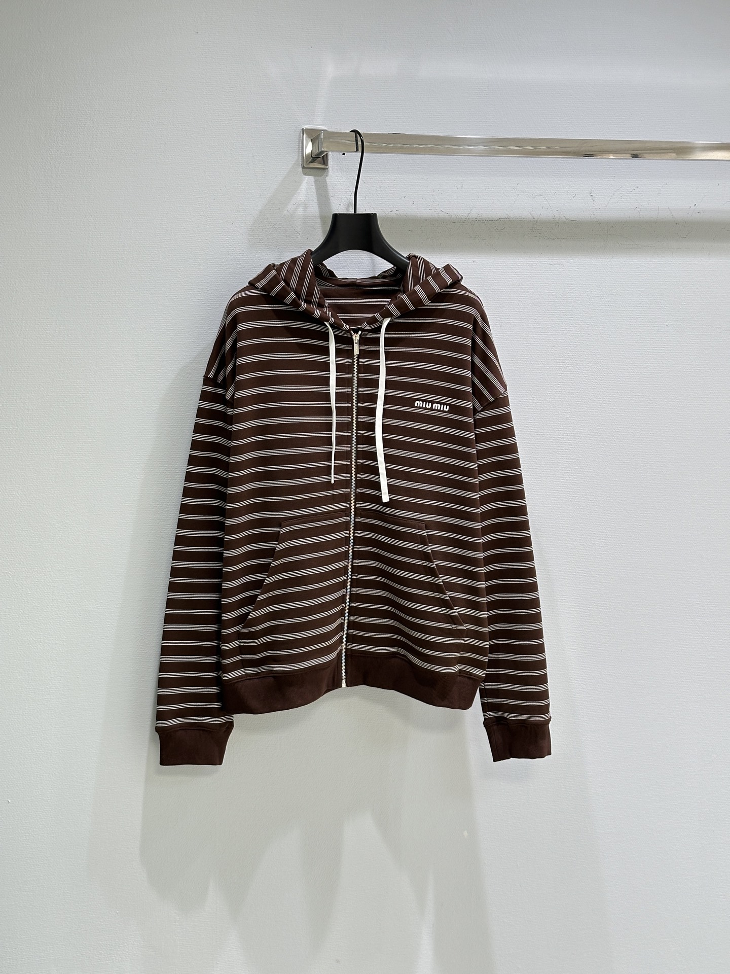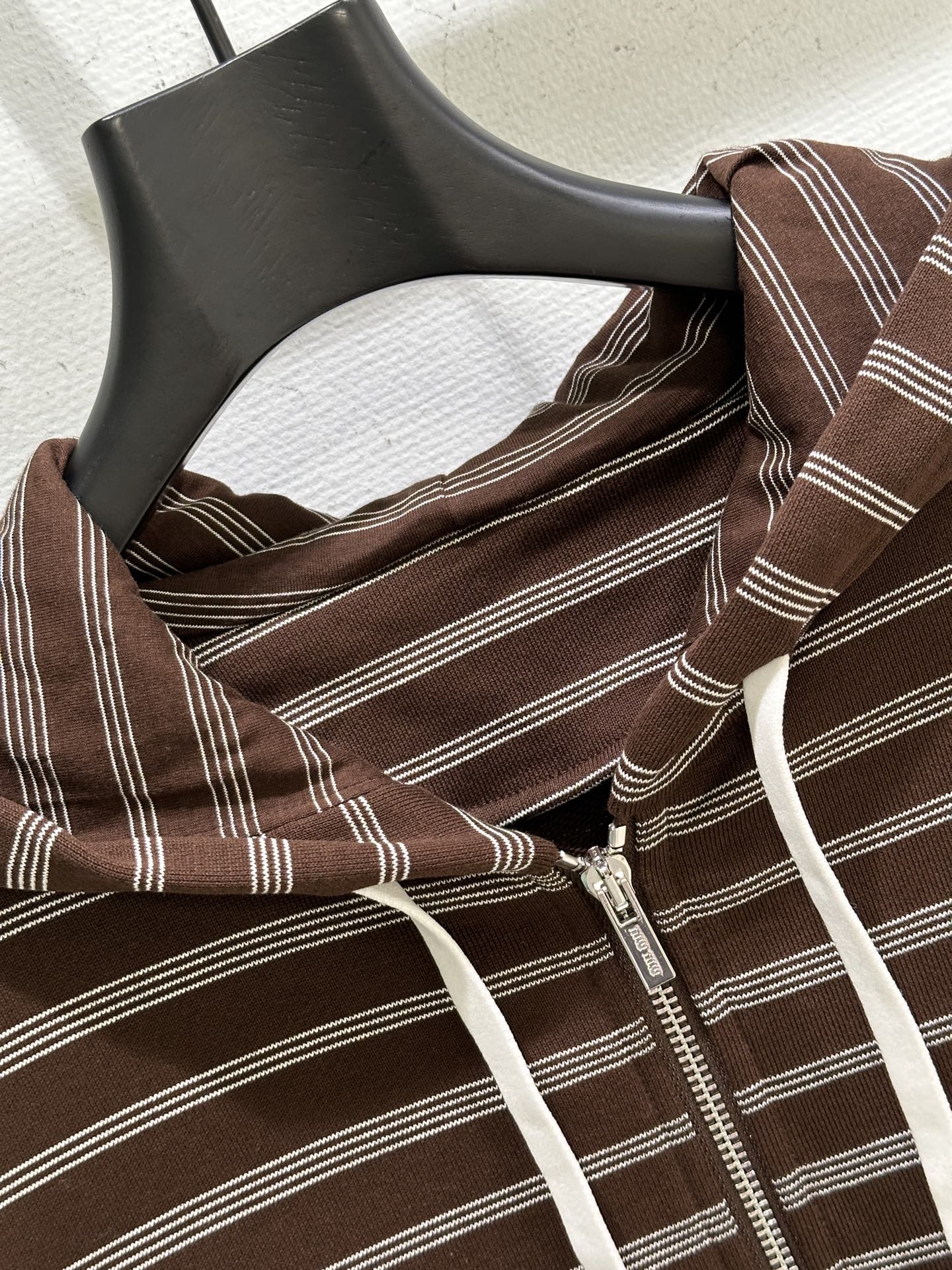 Details: Early autumn Cotton fleece zip-up hoodie with classic knit stripes and embroidered logo, available in brown.