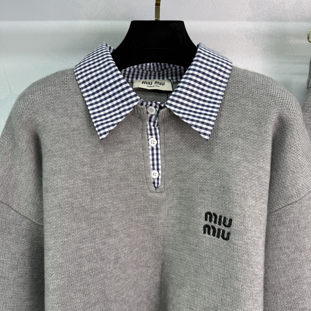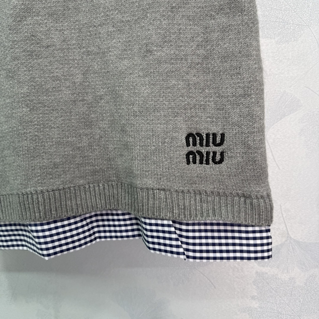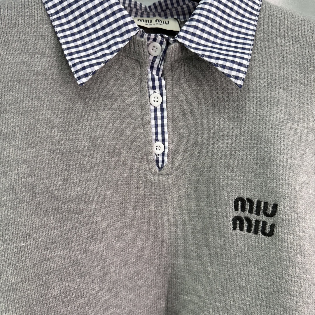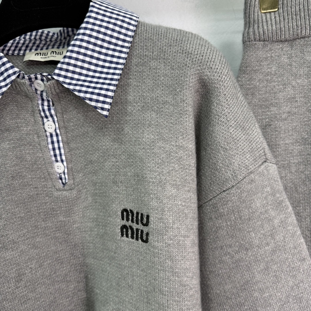 Details: Early autumn fake two-piece set, polo collar top with checkered skirt, exquisite embroidery, versatile and stylish.