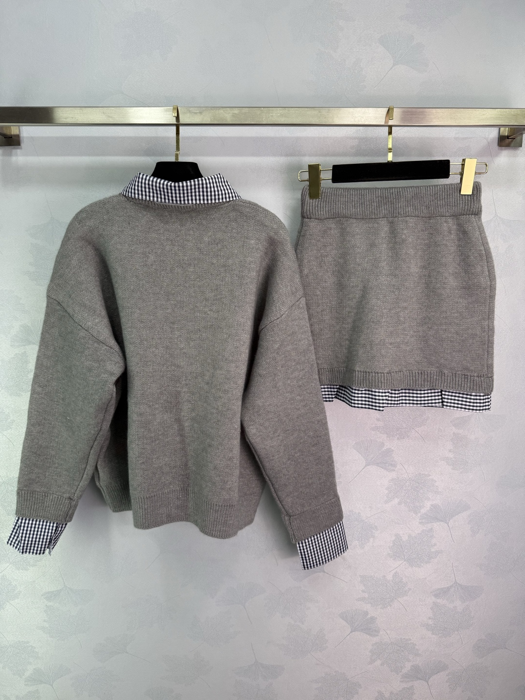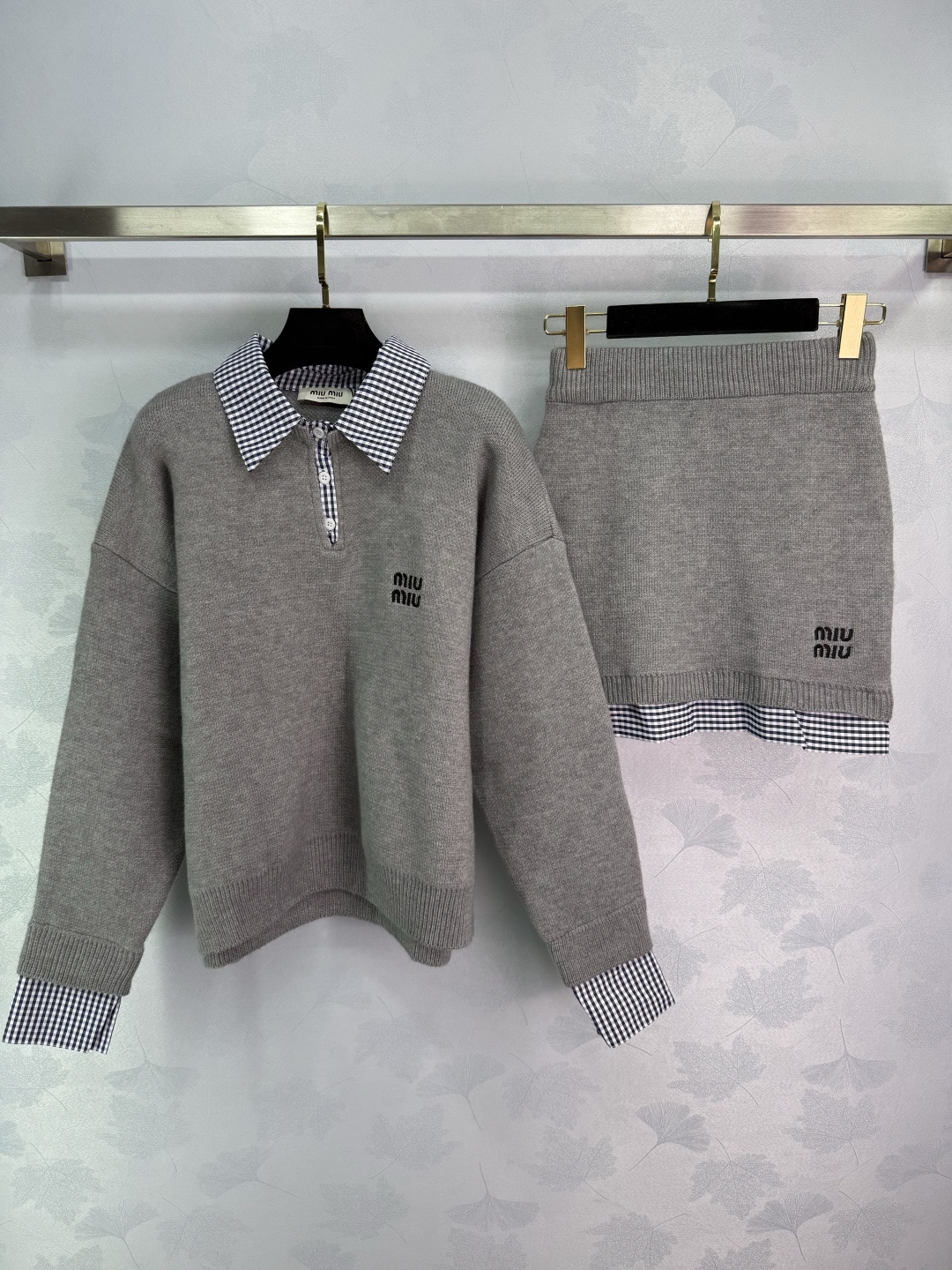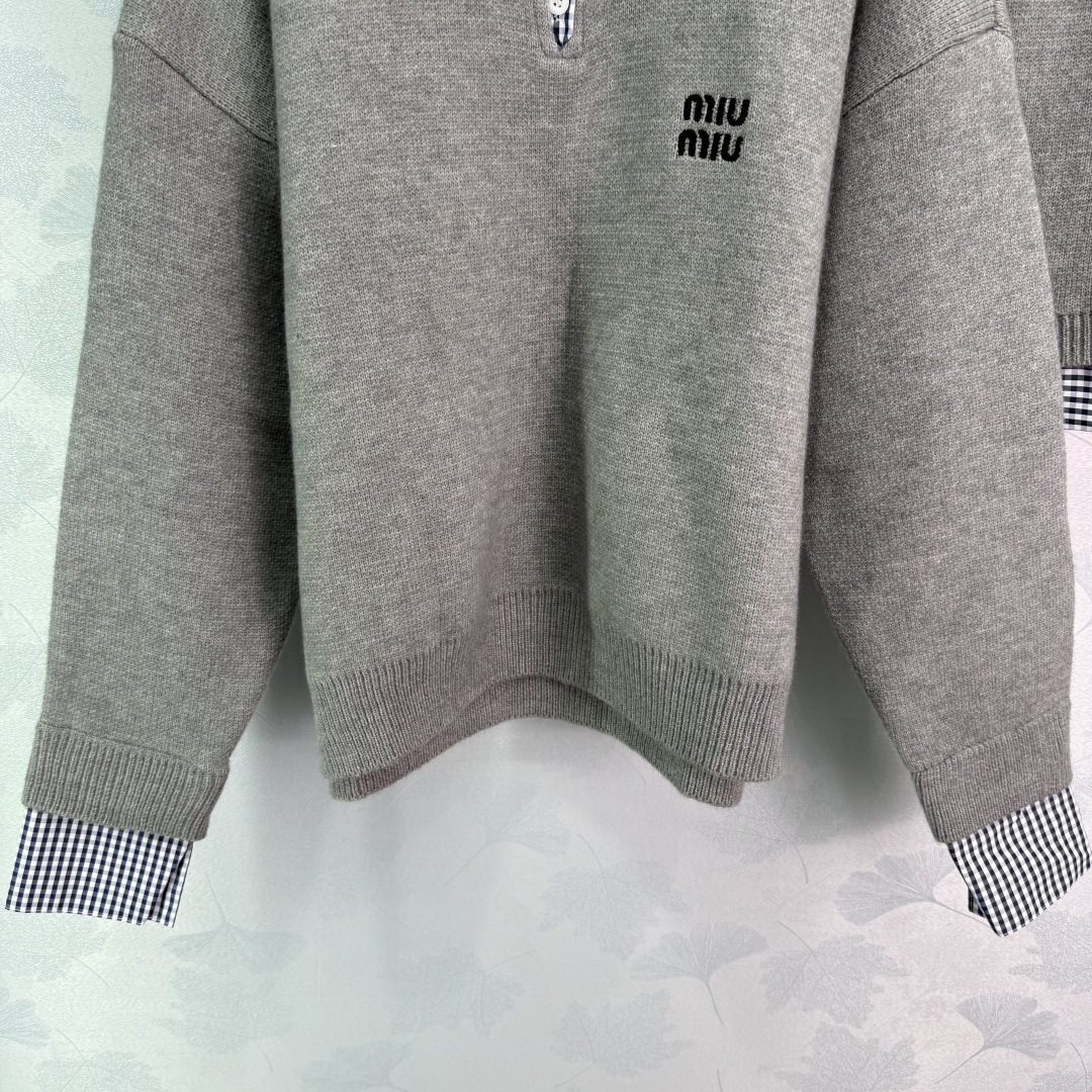Details: Early autumn fake two-piece set, polo collar top with checkered skirt, exquisite embroidery, versatile and stylish.