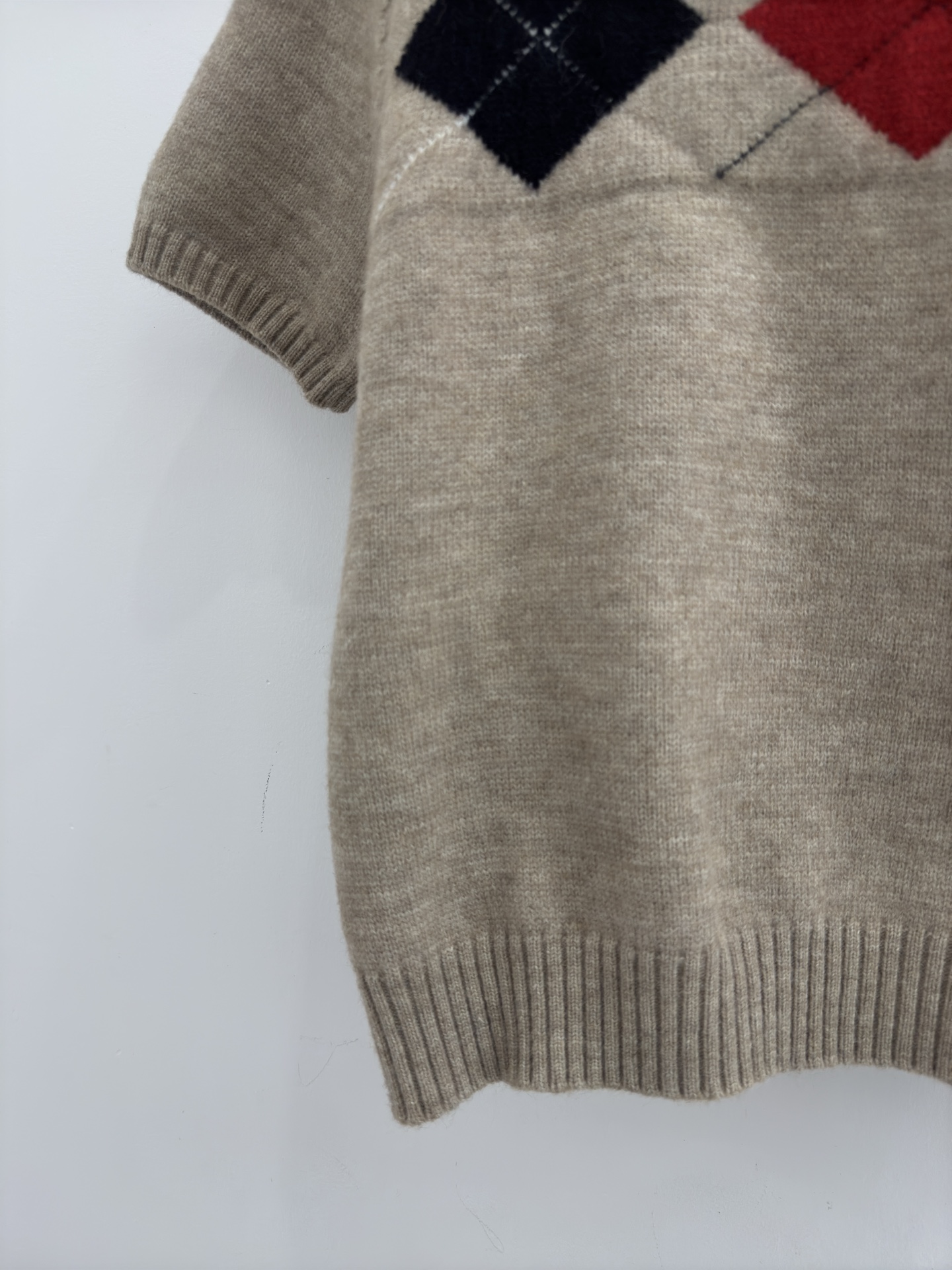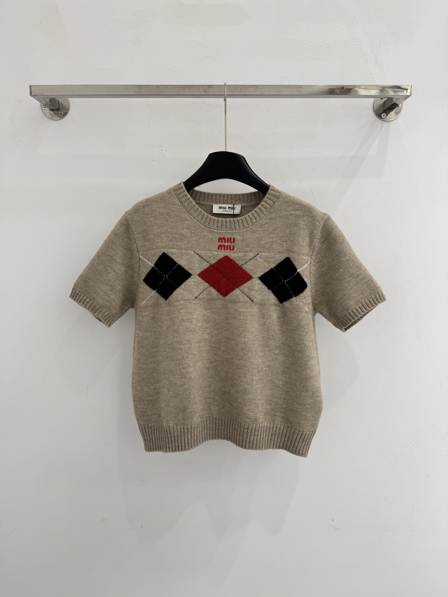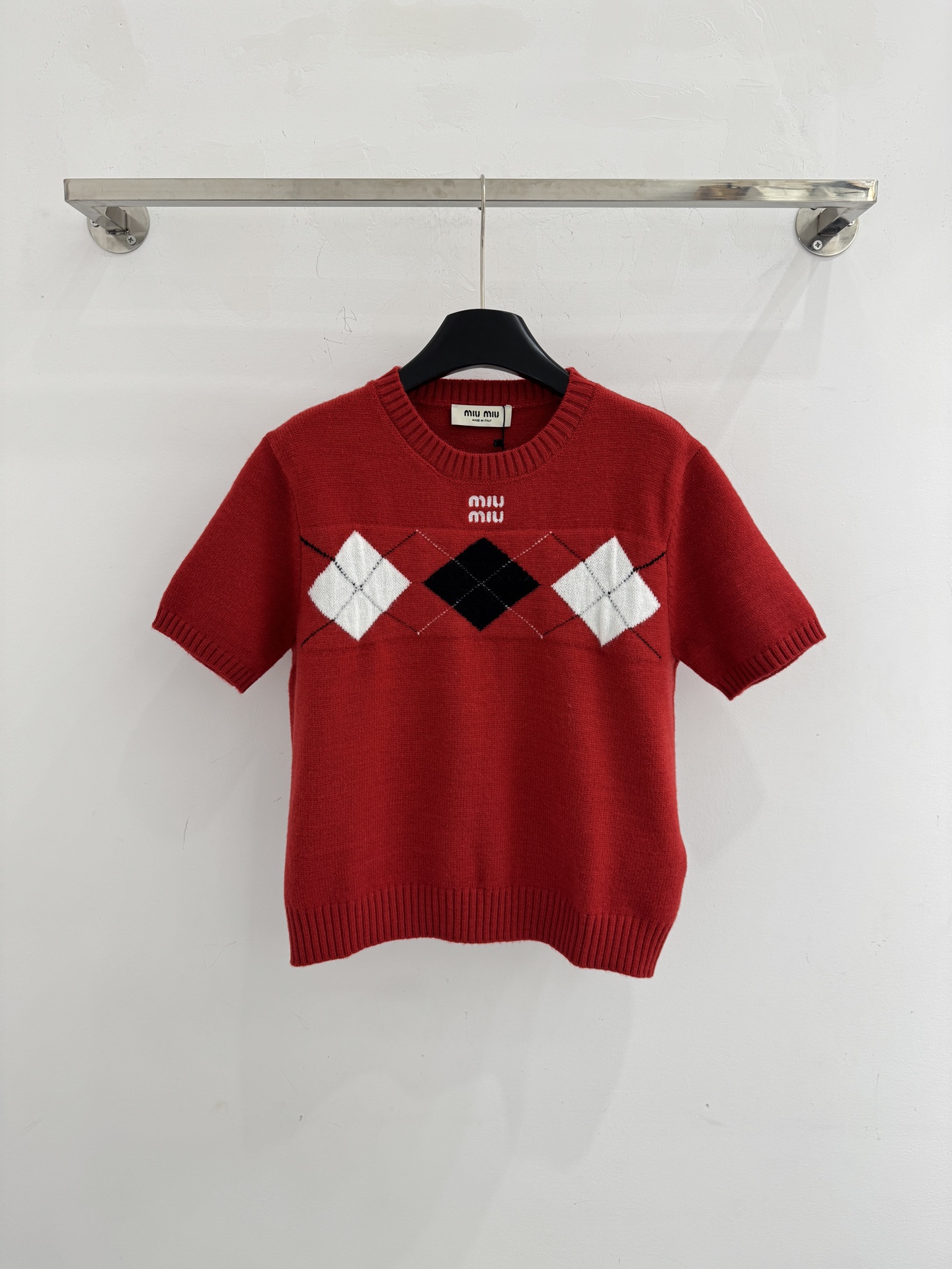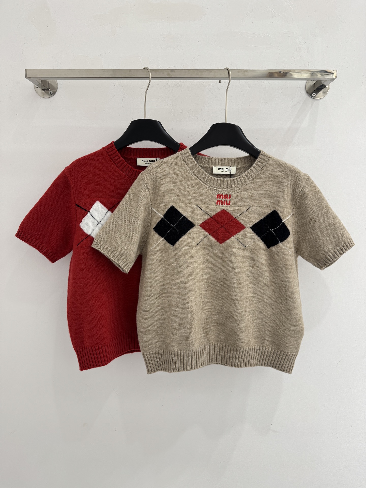 Details: Spring - Summer rhombus knitted short - sleeve, loose, colorful, and comfortable.