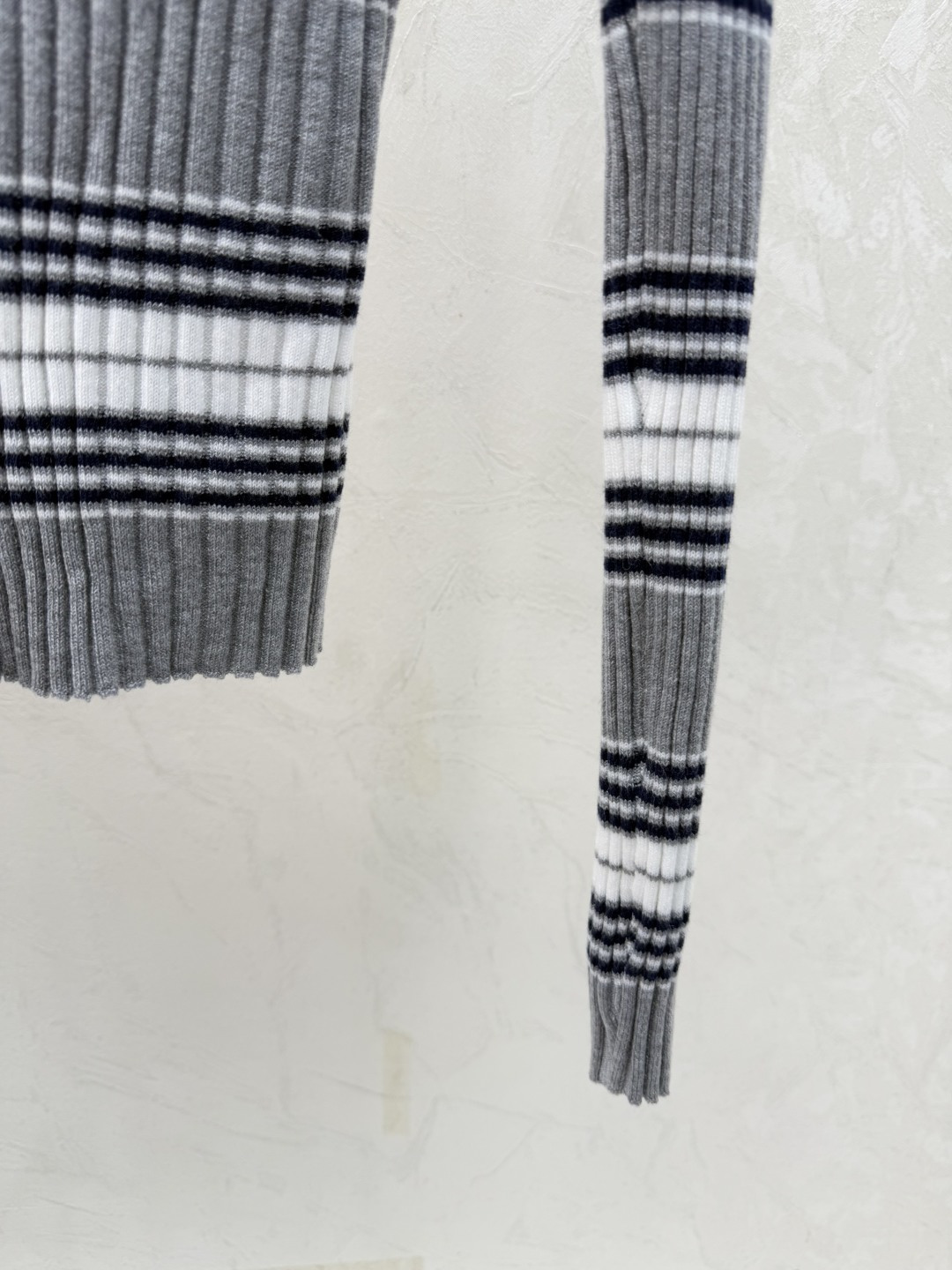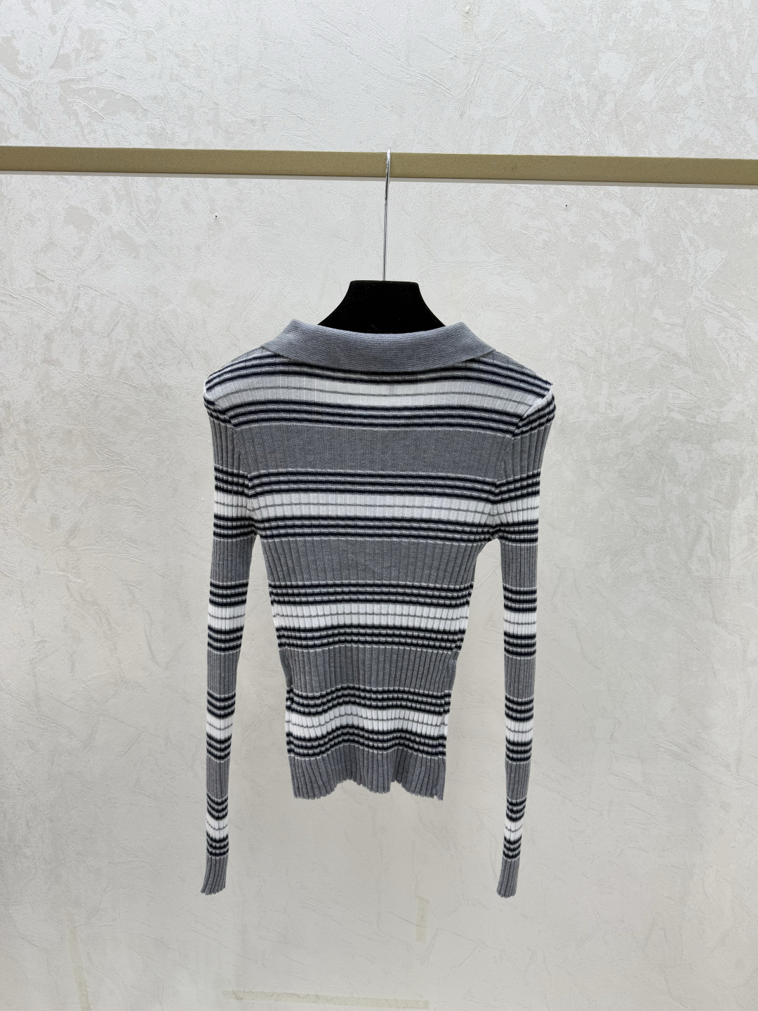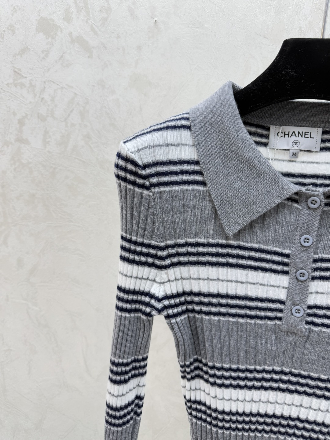 Details: Early autumn striped turnover-neck knitted long-sleeved tops in grey, sizes 36-40. High-end custom, fine workmanship
