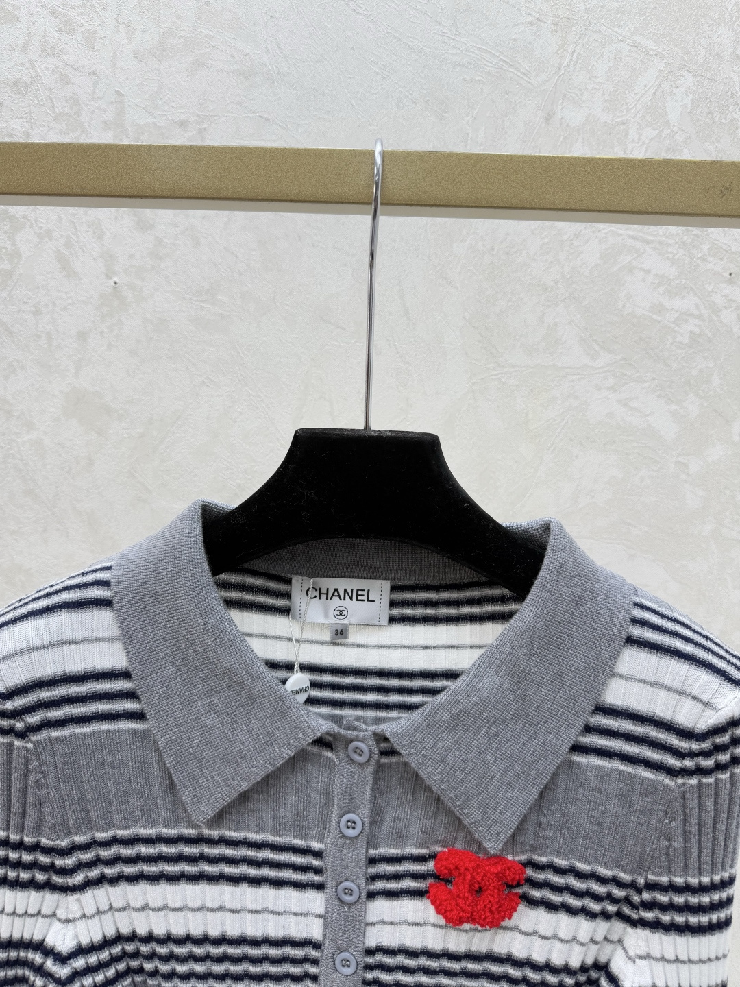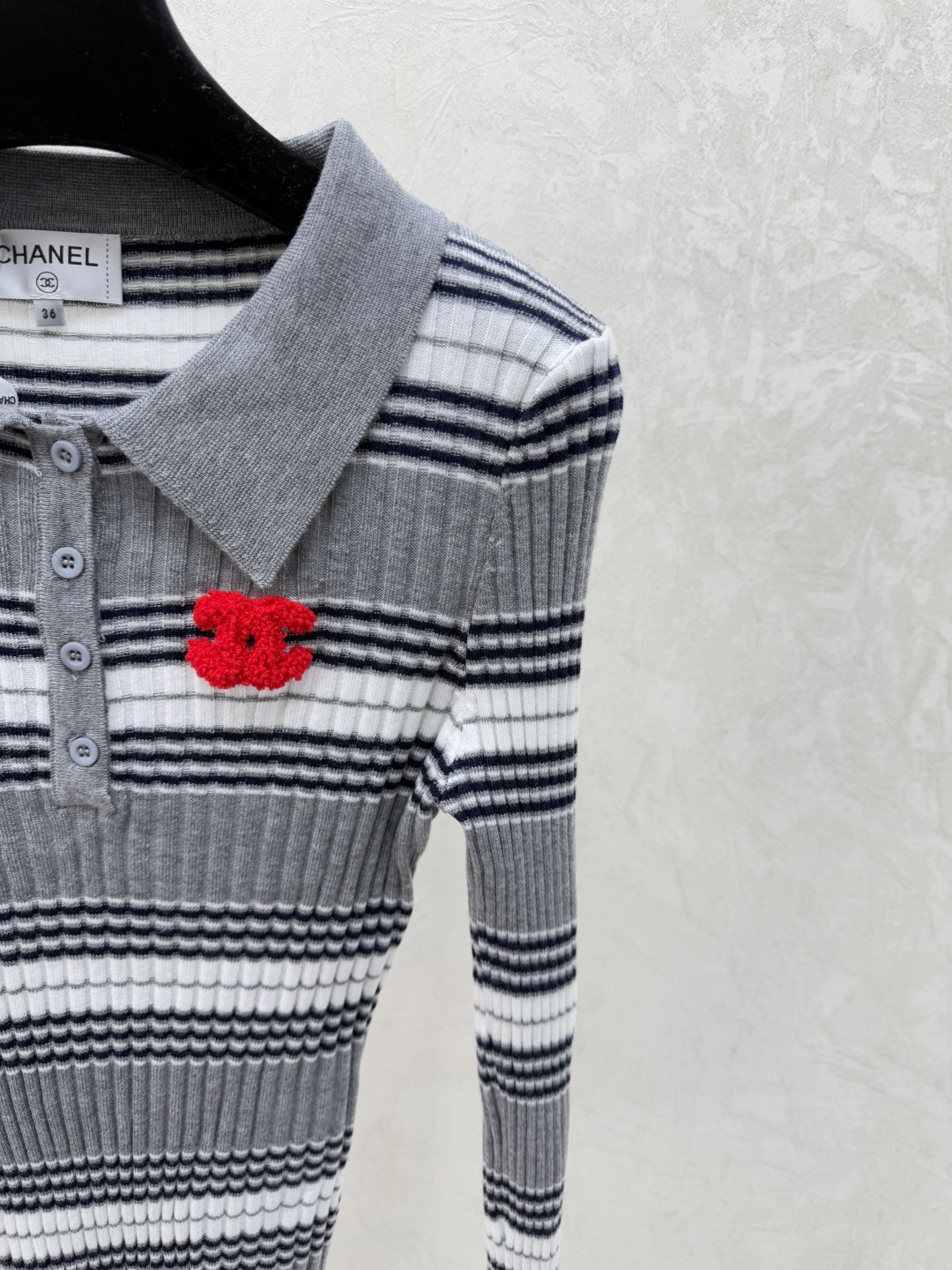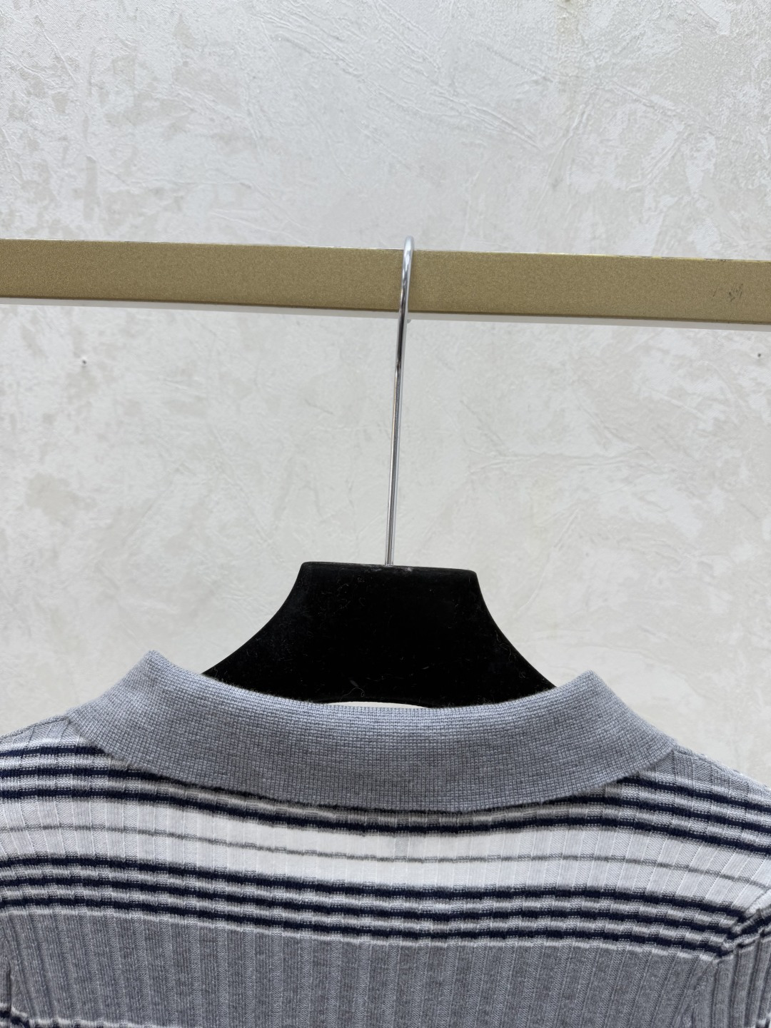 Details: Early autumn striped turnover-neck knitted long-sleeved tops in grey, sizes 36-40. High-end custom, fine workmanship