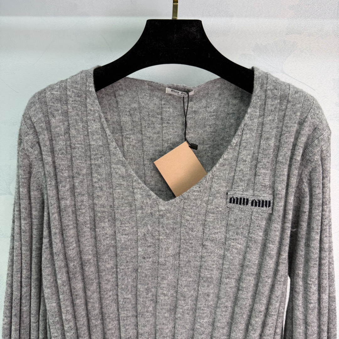 Details: Early spring new V-neck cashmere sweater, made of high-quality cashmere, soft, skin-friendly, warm, slim-fit, with embroidery, in versatile gray.