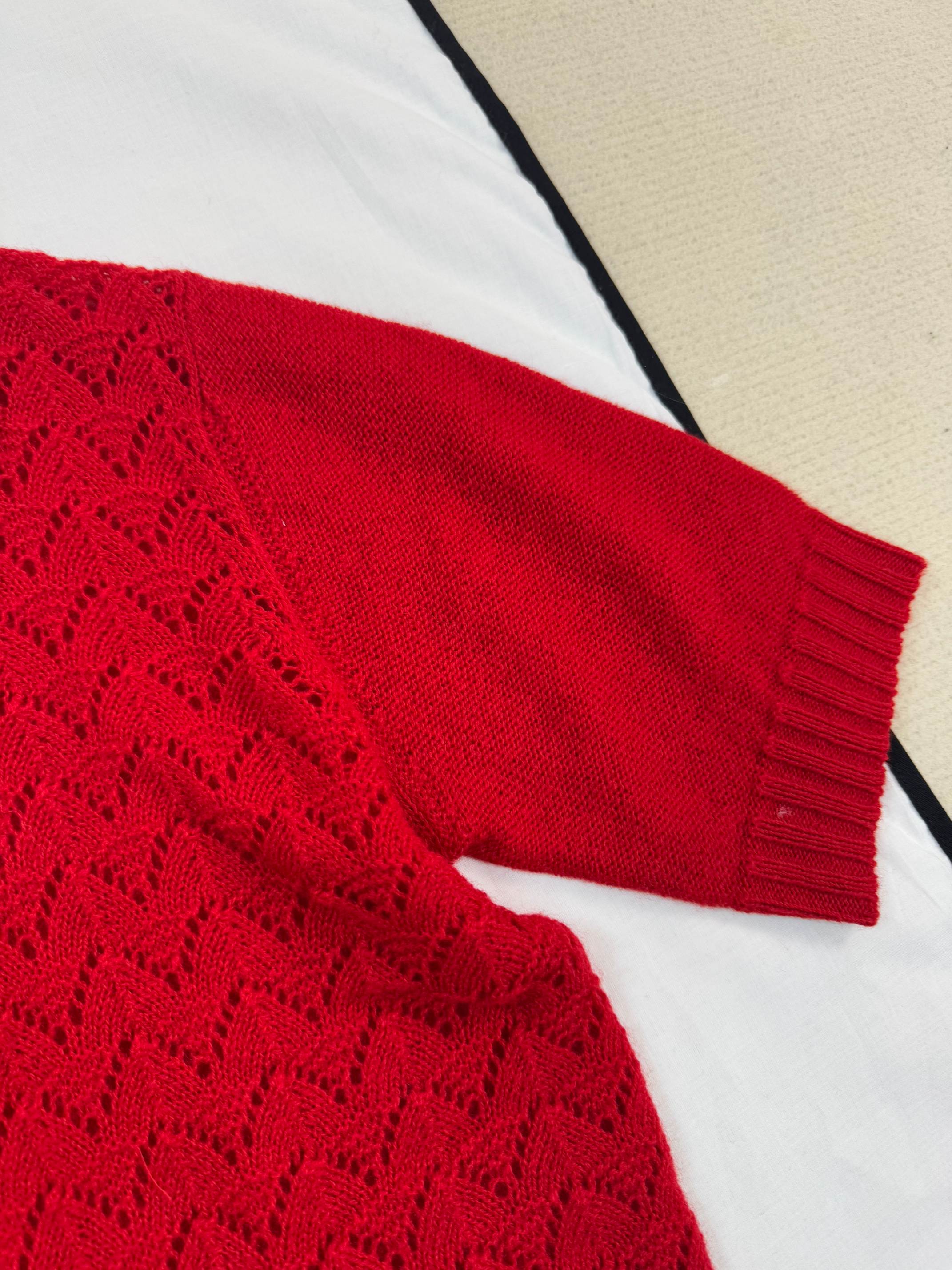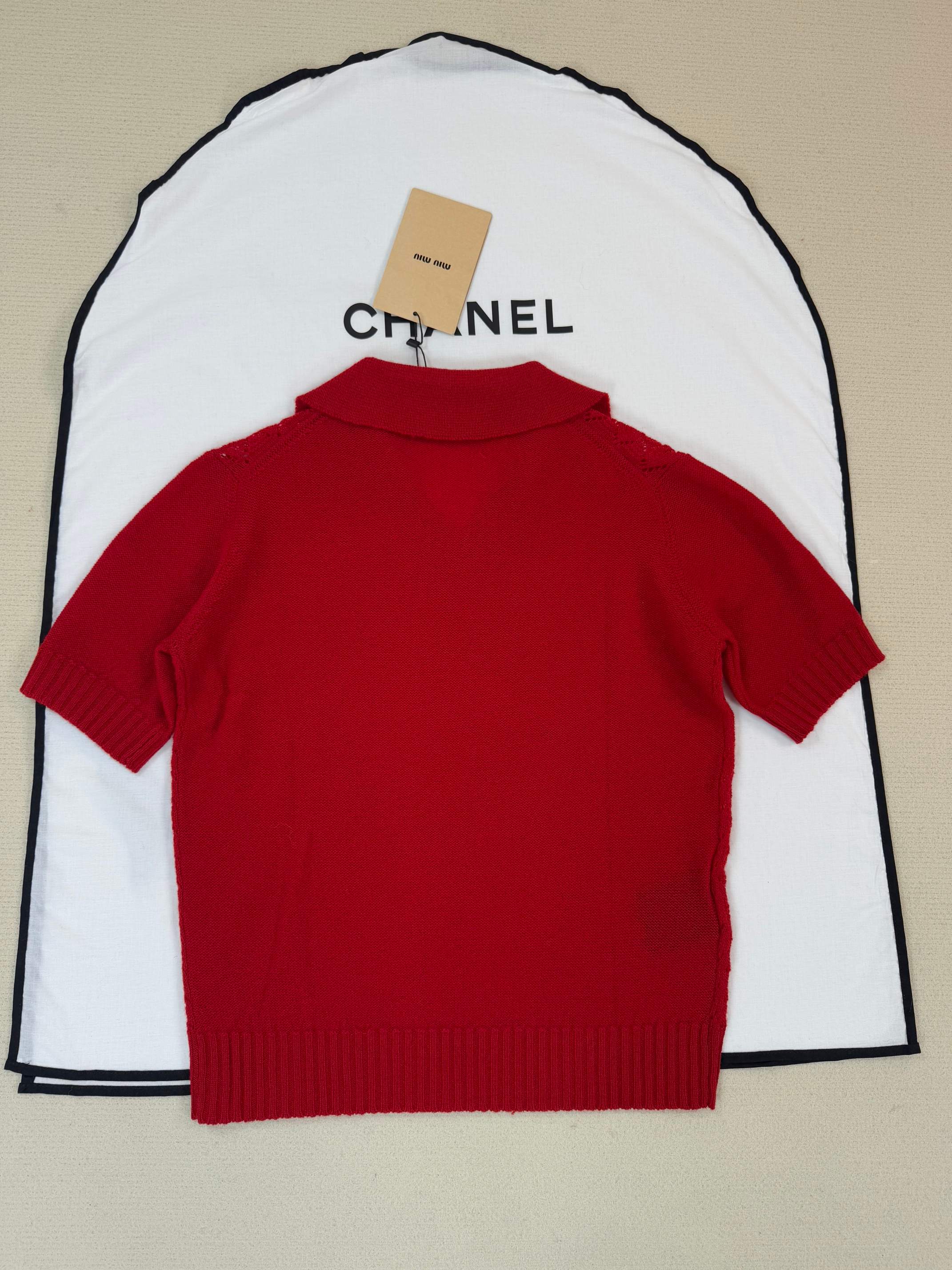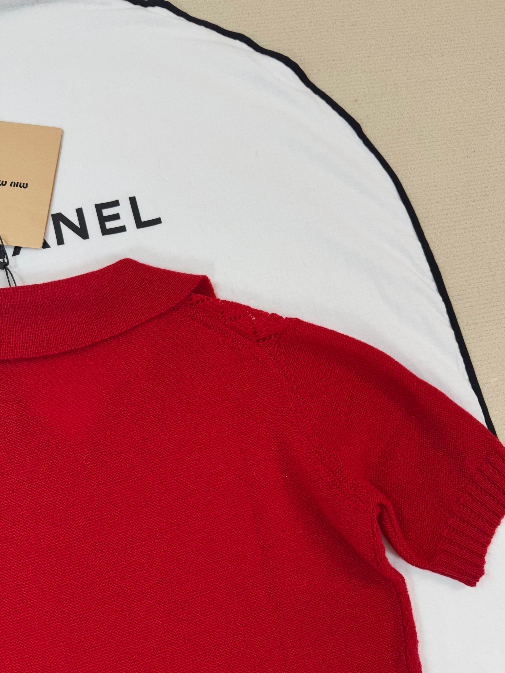 Details: Knit short-sleeved top available in S, M, L sizes.