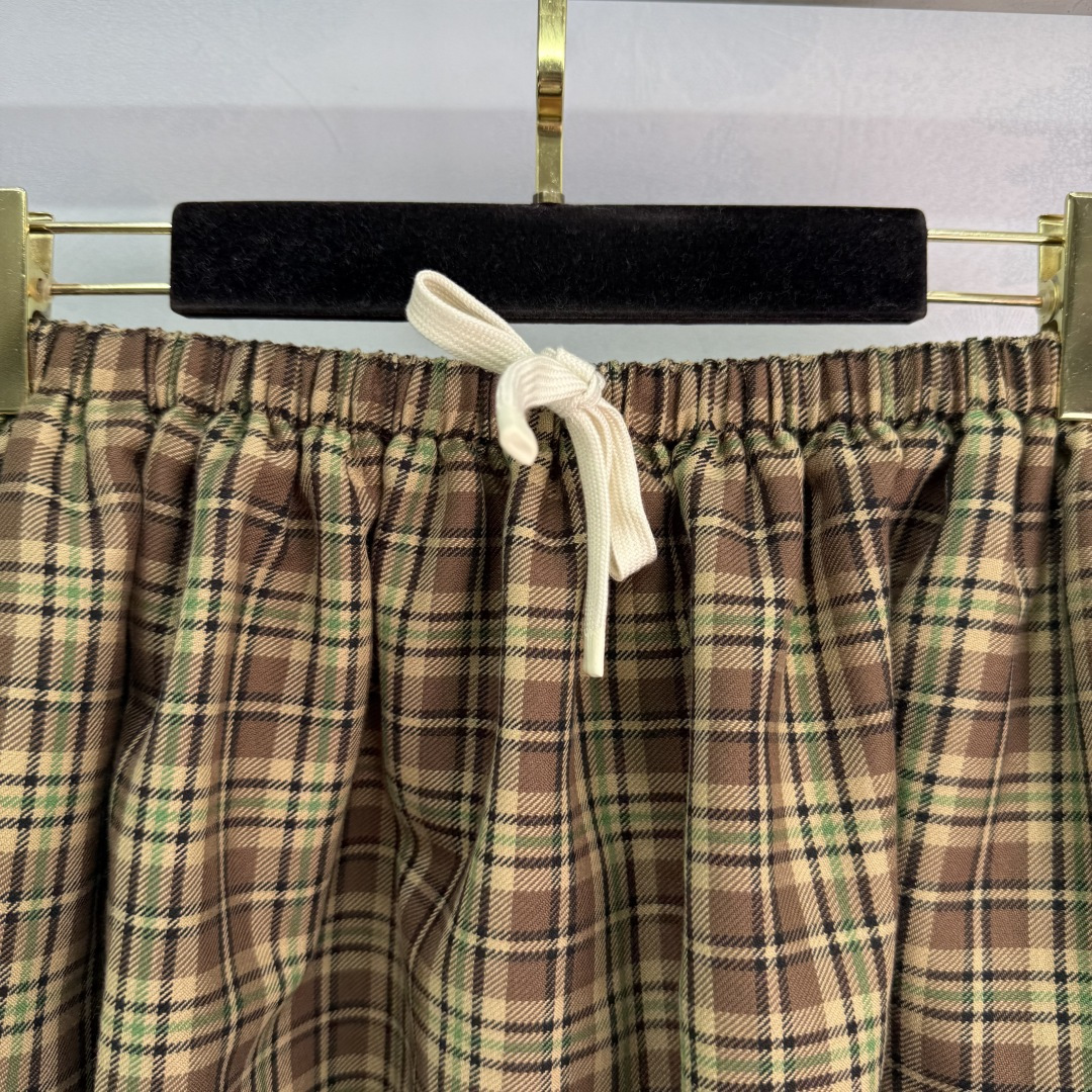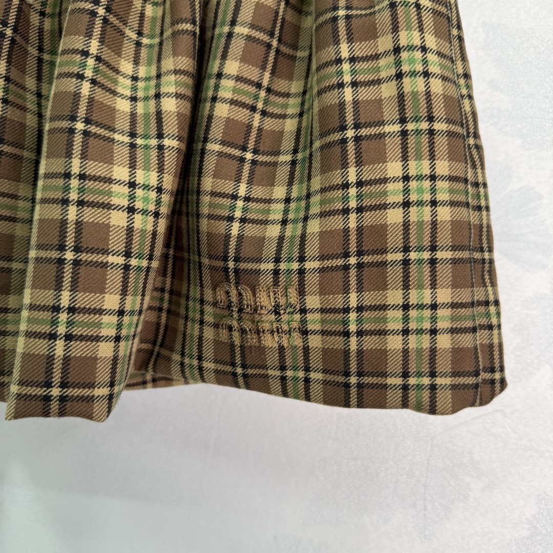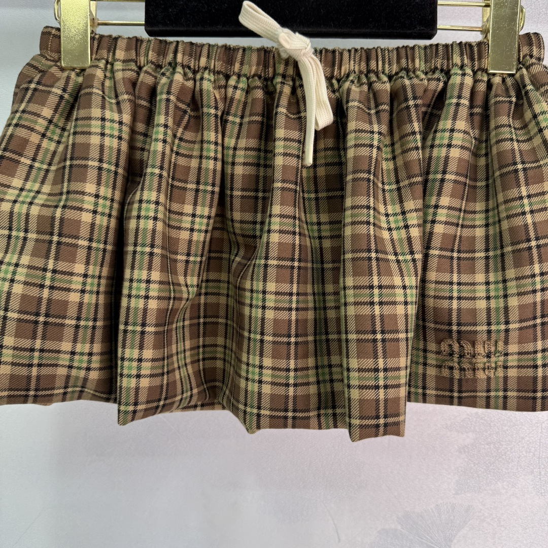 Details: England college style puff skirt, custom imported wool plaid fabric, double-layer design, elastic waist, embroidered logo, sweet and salty.