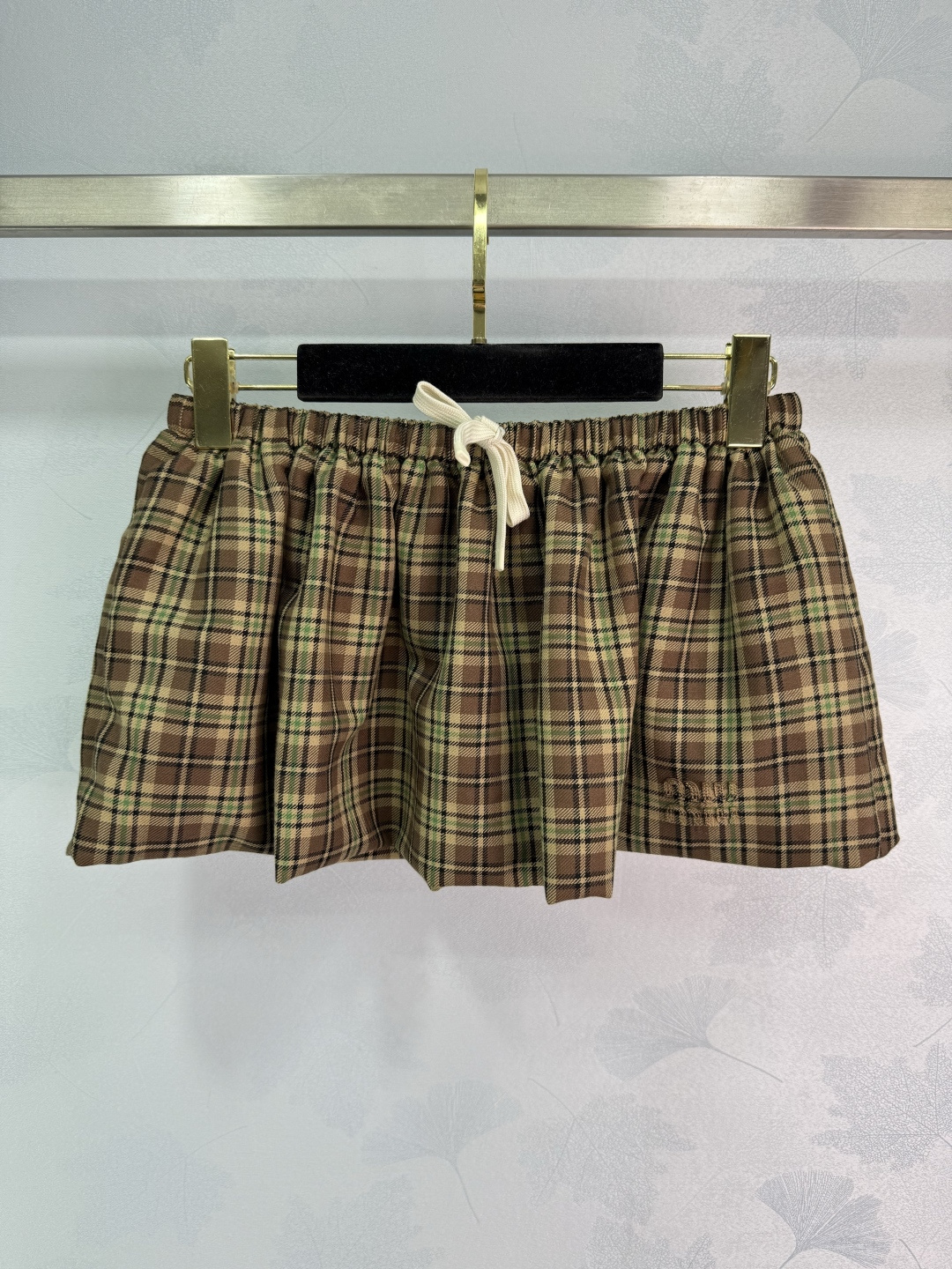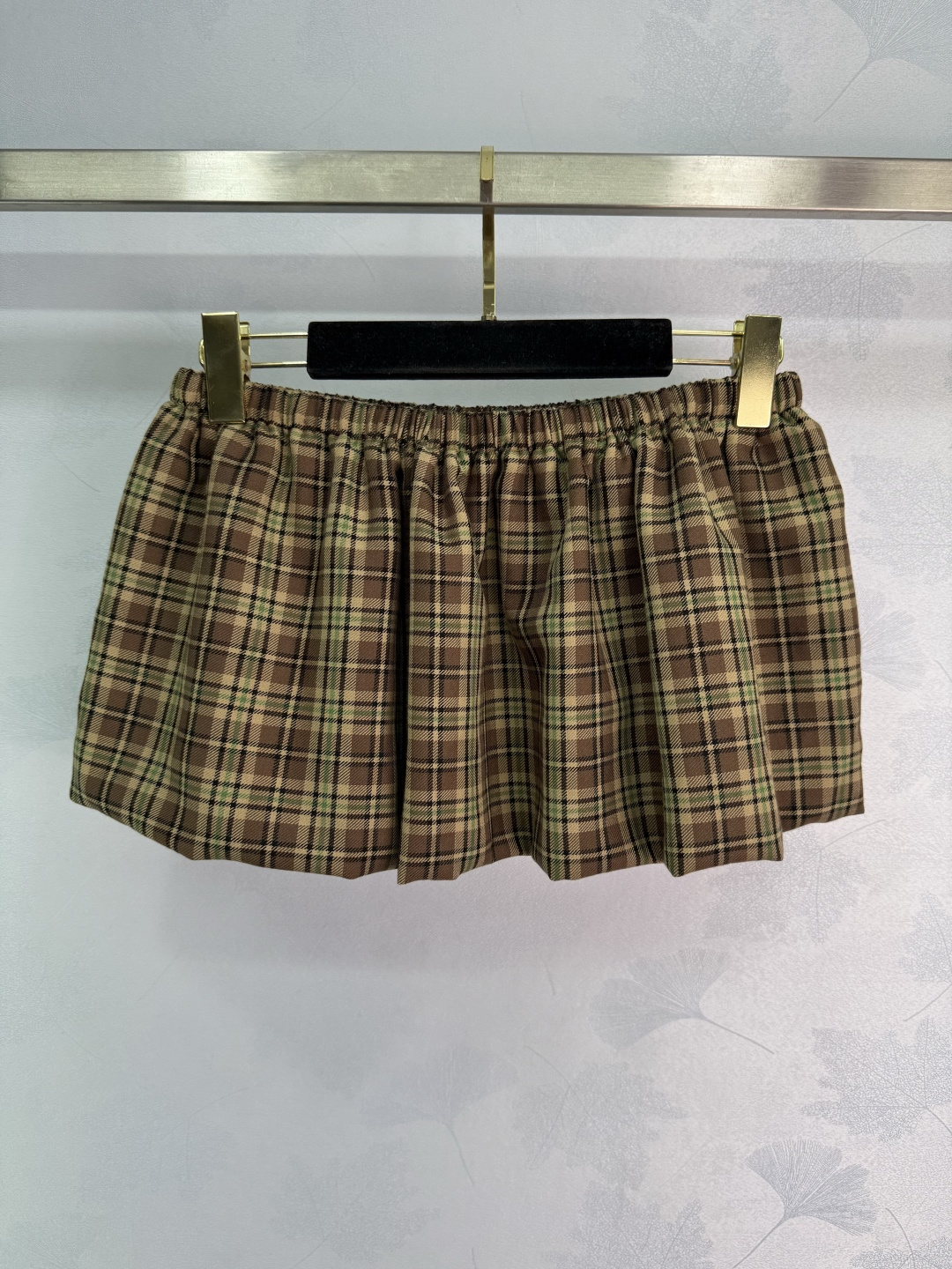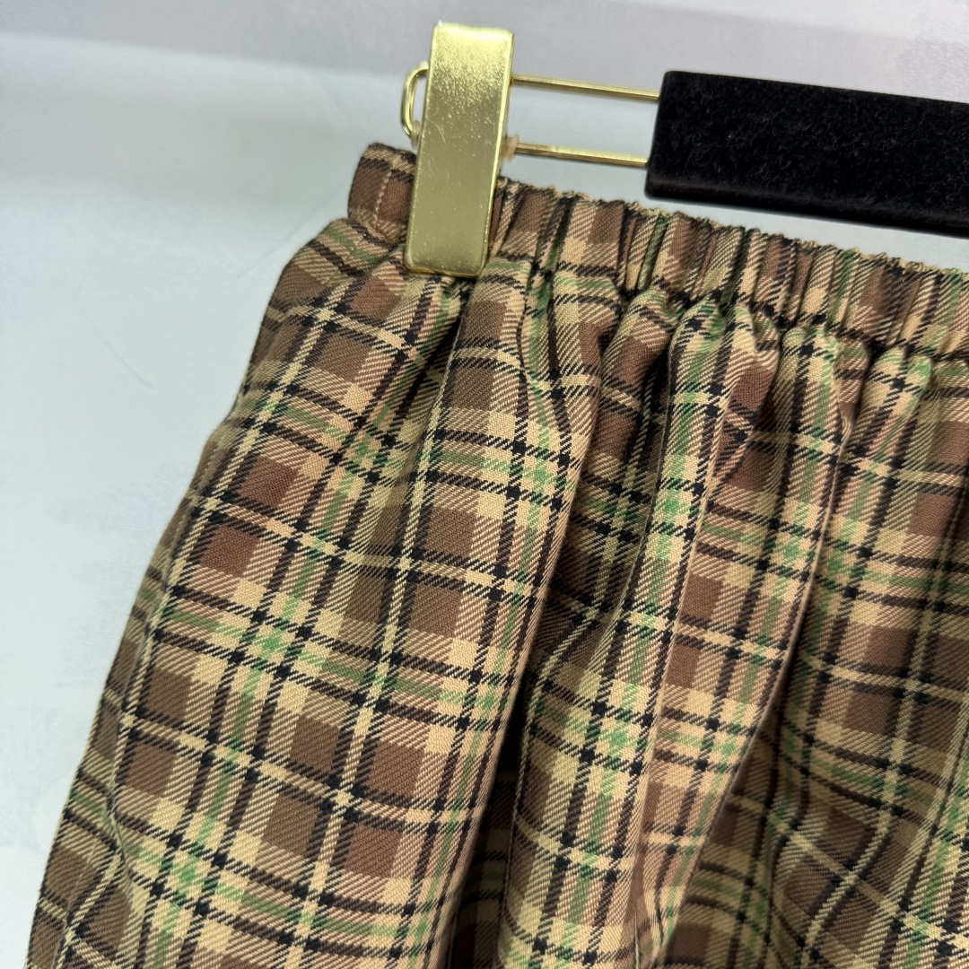 Details: England college style puff skirt, custom imported wool plaid fabric, double-layer design, elastic waist, embroidered logo, sweet and salty.