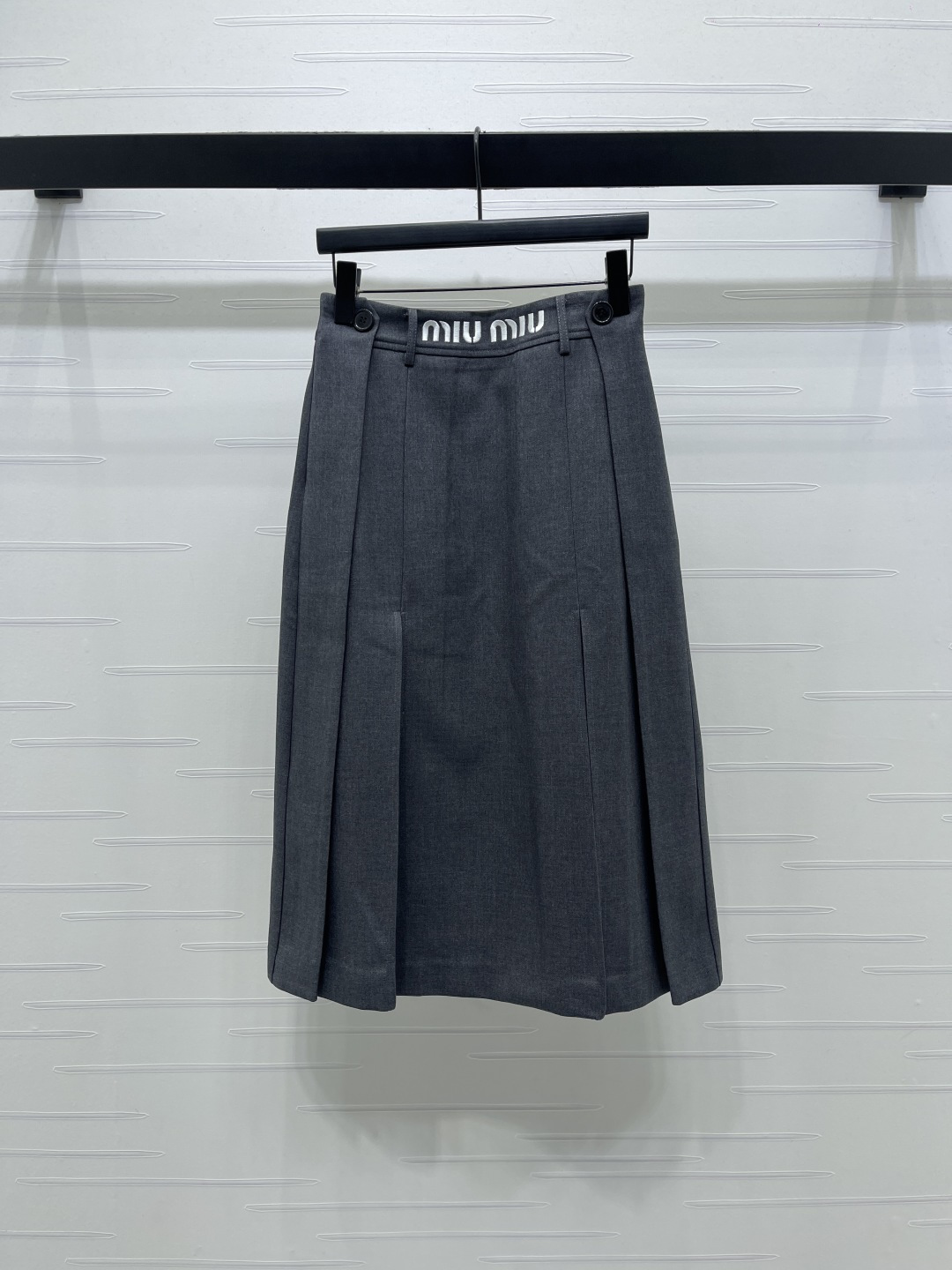 Details: Early Spring Mid-length Embroidered Letter Pleated Skirt, 2 Colors, 3 Sizes. High-end Custom, Fine Workmanship