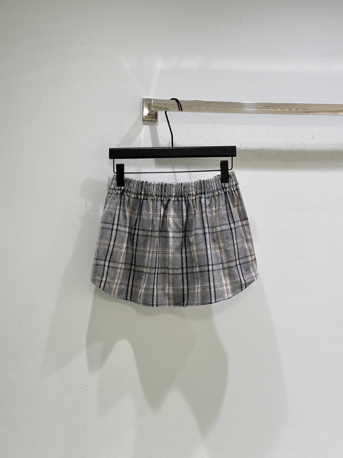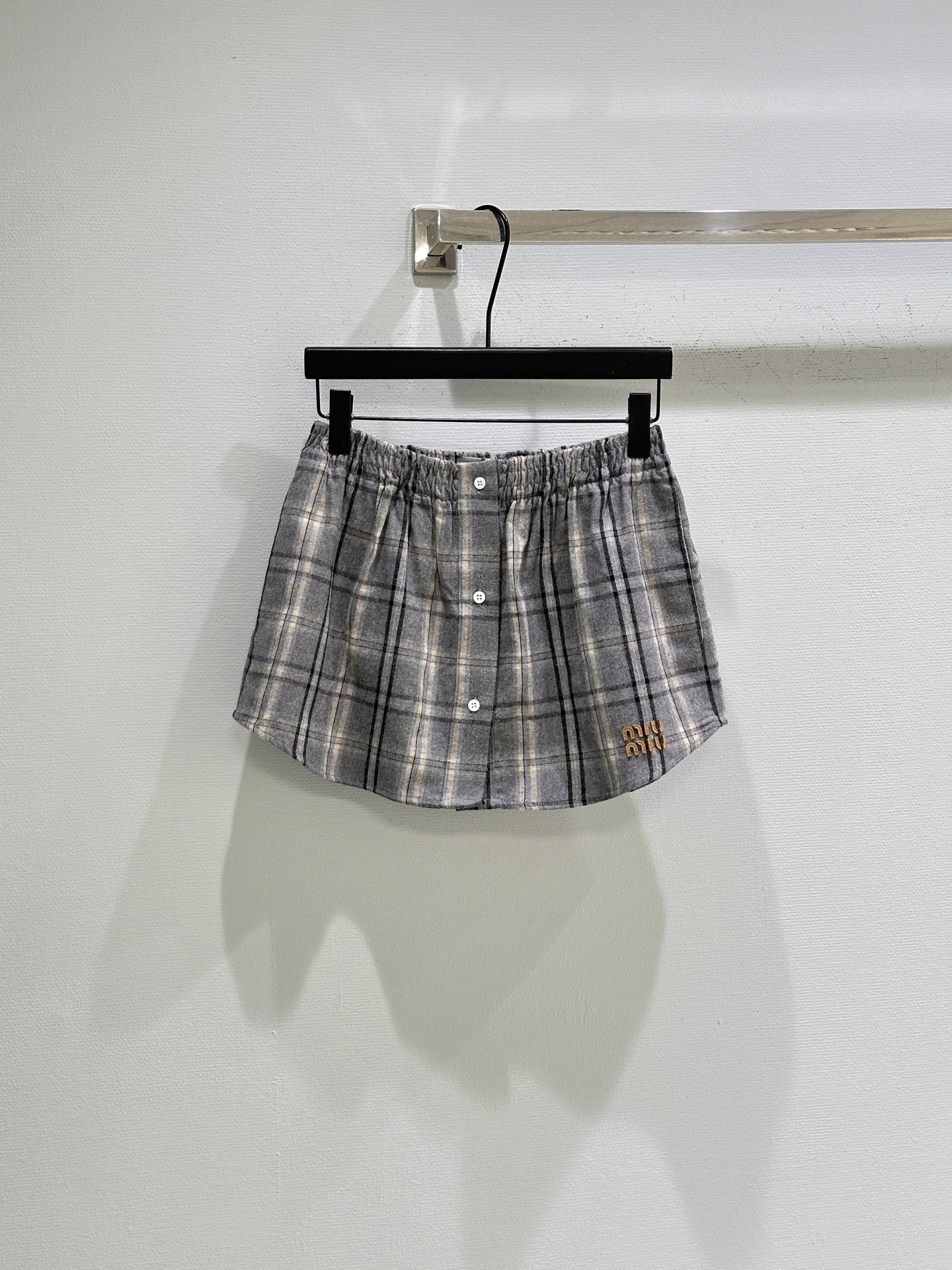 Details: Winter Flannel mini skirt with button front and retro check pattern. Contrast leather logo adds a signature touch.