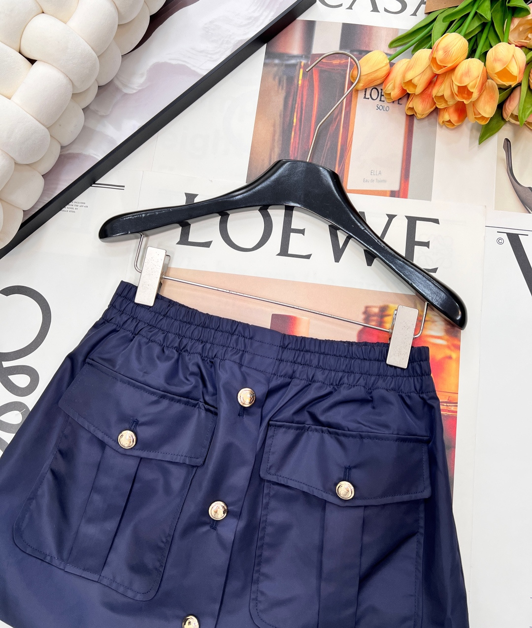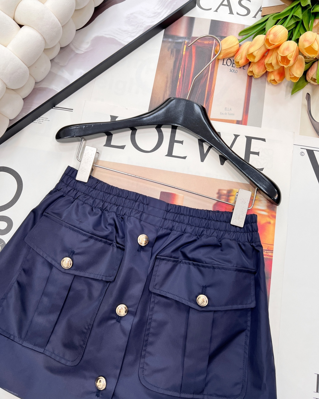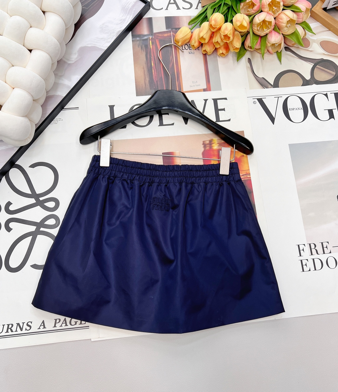 Details: Autumn-winter collared cropped jacket & skirt set in matte satin nylon, warm and stylish.