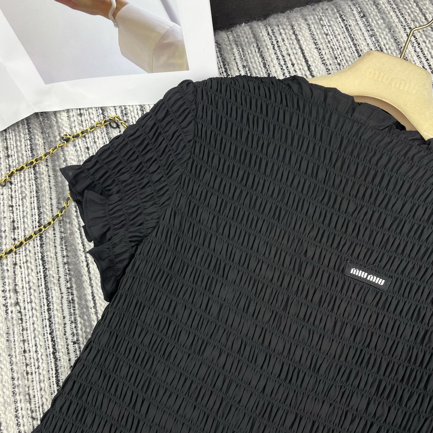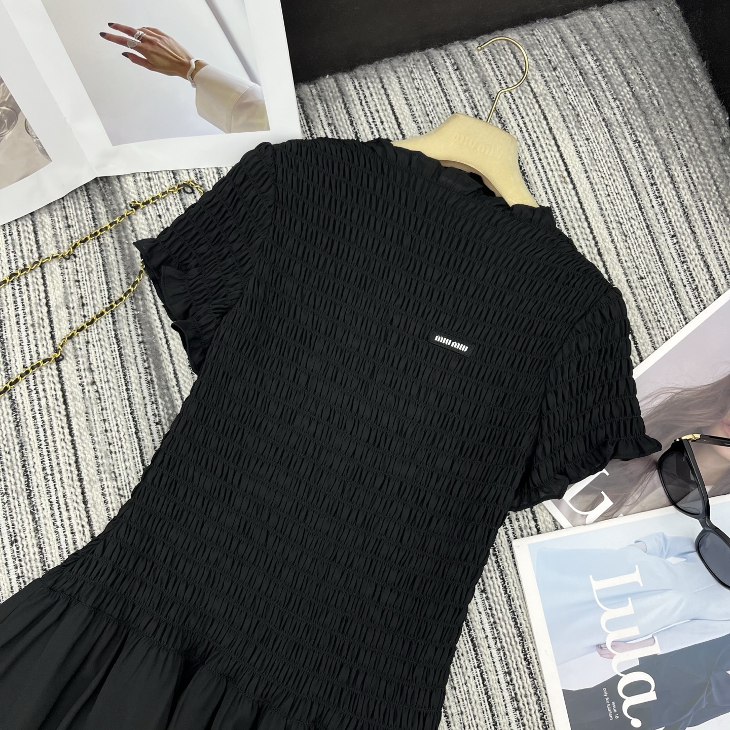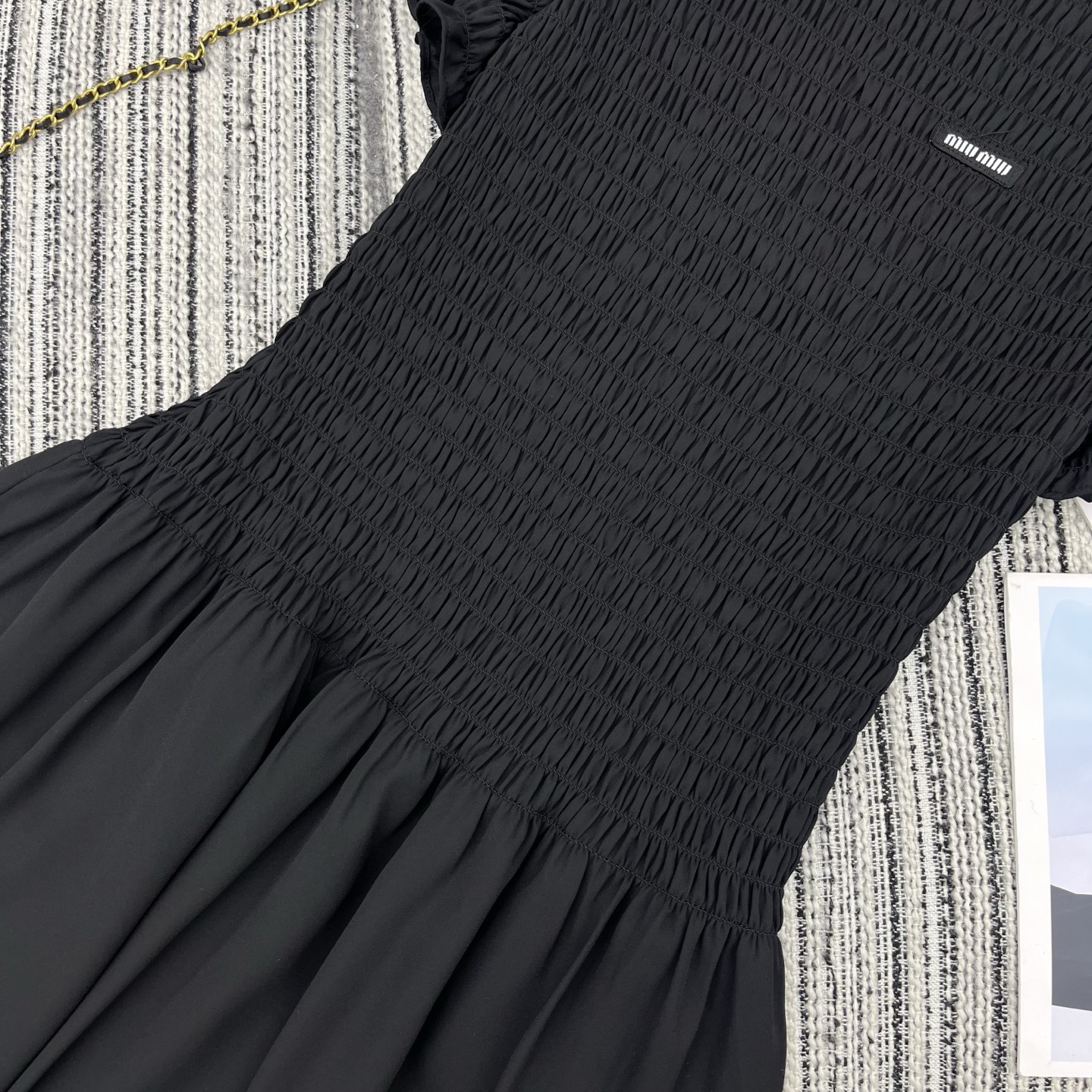 Details: Sweet and cool georgette mini dress, made of pleated fabric, waist-cinched, short silhouette. High-end customization, fine workmanship