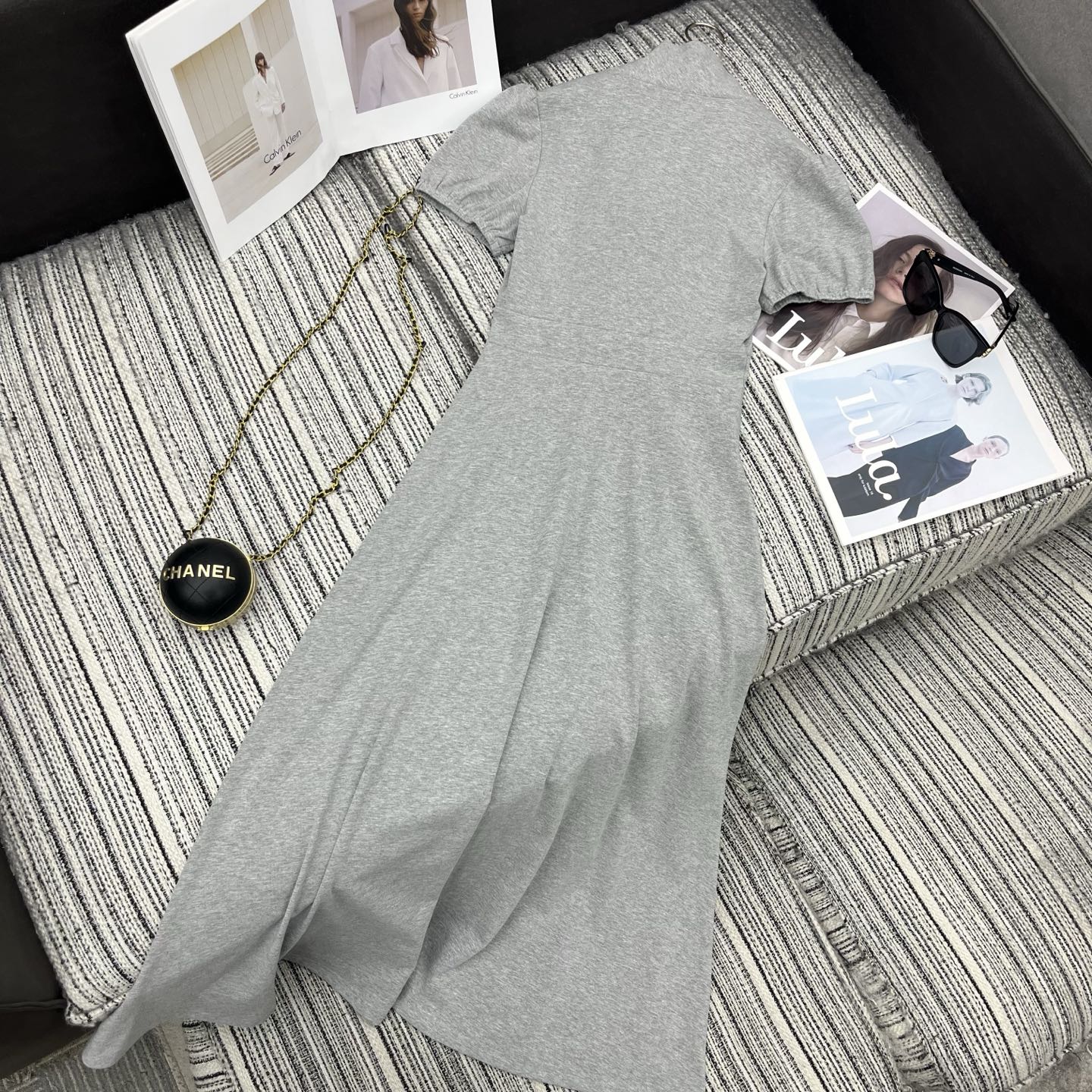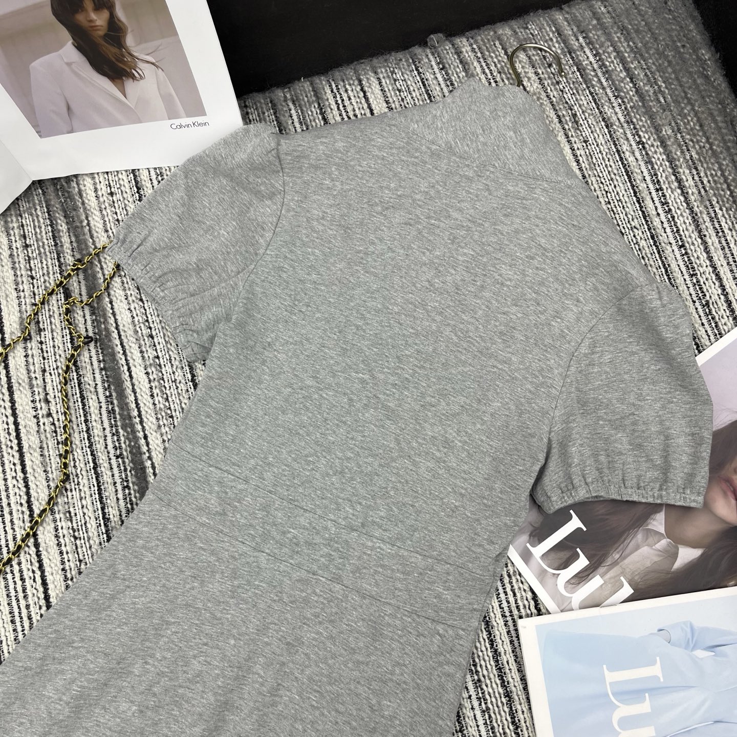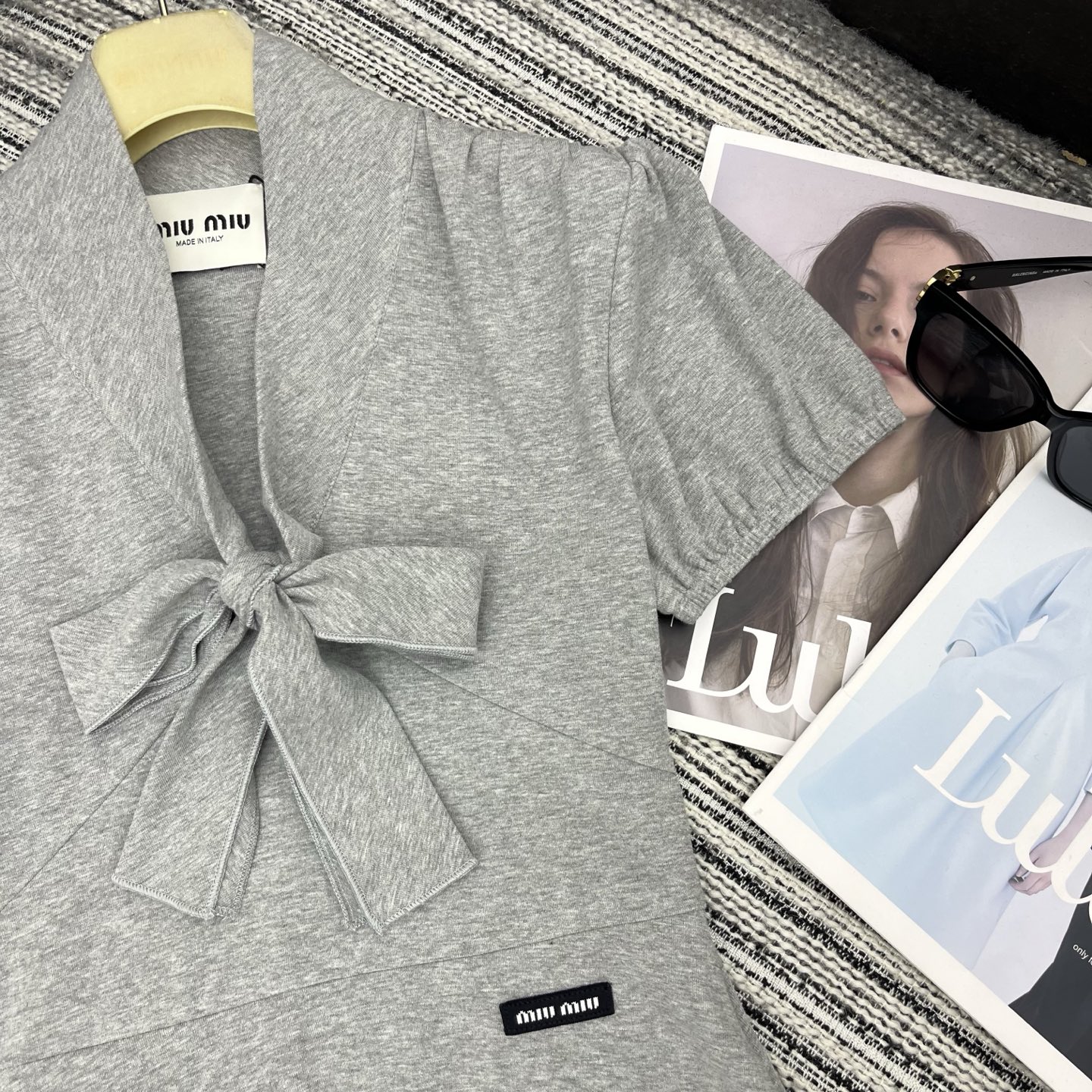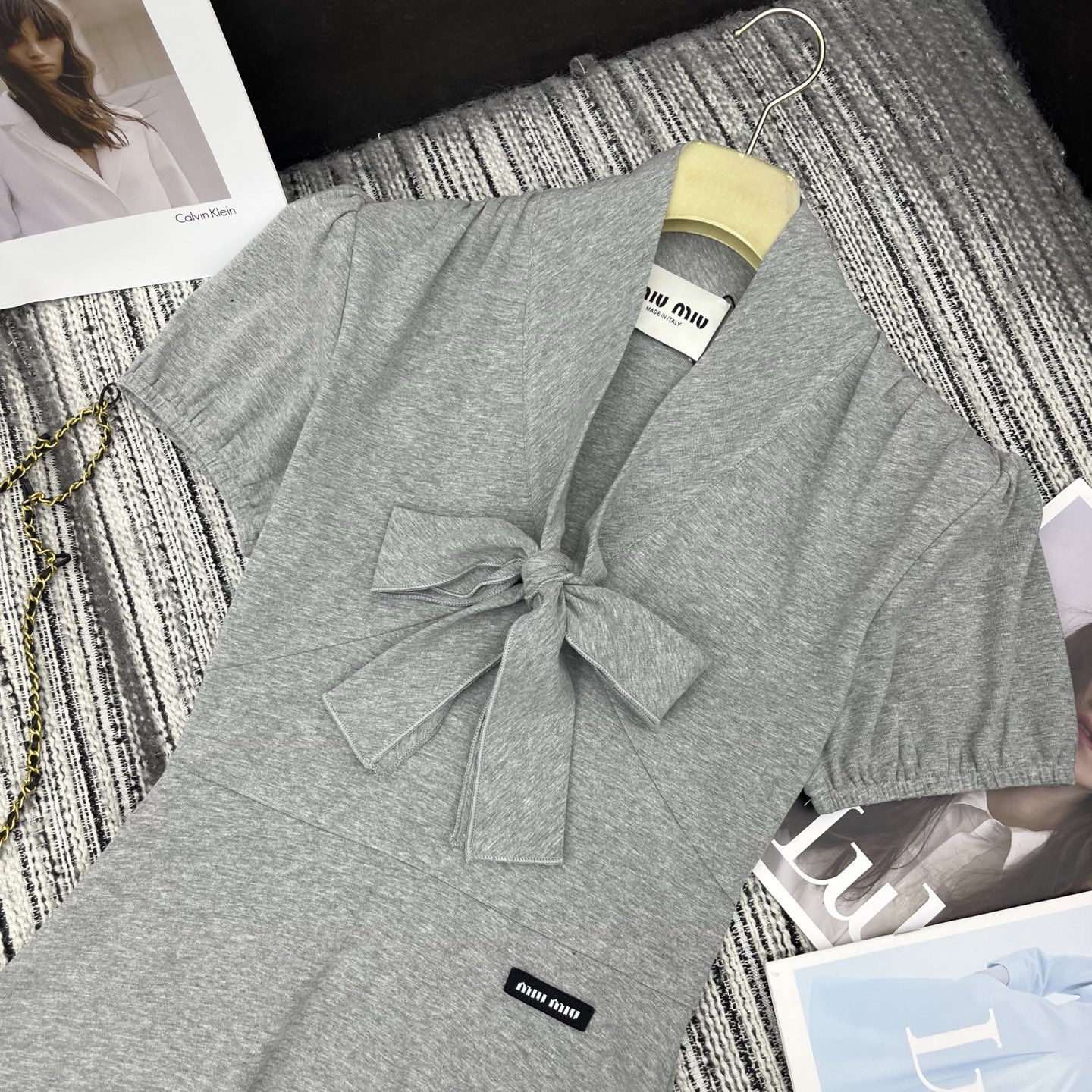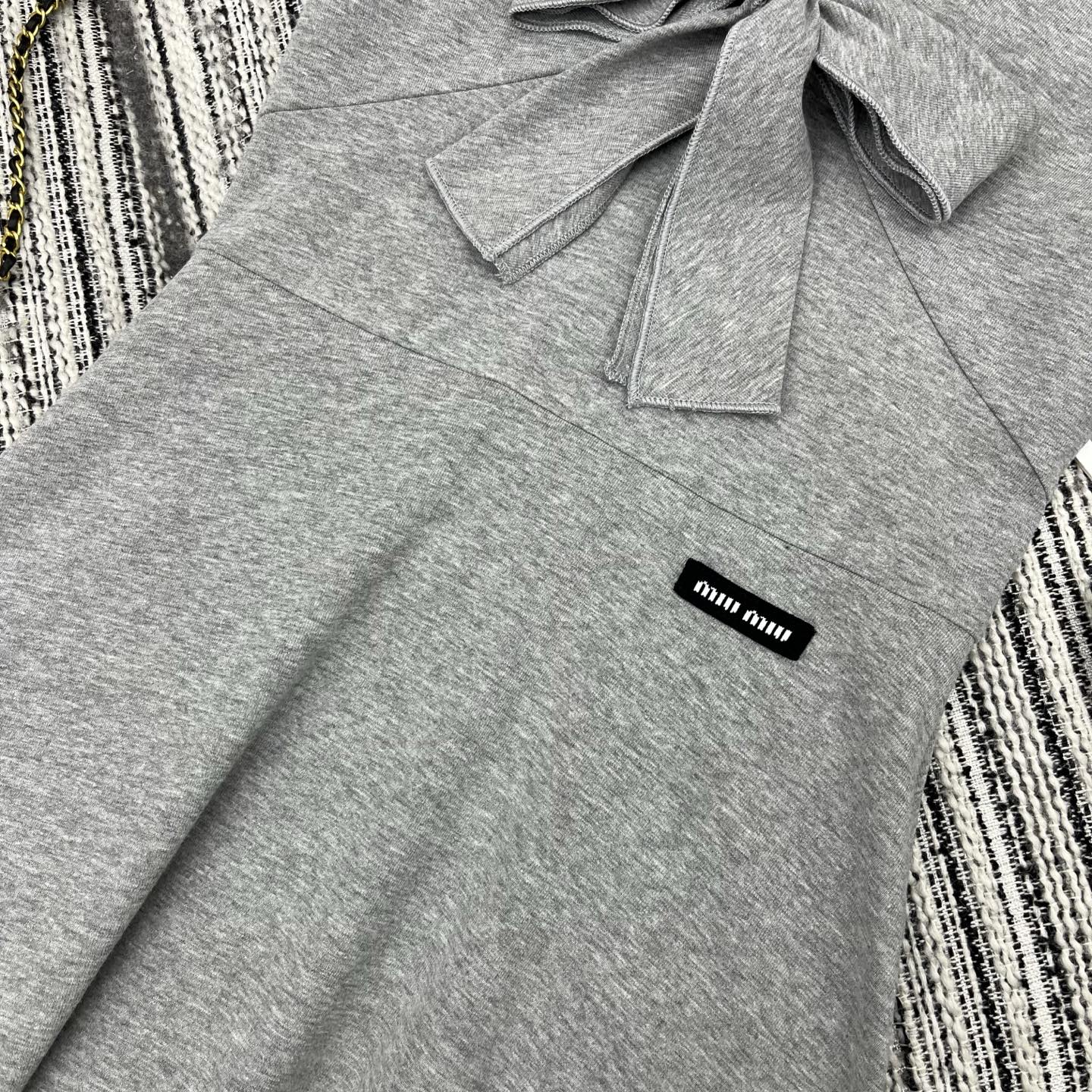 Details: Early spring gray dress with a bow, made of soft fabric, in Miu style, available in S, M, L sizes.