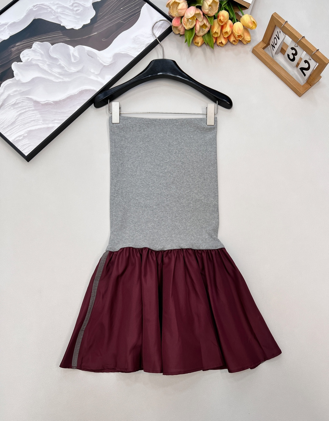 Details: Knit Strapless Pleated Skirt, Tailored, Elegant, Versatile. fine craftsmanship