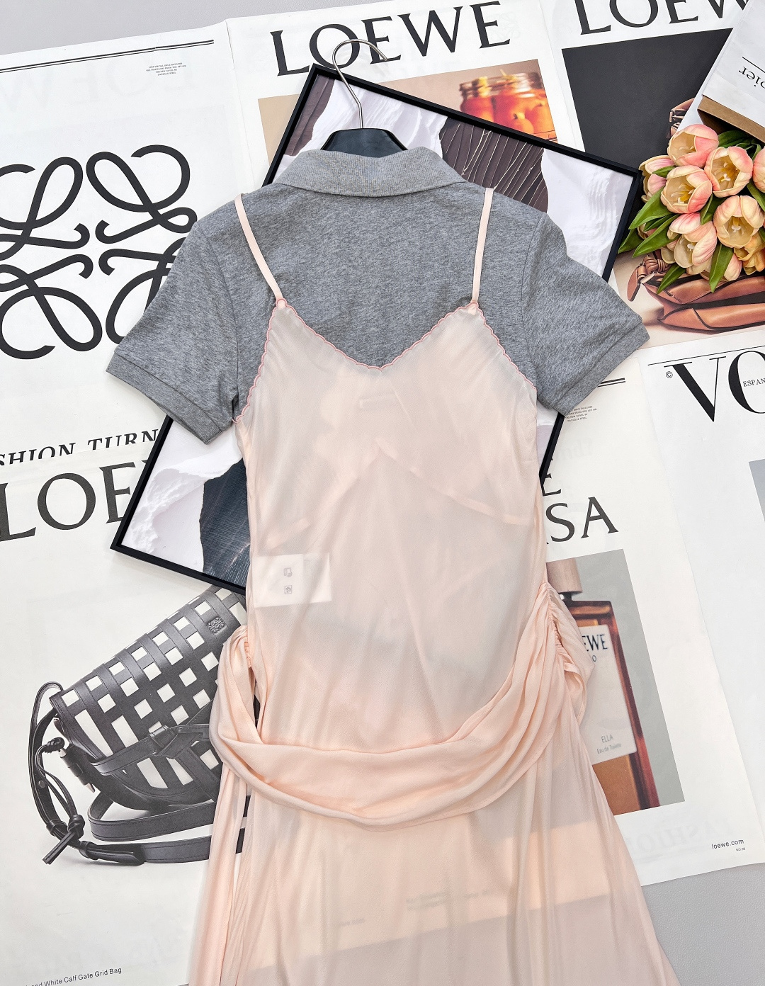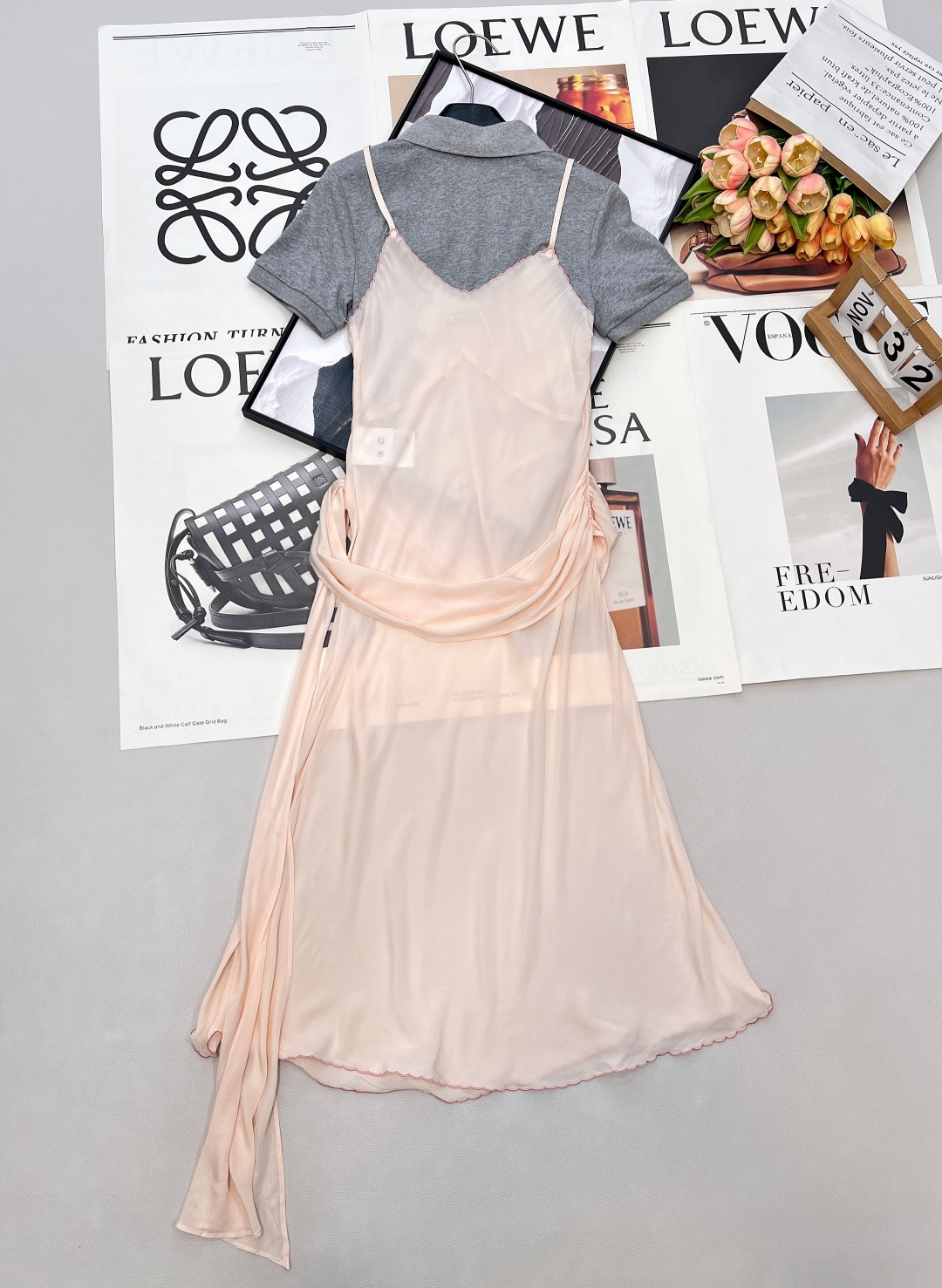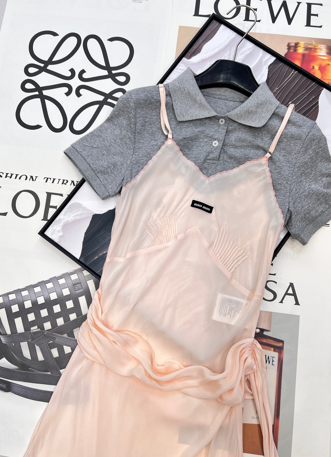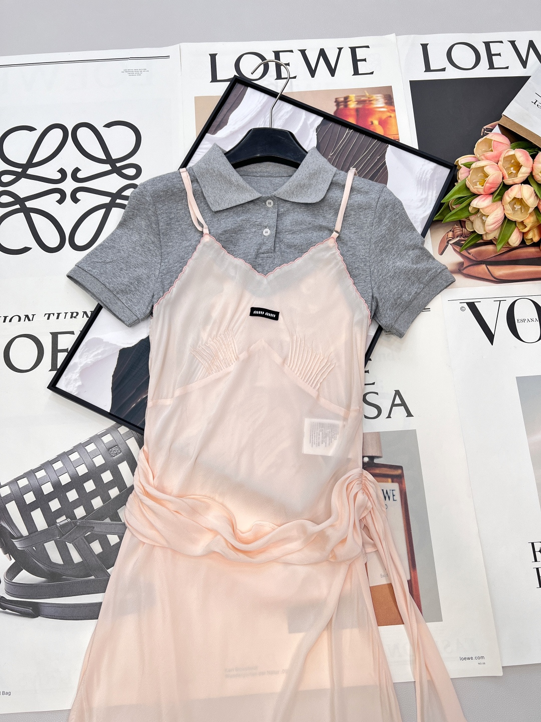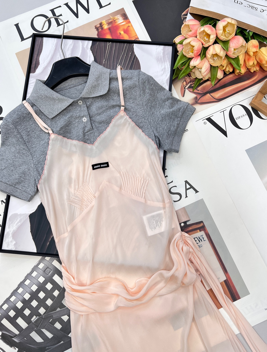 Details: Polo-spliced sling dress for spring , combining sweet and cool elements. Adjustable waist and irregular hem for a unique and stylish appearance.
